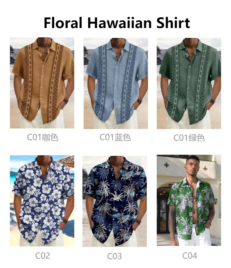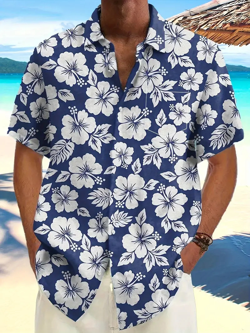 국경 간 여름 3D 인쇄 반팔 꽃 셔츠 남성 복고풍 하와이 해변 캐주얼 루즈 남성 플러스 사이즈 셔츠스토어 가기
