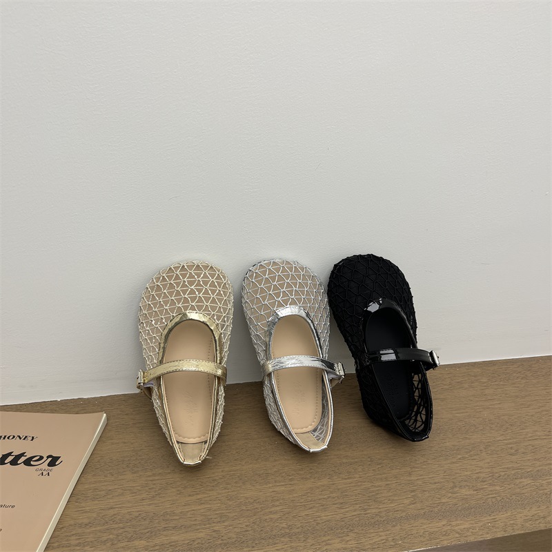 여성을위한 여름 얇은 통기성 메쉬 라인 석 샌들 2025 새로운 하이 엔드 스커트 플랫 메리 제인 신발