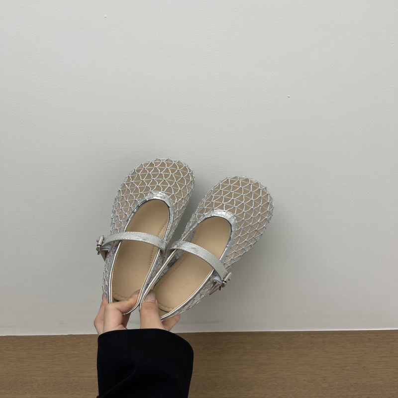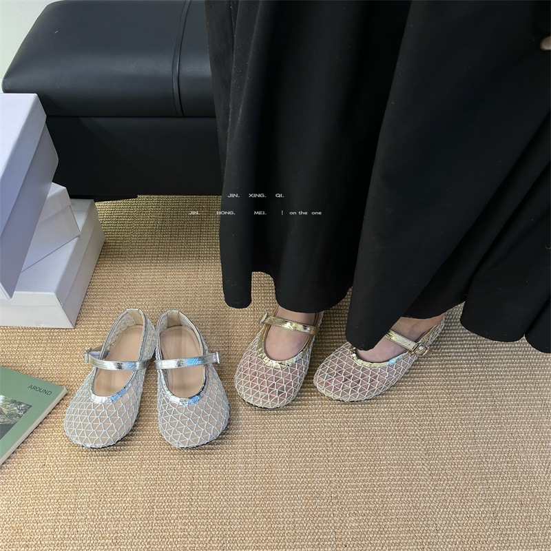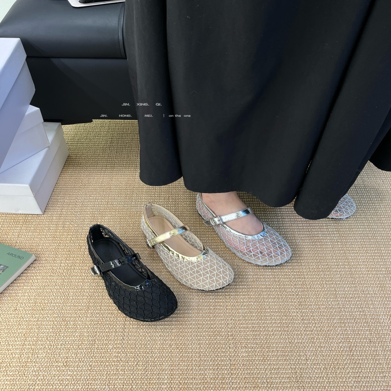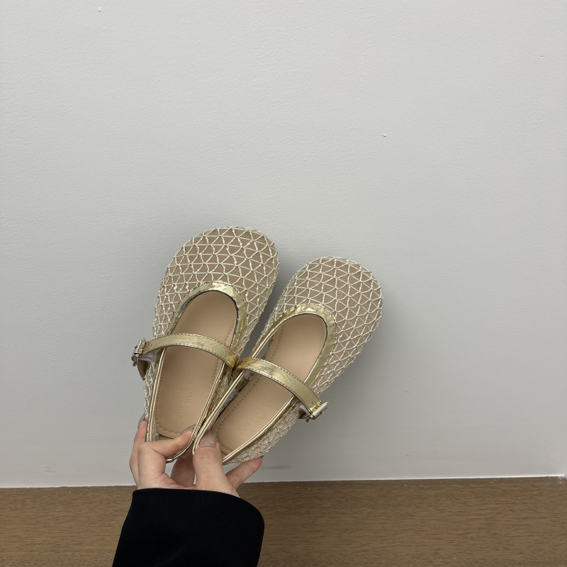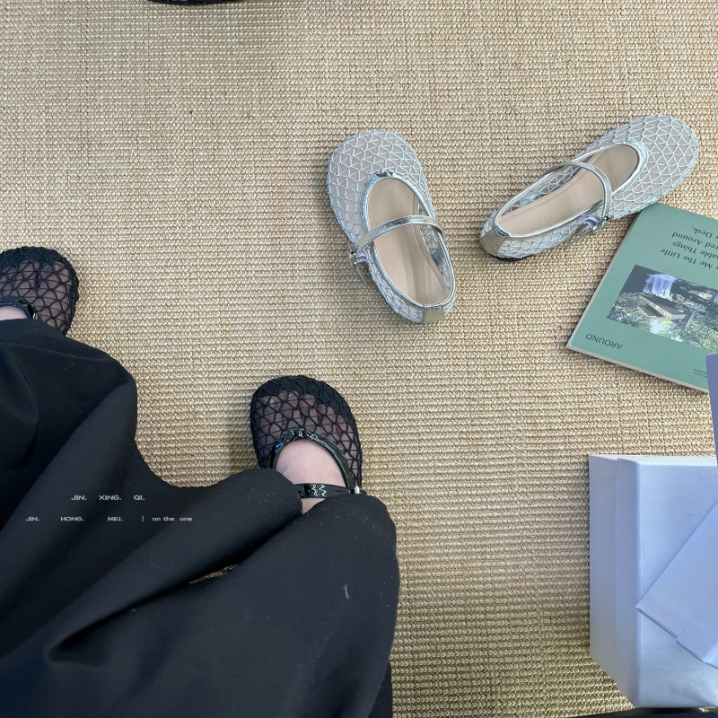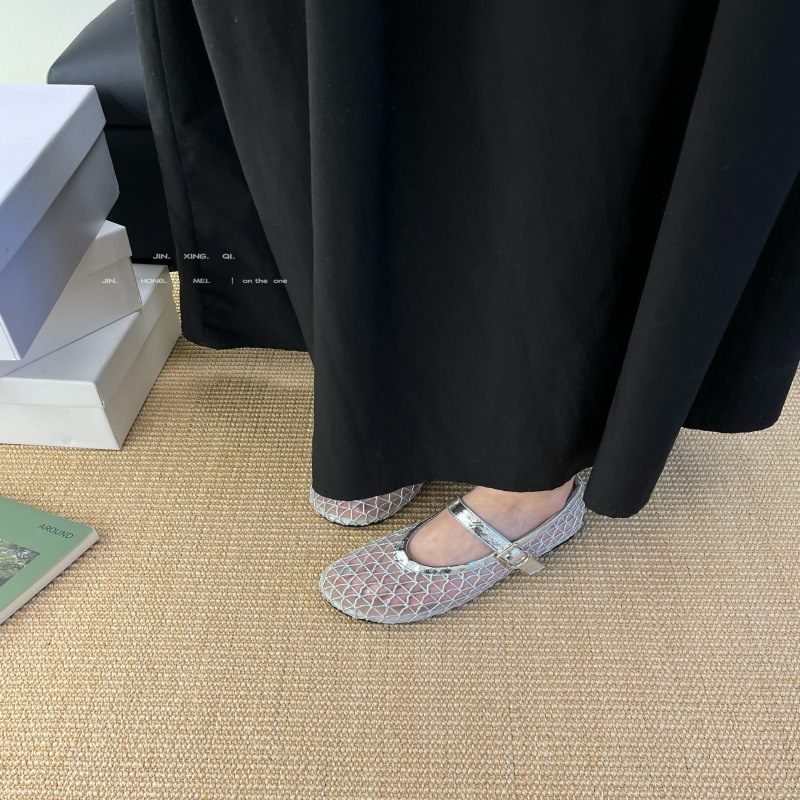 여성을위한 여름 얇은 통기성 메쉬 라인 석 샌들 2025 새로운 하이 엔드 스커트 플랫 메리 제인 신발스토어 가기