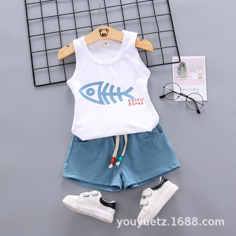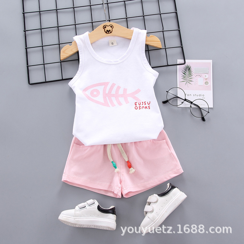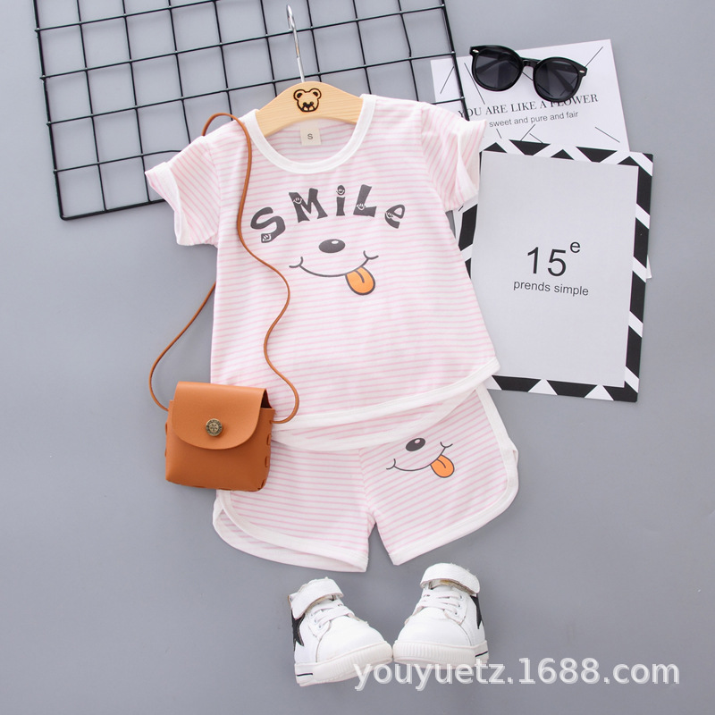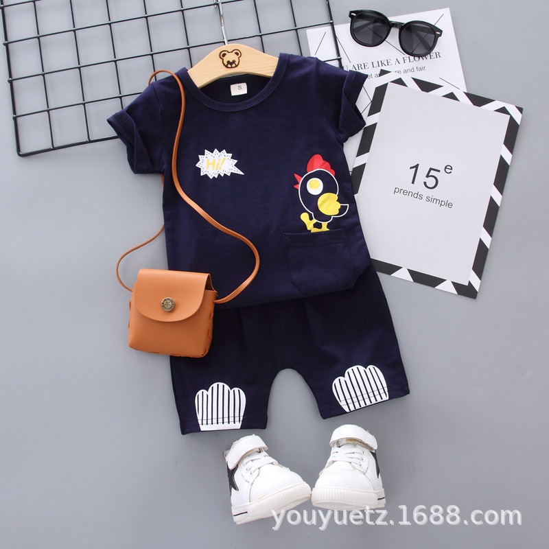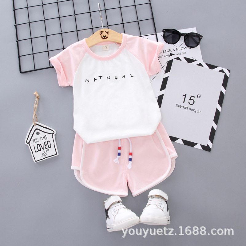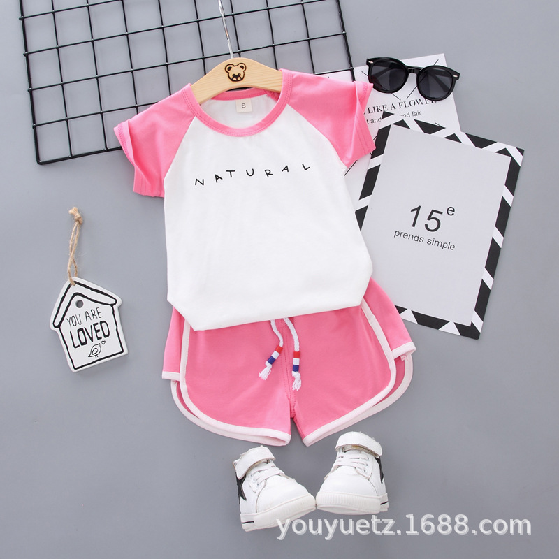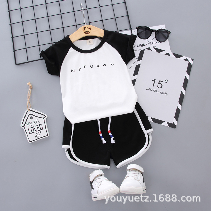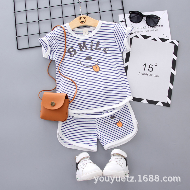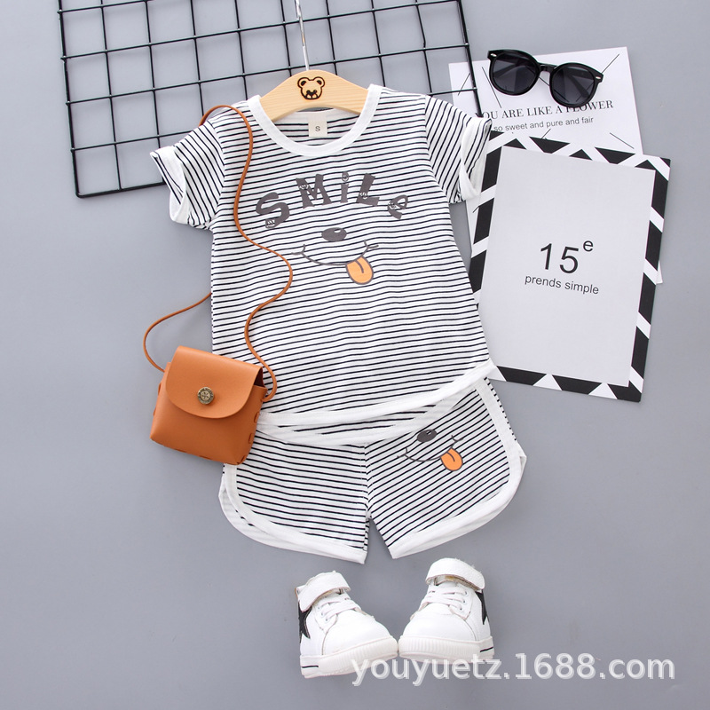 대외 무역 아동복 여름 세트 패션 소년 소녀를위한 캐주얼 한국식 격자 무늬 칼라 셔츠 반팔 투피스 유행 세트스토어 가기