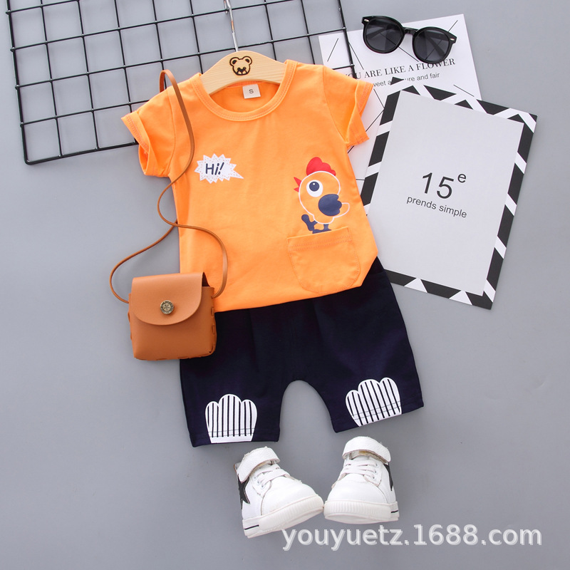 • 병아리 라운드 넥 반팔 슈트 오렌지