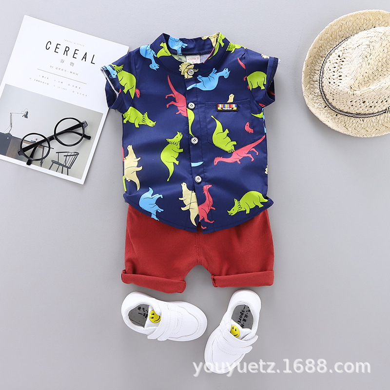 • 공룡 셔츠 반팔 정장 진한 파란색