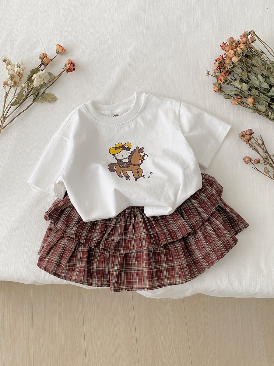 한국 스타일 여자 여름 새 격자 무늬 스커트 2025 어린이 다목적 케이크 스커트 서양식 아동복 다목적 스커트스토어 가기