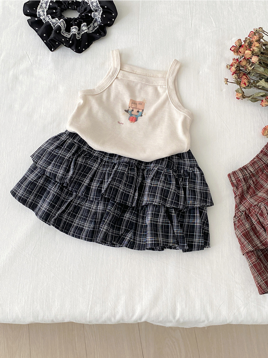 한국 스타일 여자 여름 새 격자 무늬 스커트 2025 어린이 다목적 케이크 스커트 서양식 아동복 다목적 스커트