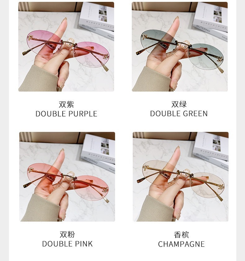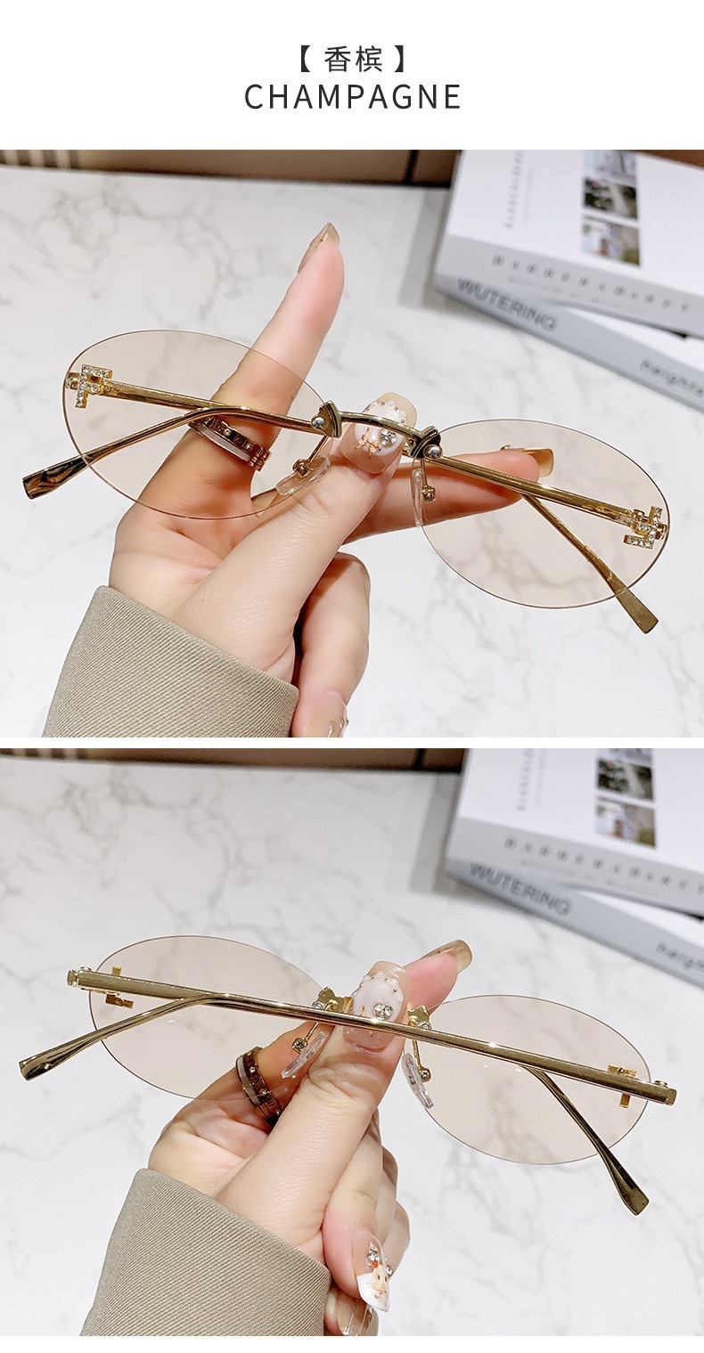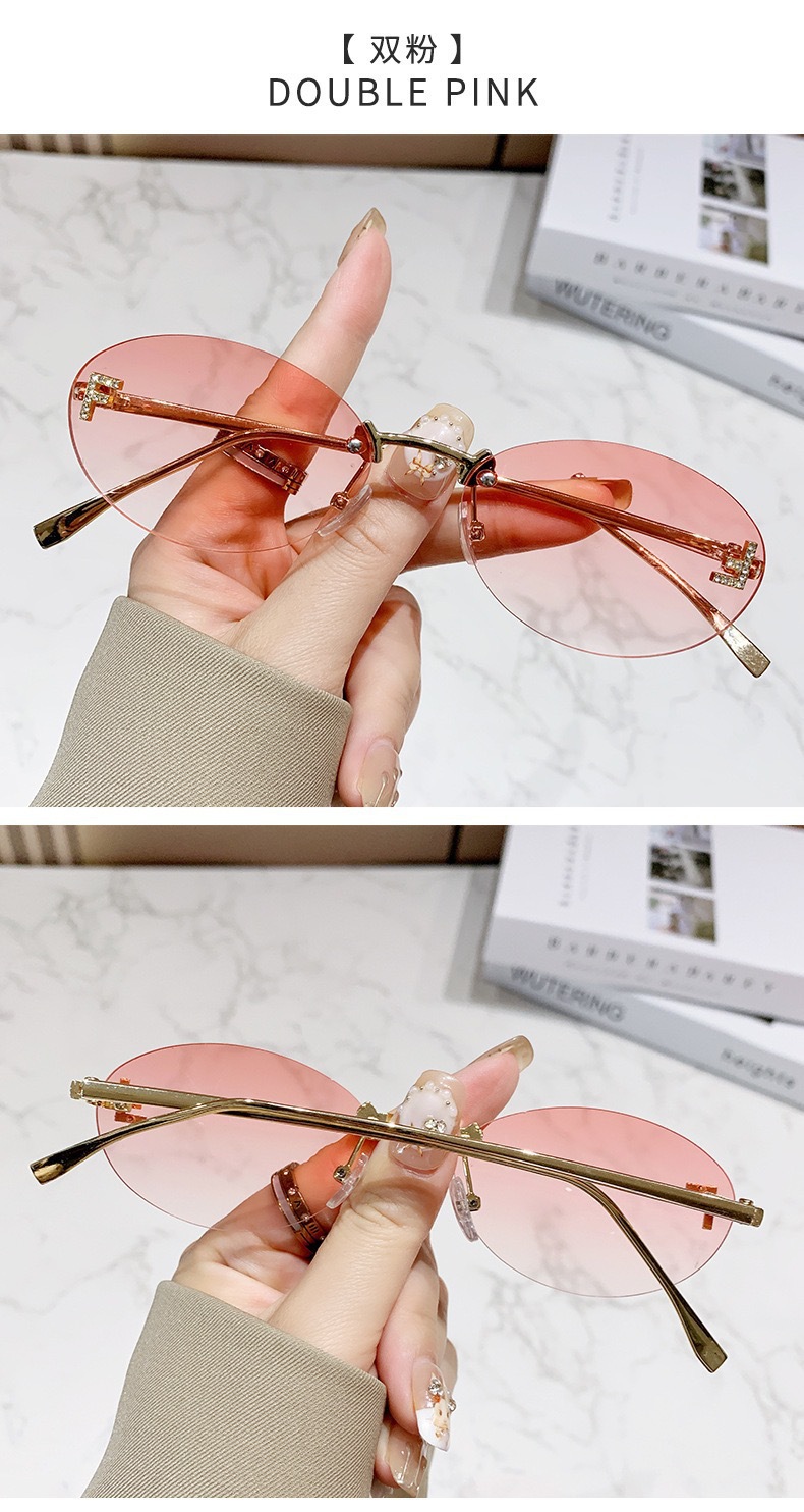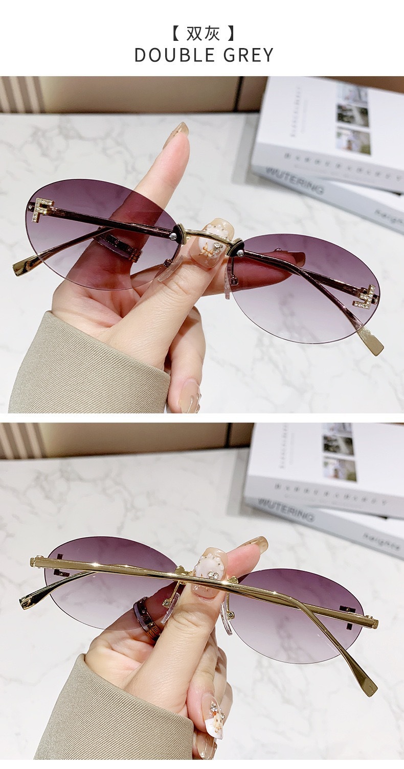 2025 새로운 프레임리스 선글라스 편지 F 다이아몬드 타원형 프레임 패션 선글라스 유럽과 미국의 트렌드 작은 프레임 장식