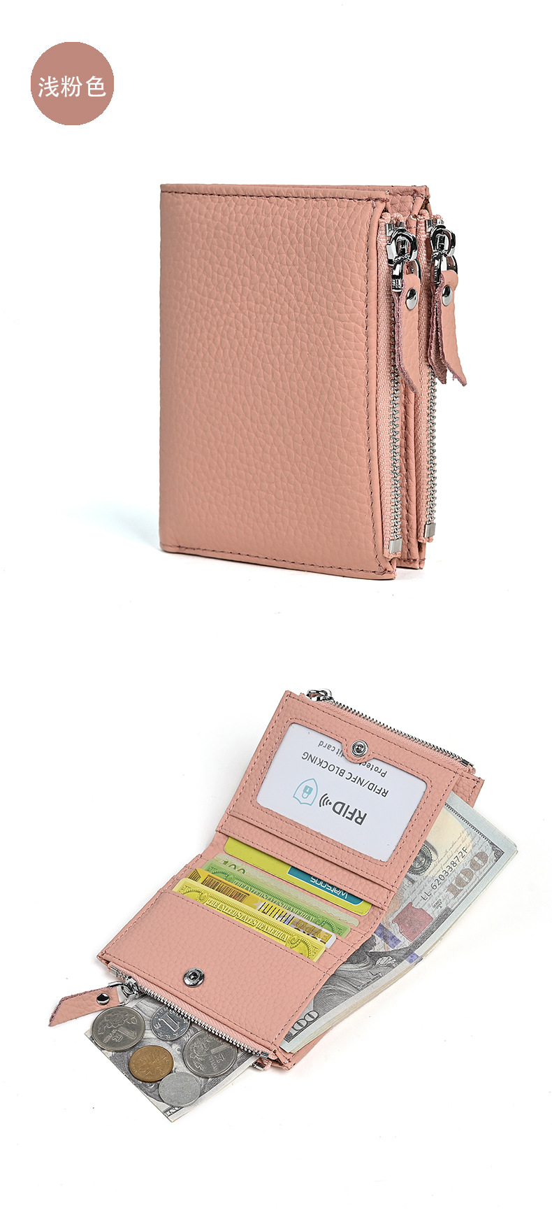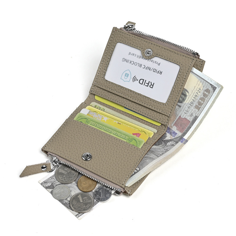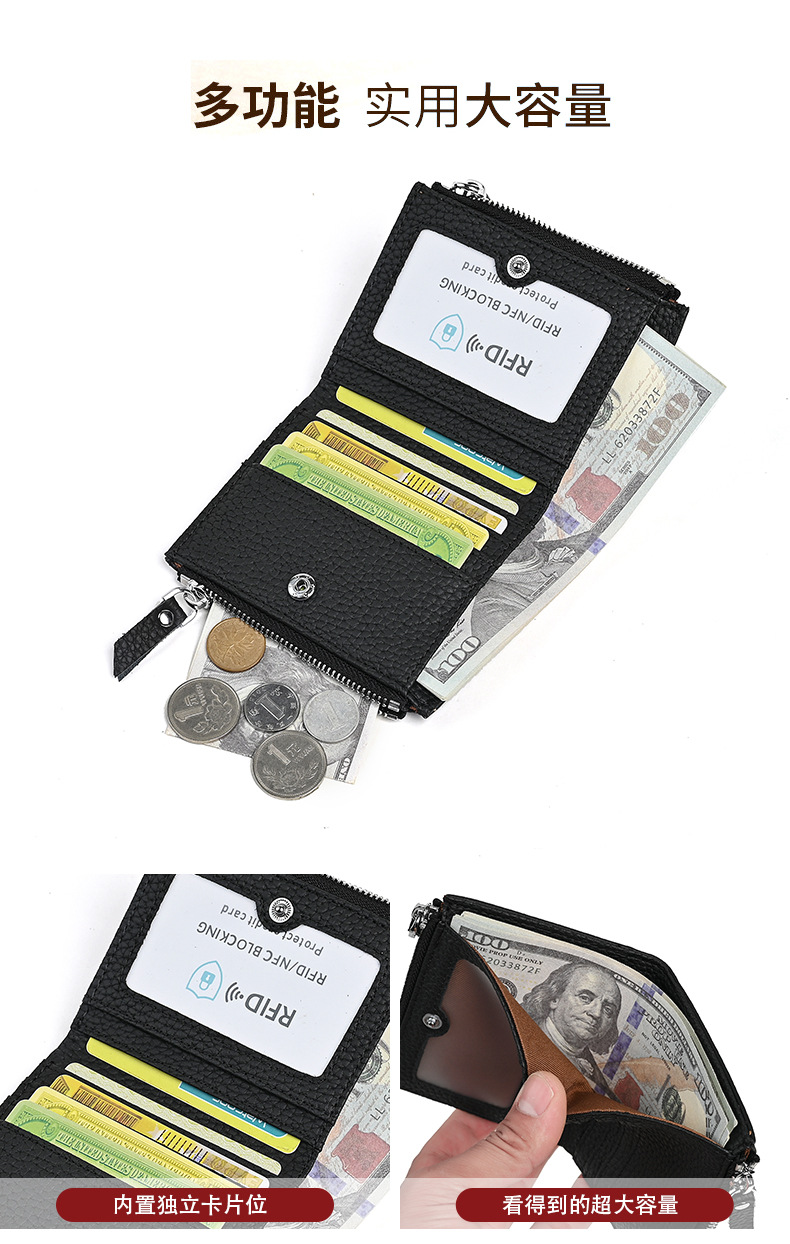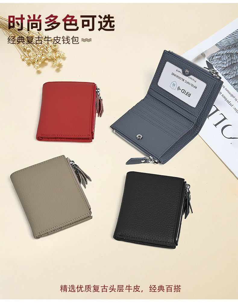 여성용 크로스보더 천연가죽 지갑, 지퍼 동전지갑, 소형 카드지갑, 서류지갑, RFID 도난방지 카드홀더, 숨김 버클 머니클립스토어 가기