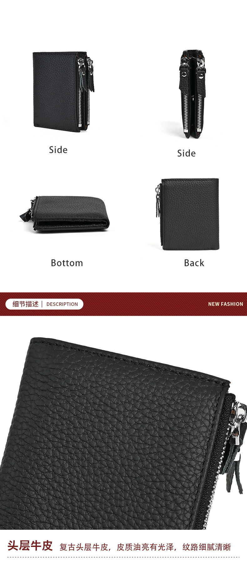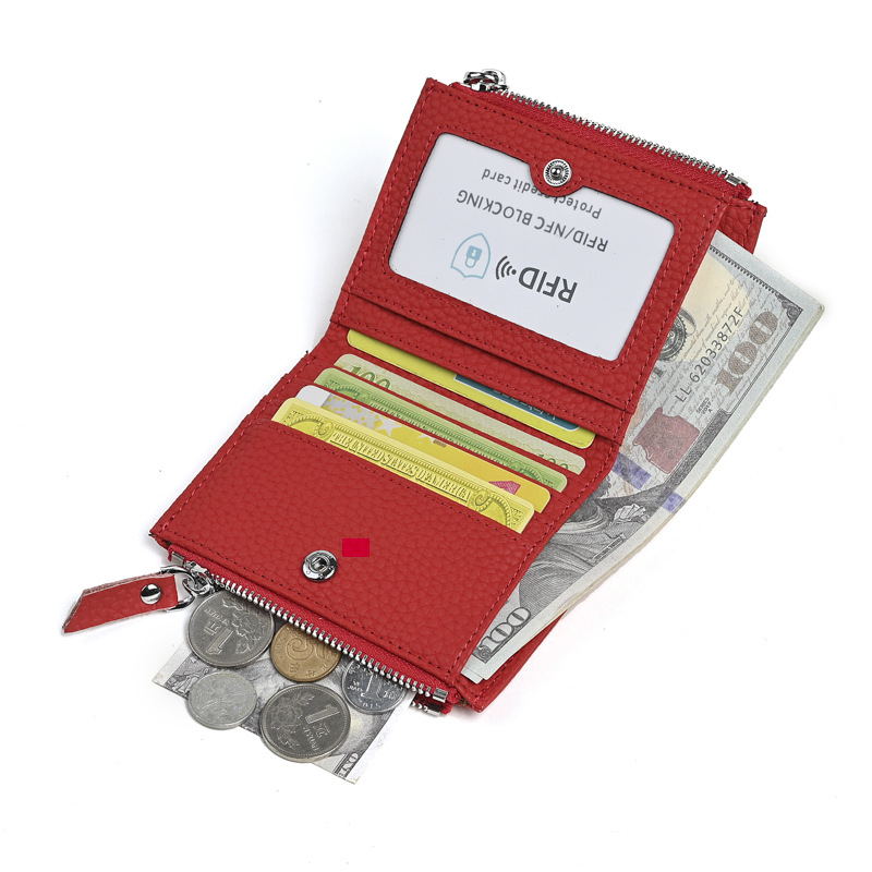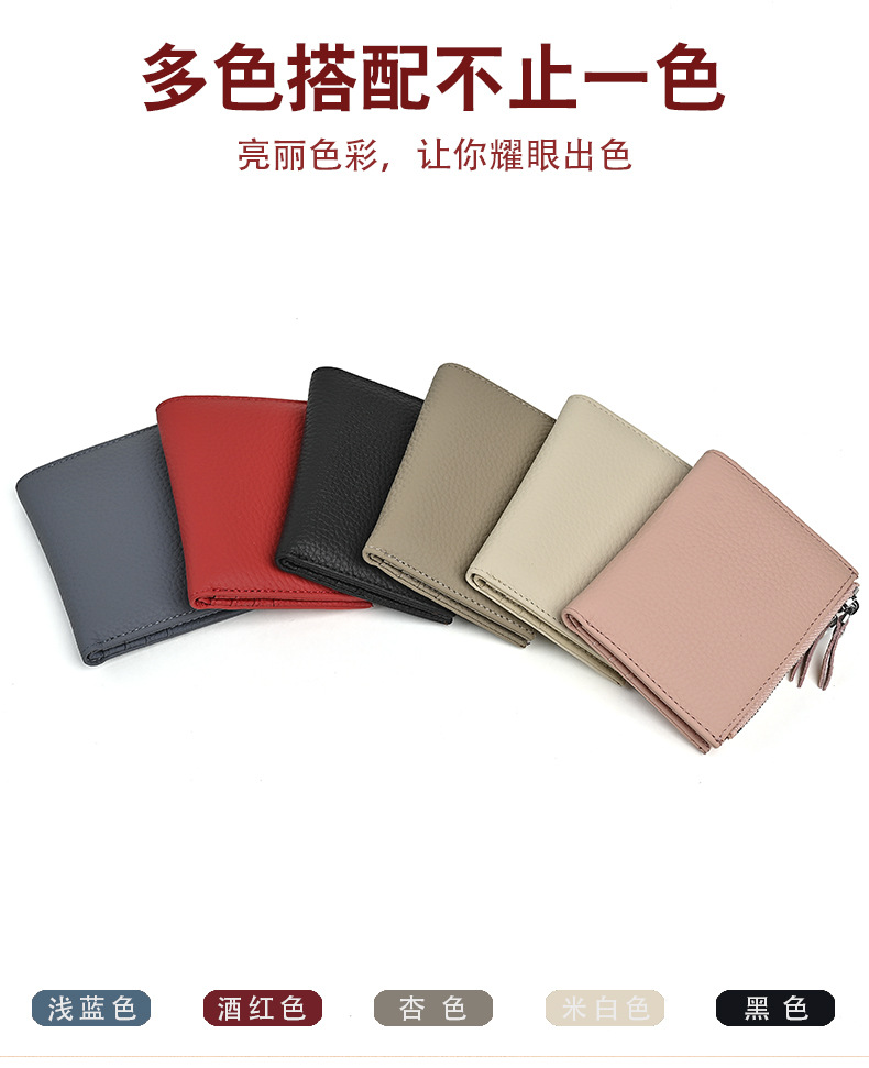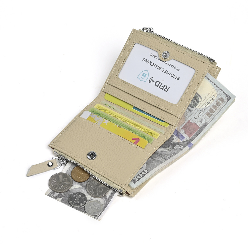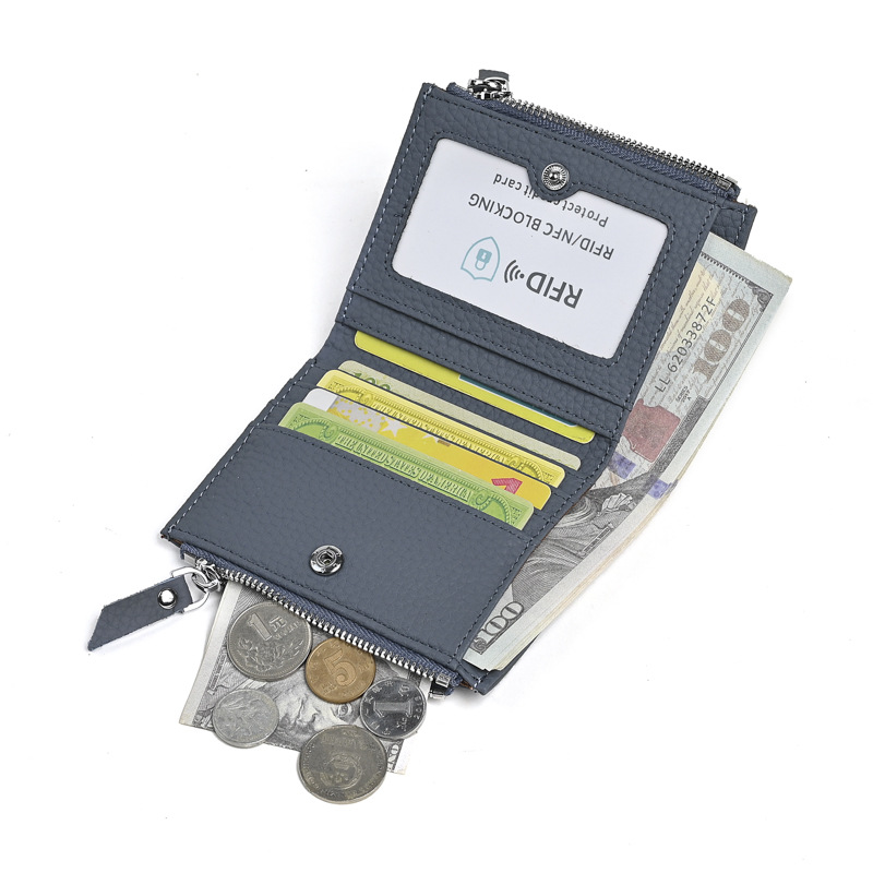 여성용 크로스보더 천연가죽 지갑, 지퍼 동전지갑, 소형 카드지갑, 서류지갑, RFID 도난방지 카드홀더, 숨김 버클 머니클립스토어 가기