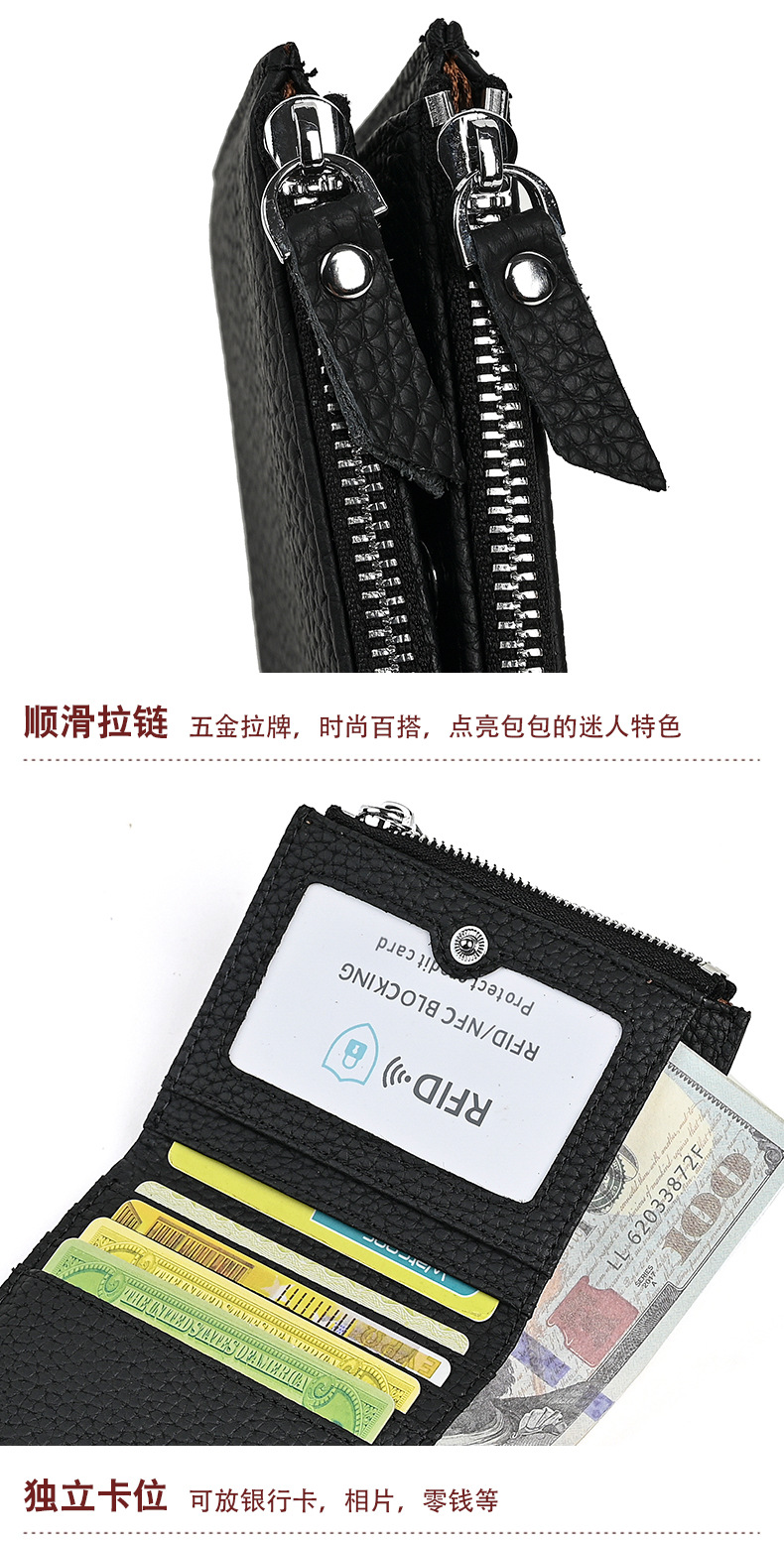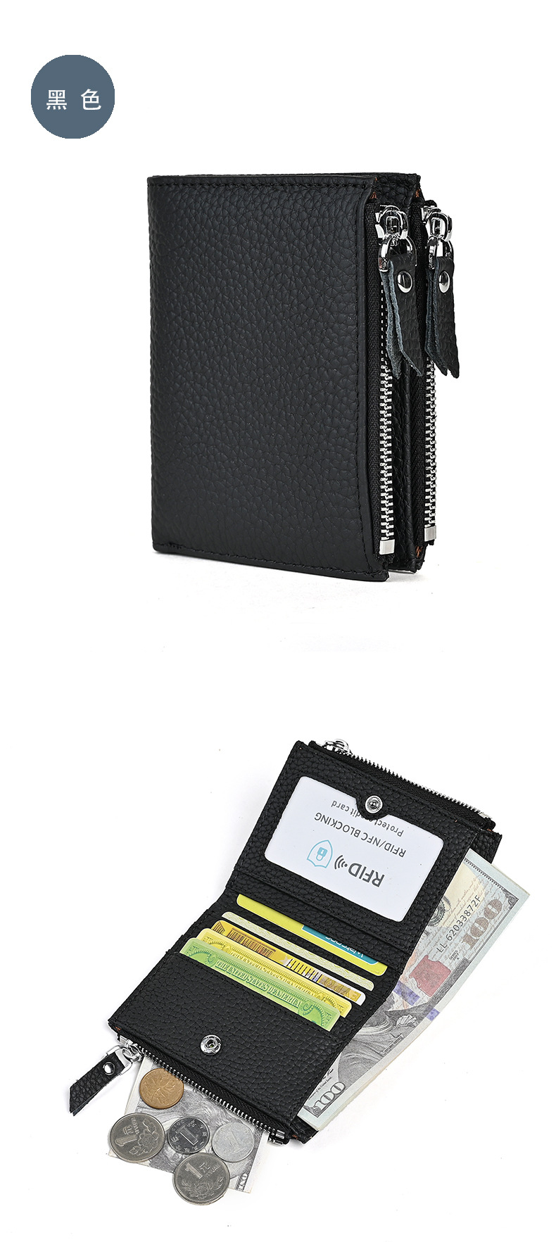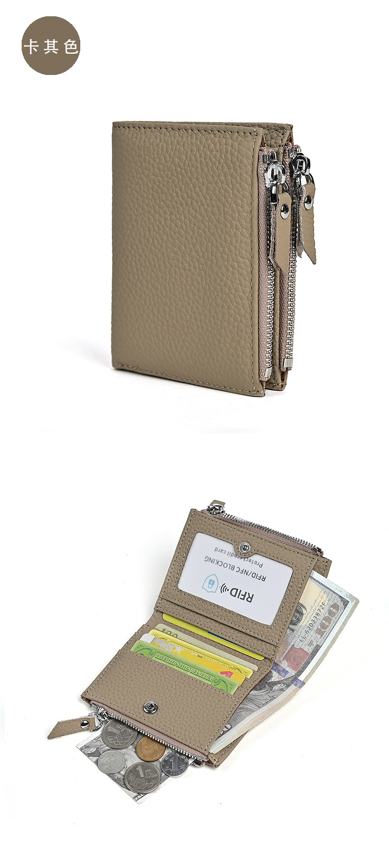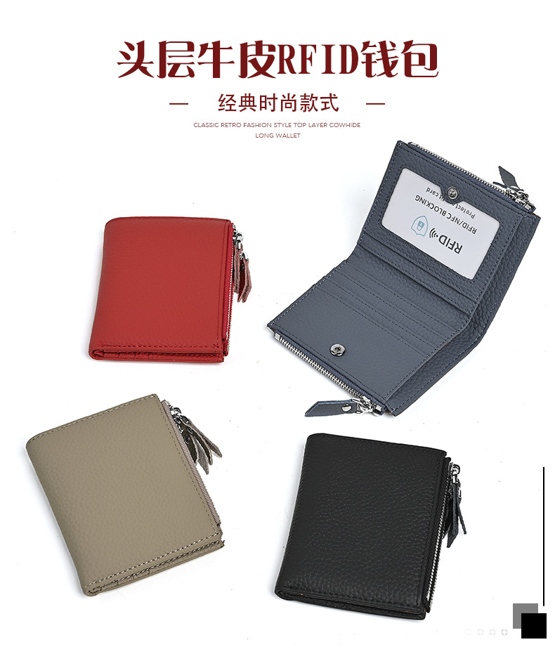여성용 크로스보더 천연가죽 지갑, 지퍼 동전지갑, 소형 카드지갑, 서류지갑, RFID 도난방지 카드홀더, 숨김 버클 머니클립