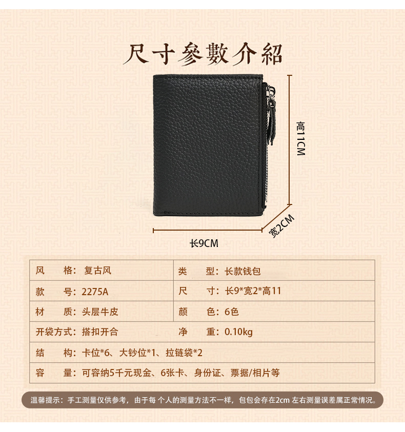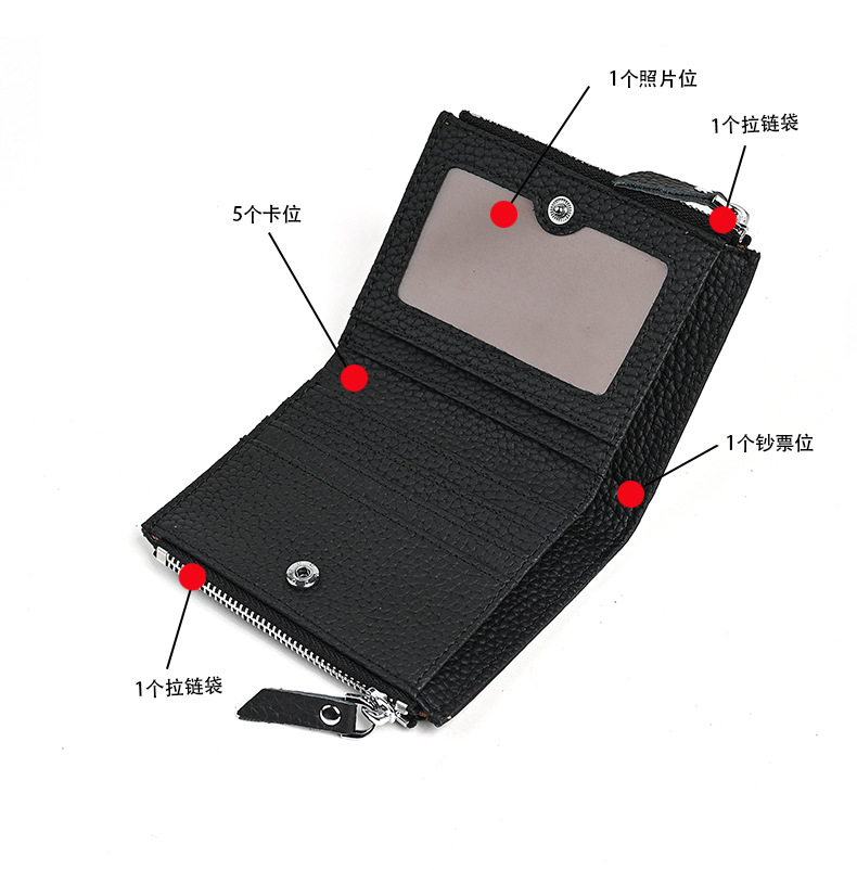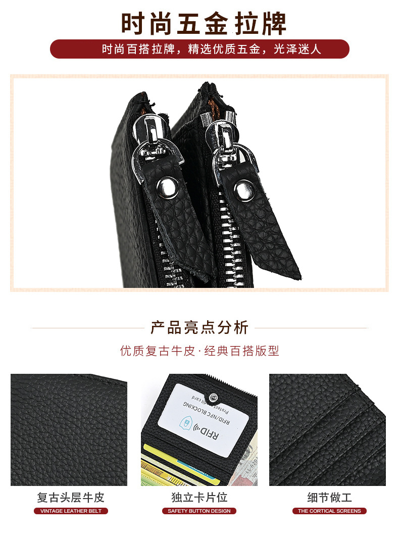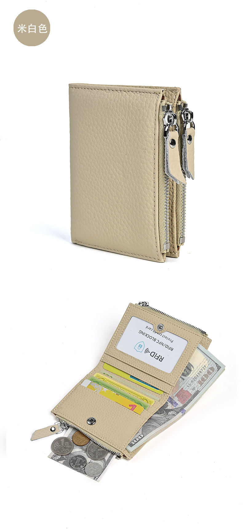 여성용 크로스보더 천연가죽 지갑, 지퍼 동전지갑, 소형 카드지갑, 서류지갑, RFID 도난방지 카드홀더, 숨김 버클 머니클립