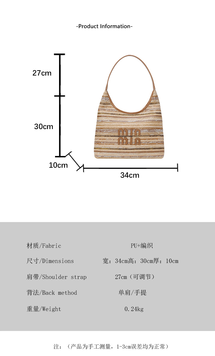 2025 새로운 통근 가방 휴대용 짠 대용량 핸드백 간단한 올 매치 유행 어깨 가방스토어 가기