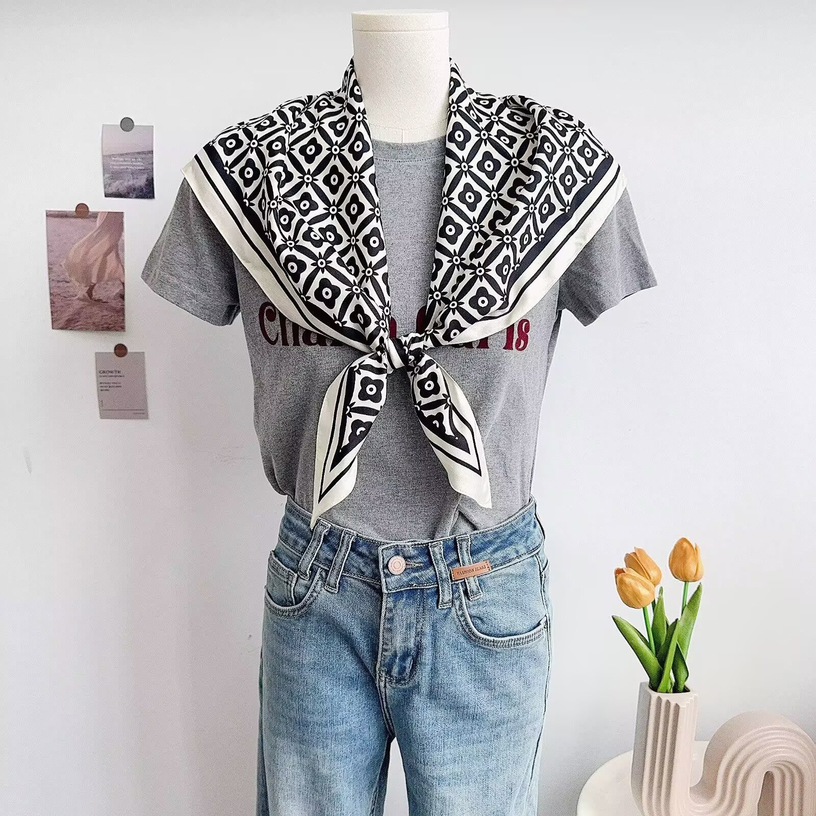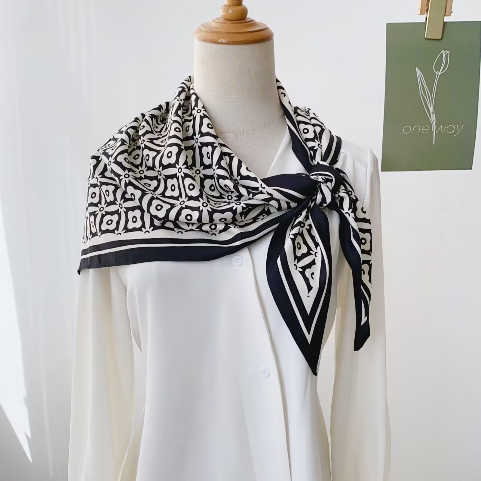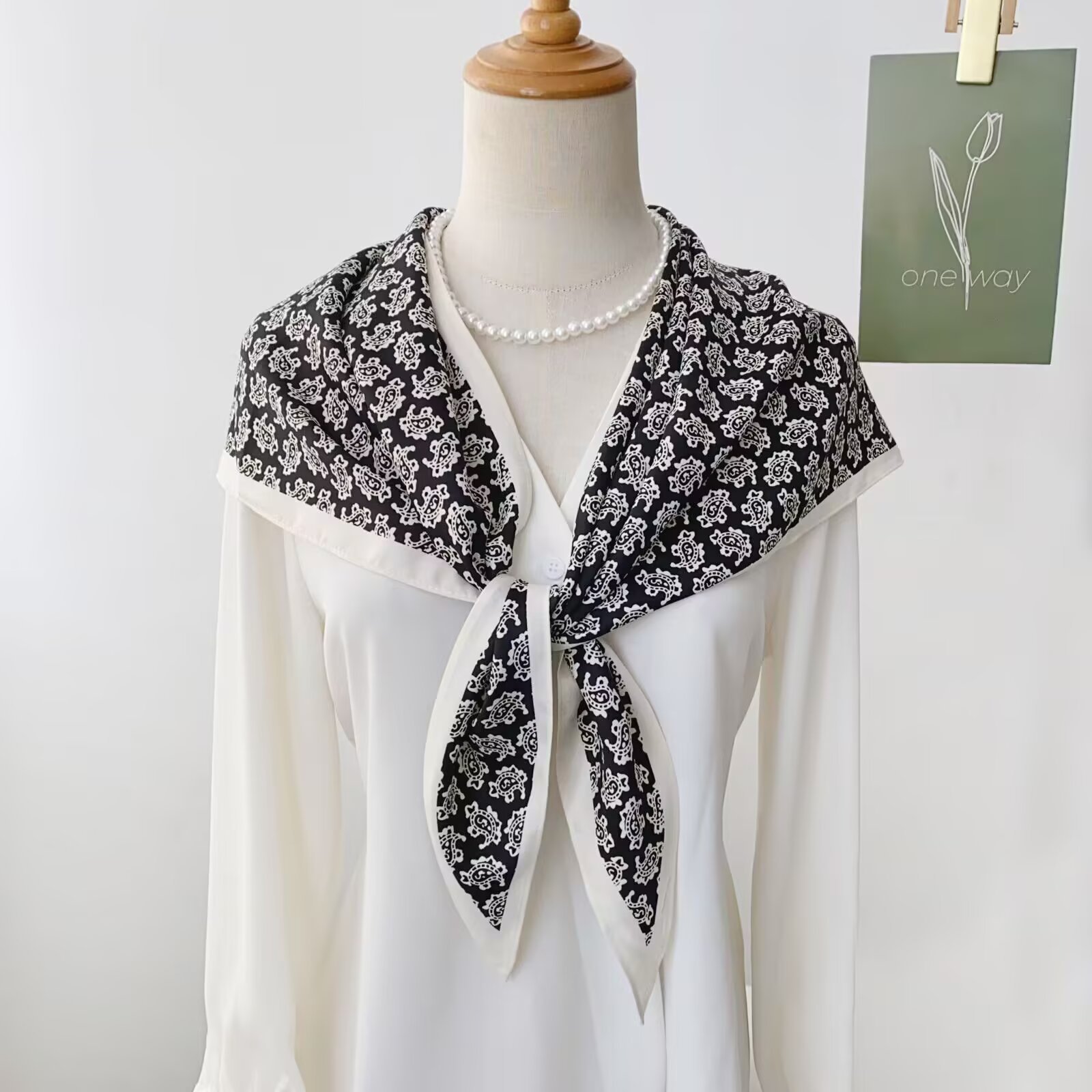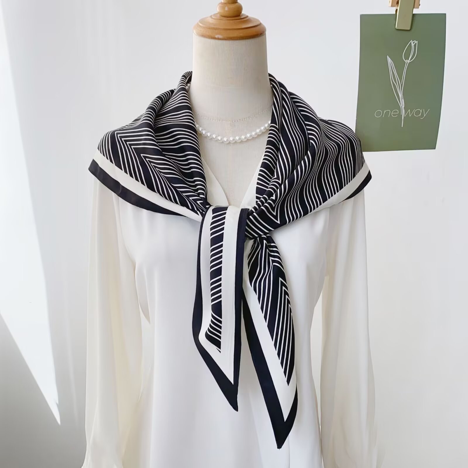 2025 신상 여름 삼각 스카프, 여성용 실크 스카프, 분위기 있는 히잡, 능직 실크 시뮬레이션 실크 시원한 각진 스카프스토어 가기