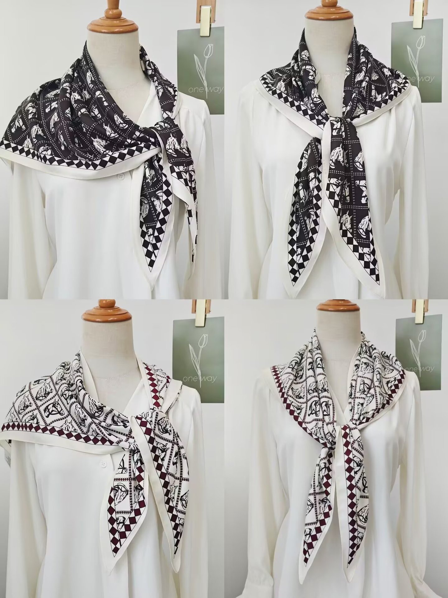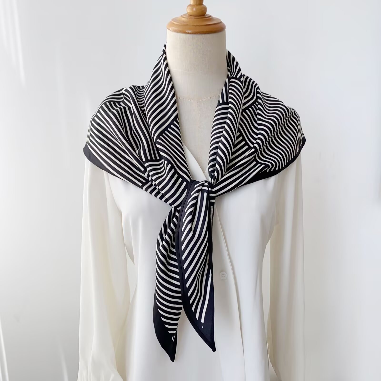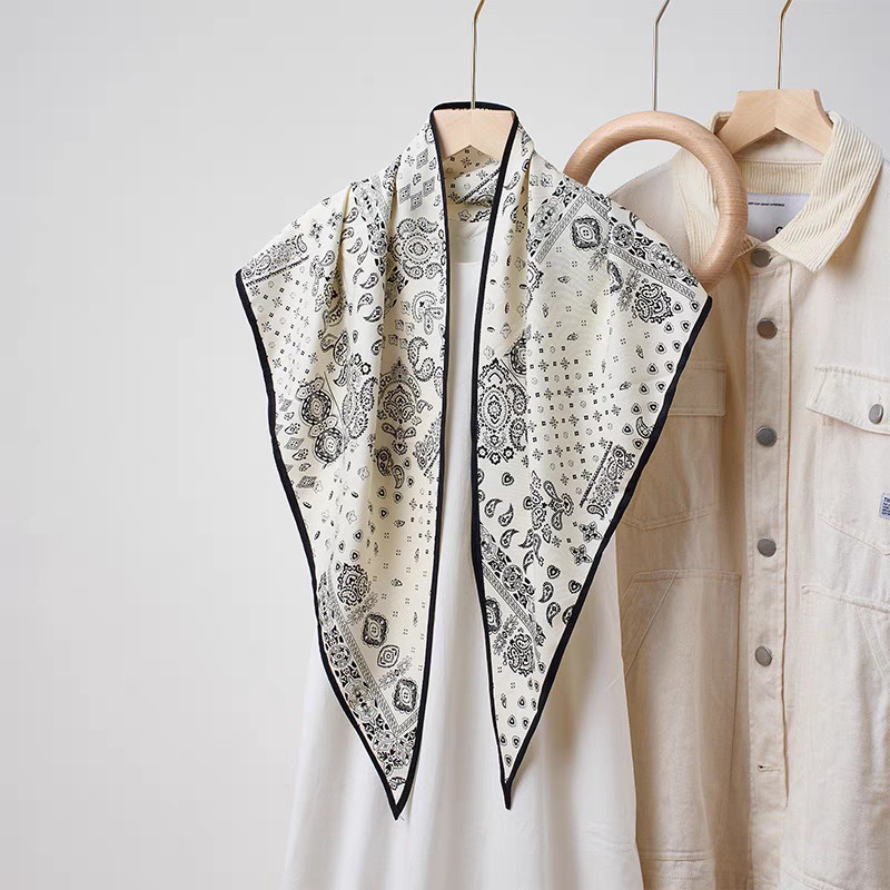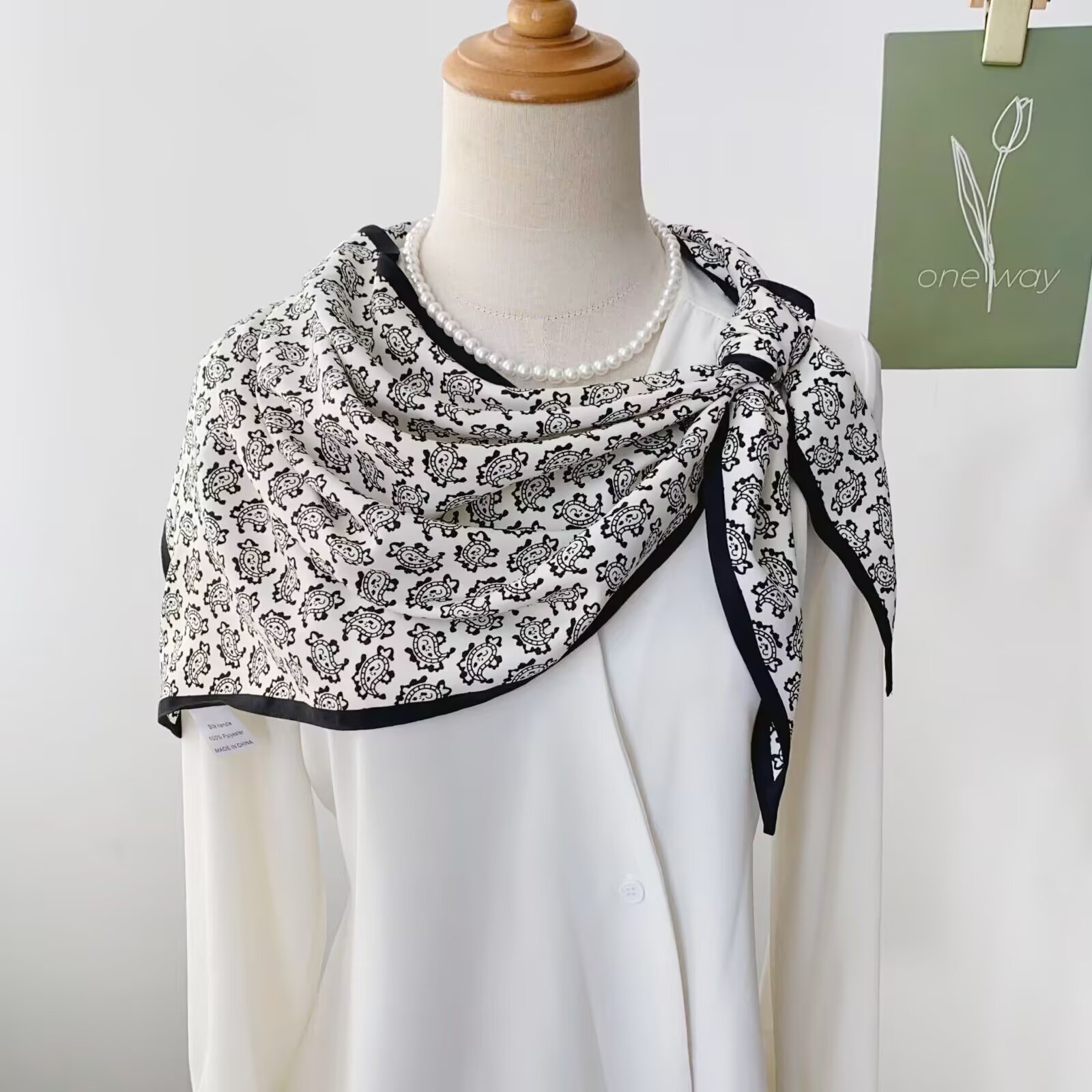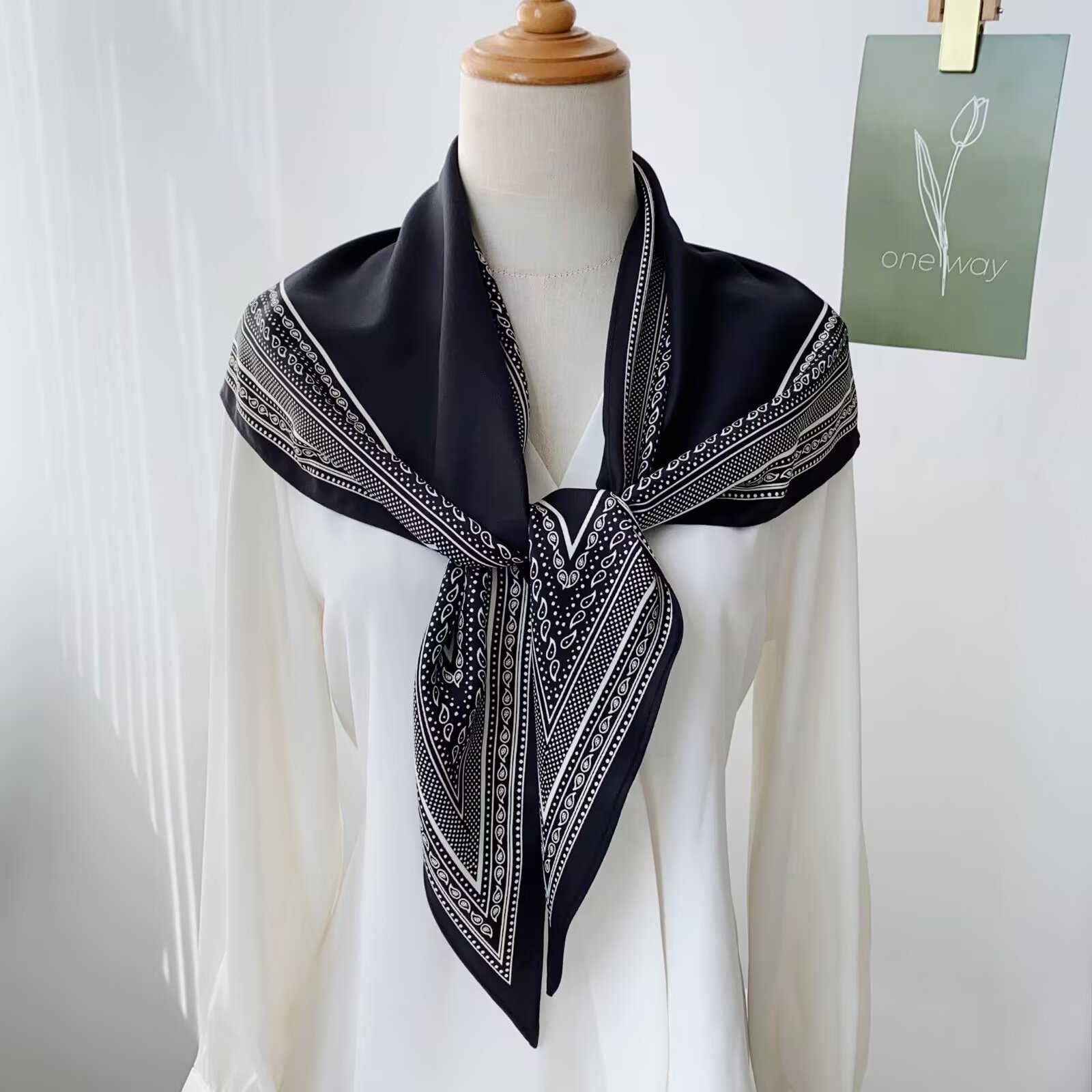 2025 신상 여름 삼각 스카프, 여성용 실크 스카프, 분위기 있는 히잡, 능직 실크 시뮬레이션 실크 시원한 각진 스카프스토어 가기