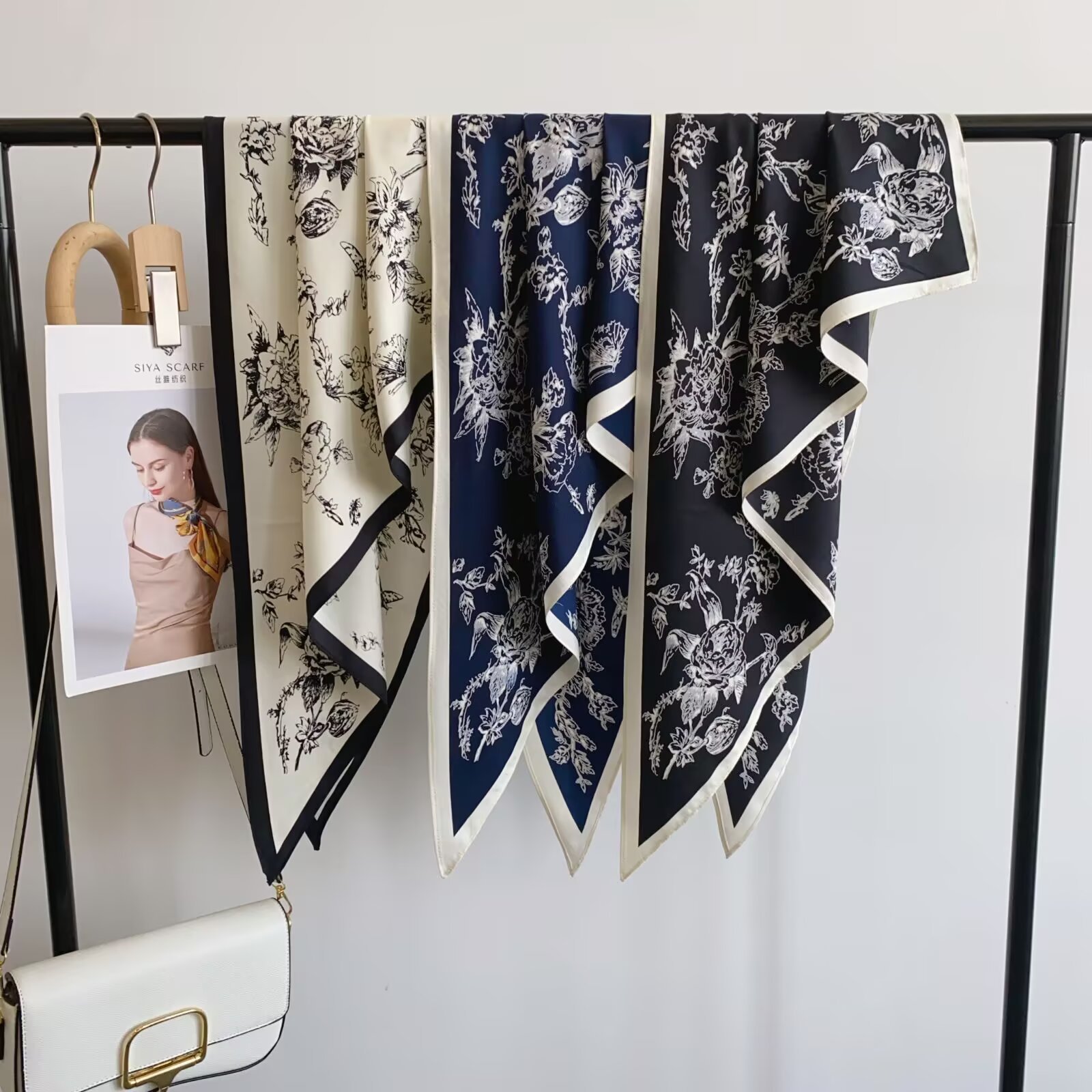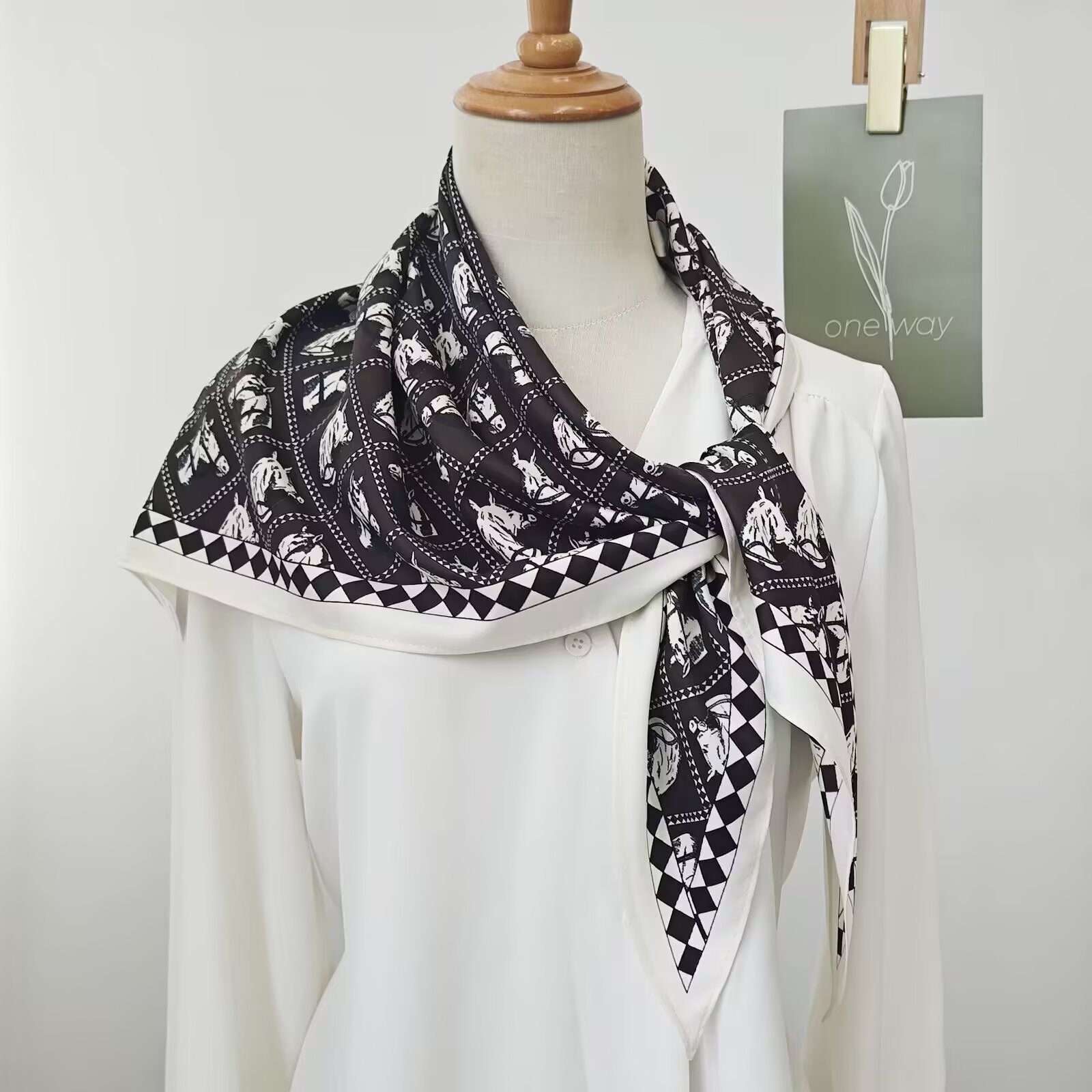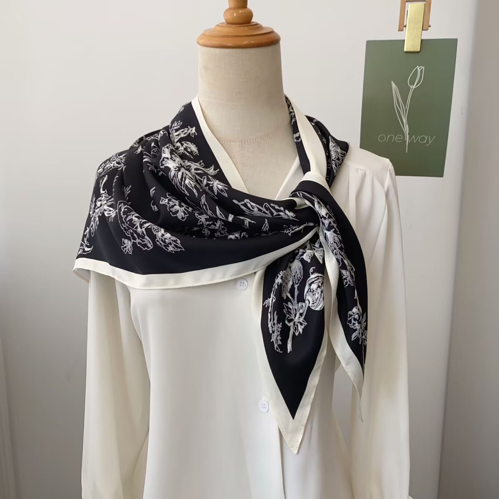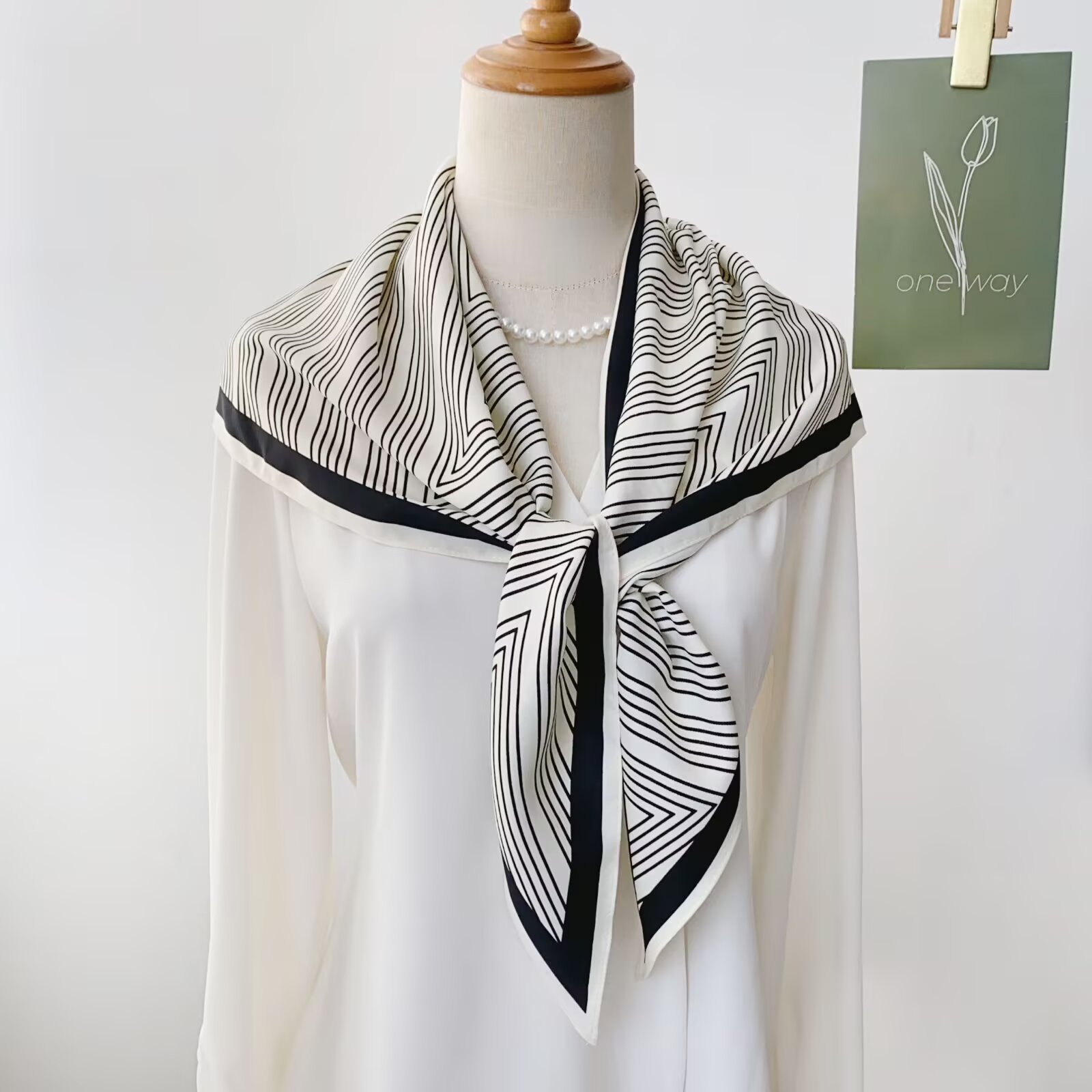 2025 신상 여름 삼각 스카프, 여성용 실크 스카프, 분위기 있는 히잡, 능직 실크 시뮬레이션 실크 시원한 각진 스카프스토어 가기
