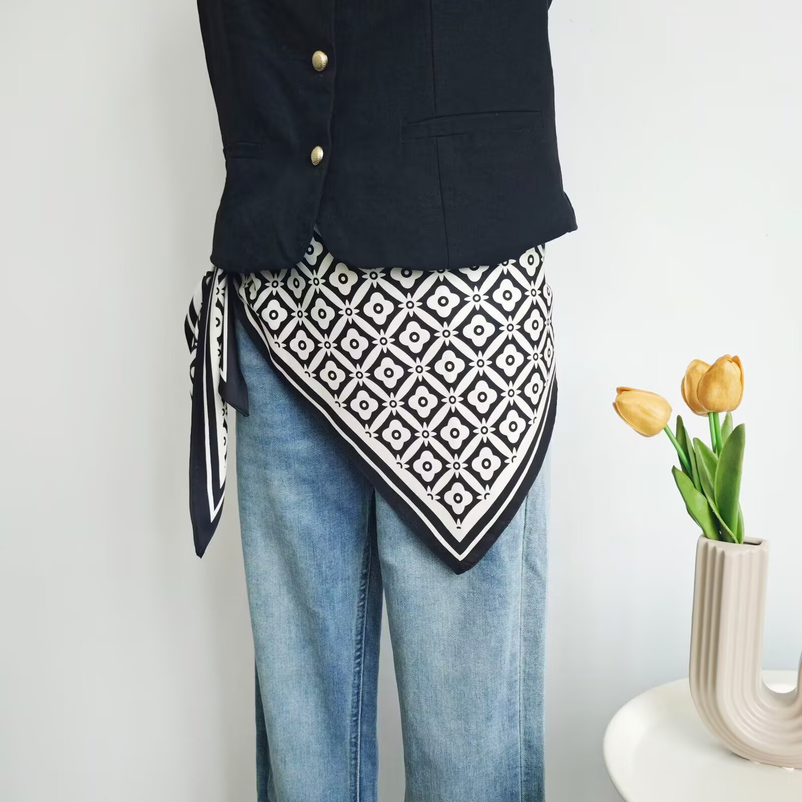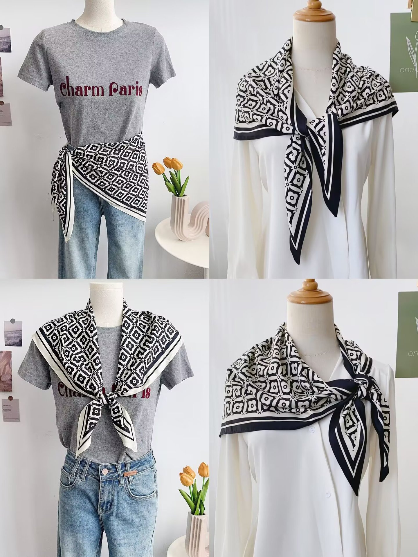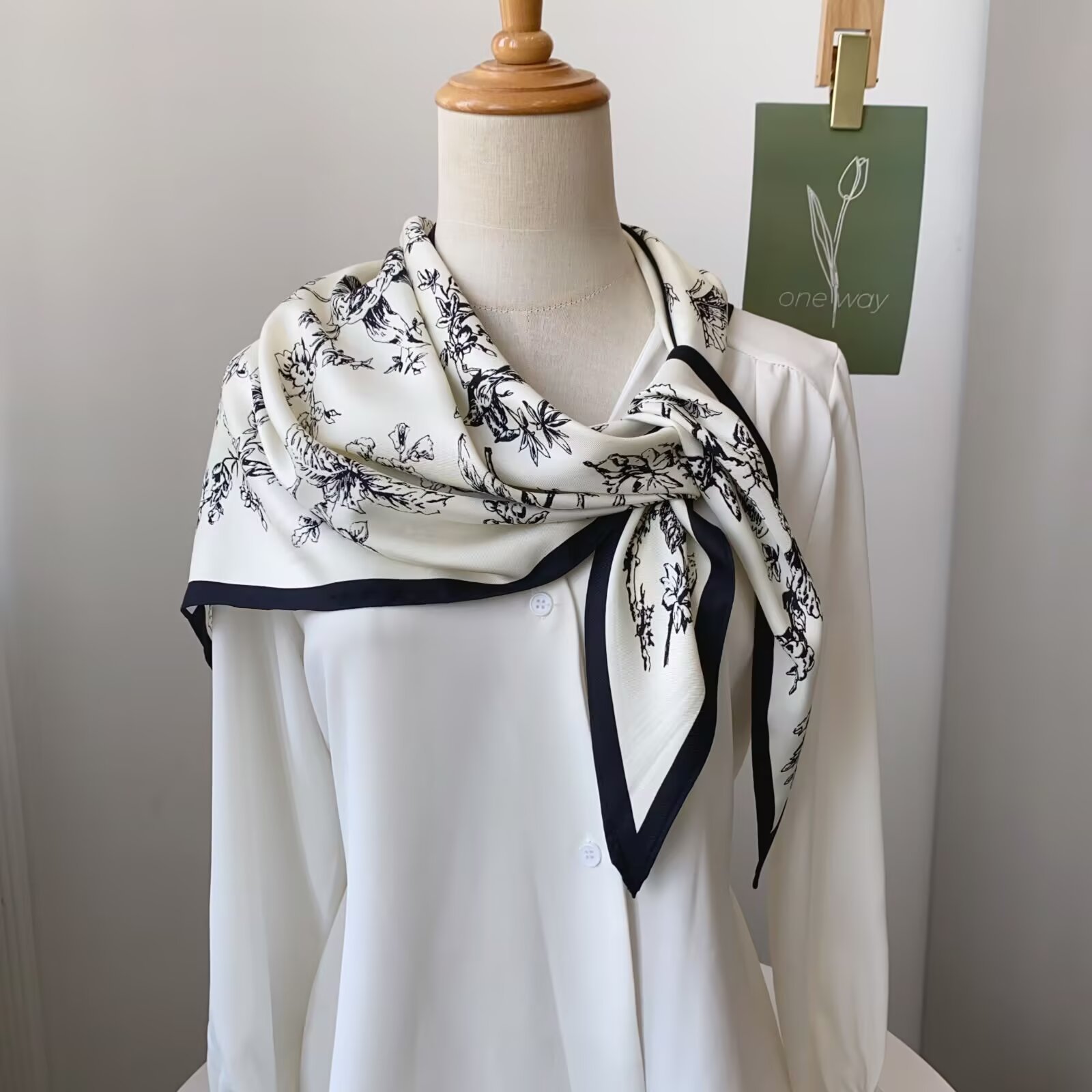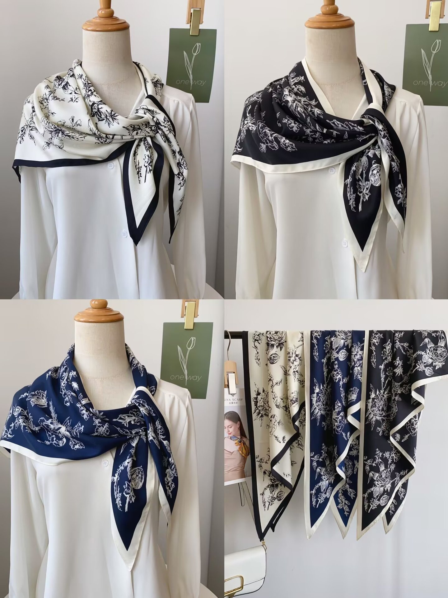 2025 신상 여름 삼각 스카프, 여성용 실크 스카프, 분위기 있는 히잡, 능직 실크 시뮬레이션 실크 시원한 각진 스카프스토어 가기