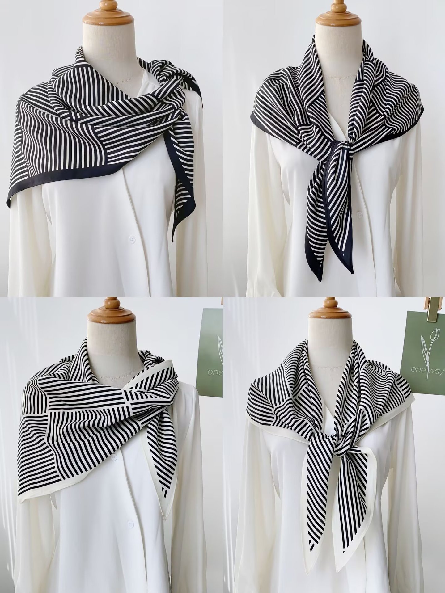• 24 트라이앵글 스카프-기하학 스트라이프/화이트