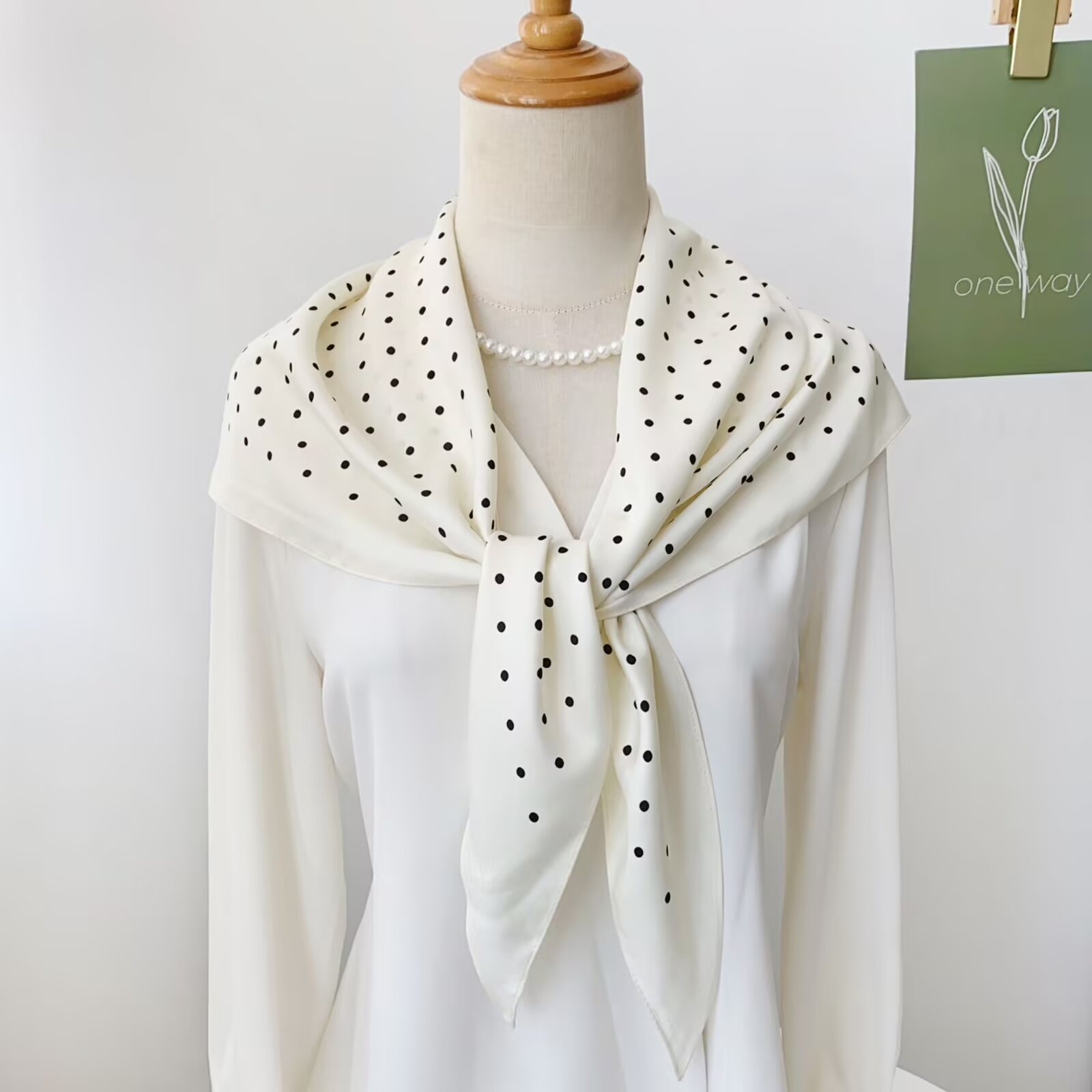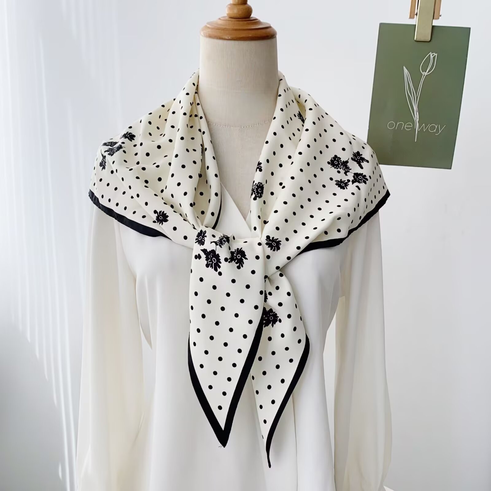 • 26 삼각 스카프-땡땡이 꽃/화이트