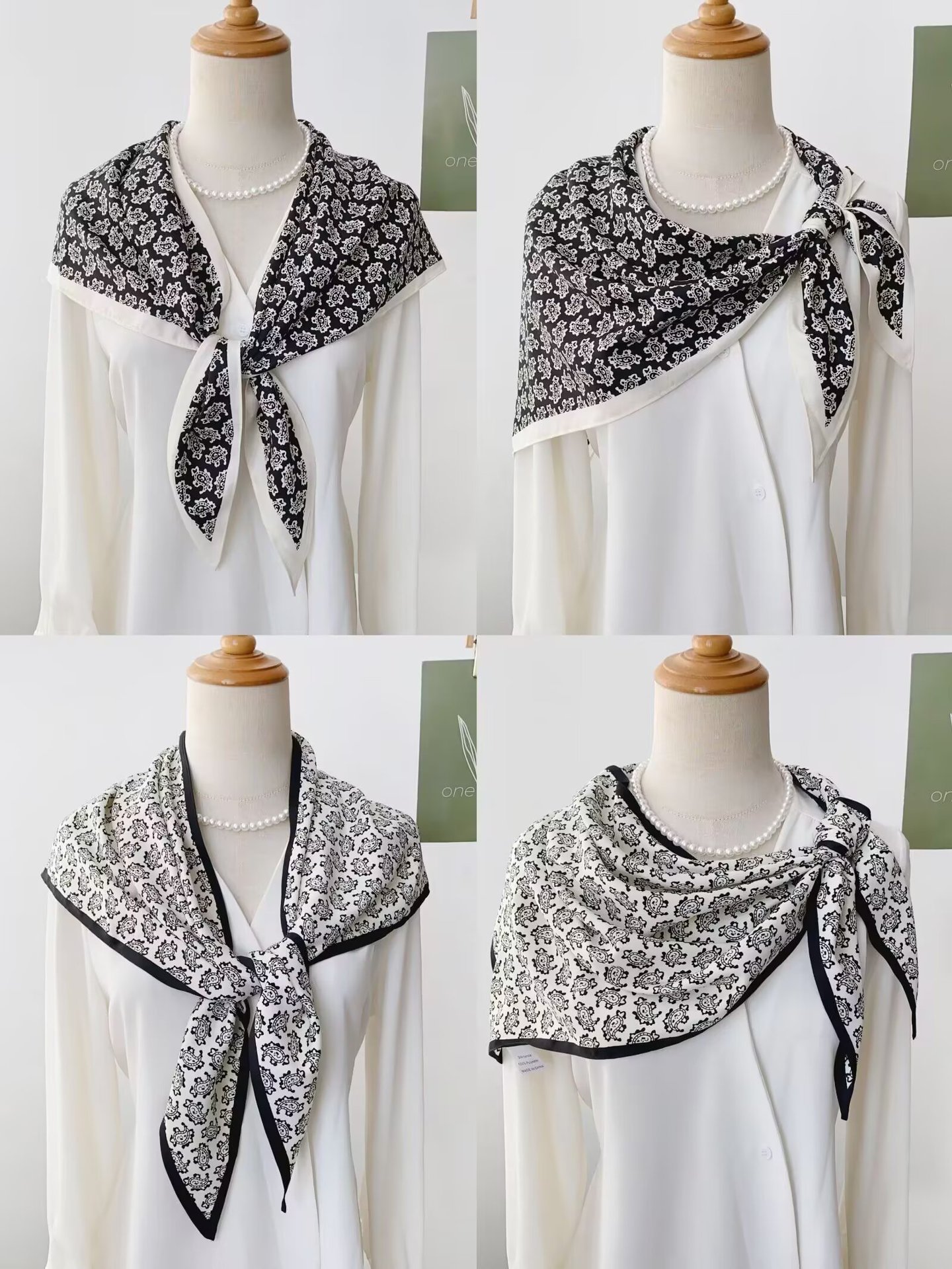 • 4 삼각 스카프 스플라이스 캐슈플라워/블랙