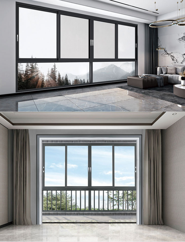 단열 알루미늄 도어 및 창문, 슬라이딩 창, 방충망 일체형 중공 유리, 방음 평면 밀봉, 발코니 밀봉 창, 바닥 창