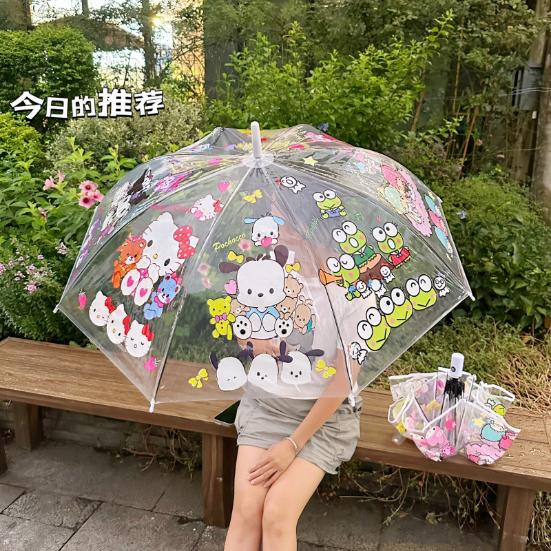산리오 멜로디 쿠로미 우산 긴 손잡이 투명 인터넷 연예인 소녀 초등학생 중대형 어린이 우산