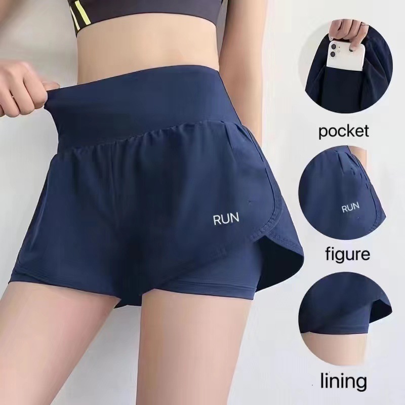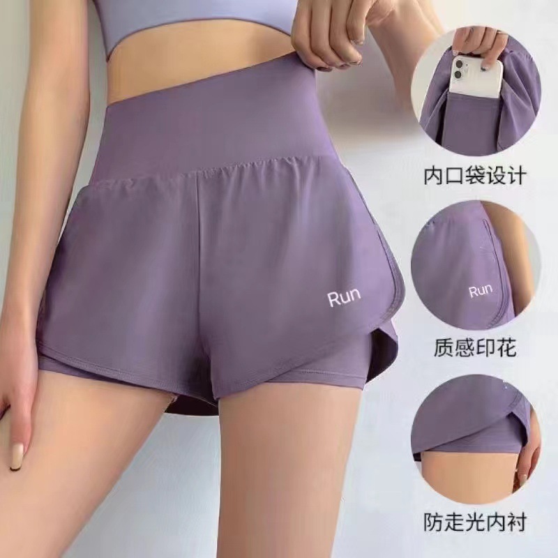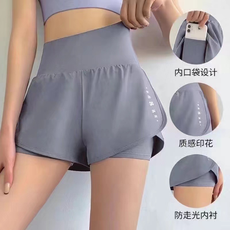 스포츠 반바지 여성의 가짜 투피스 안티 워킹 피트니스 야외 달리기 높은 허리 슬리밍 요가 캐주얼 바지 빠른 건조