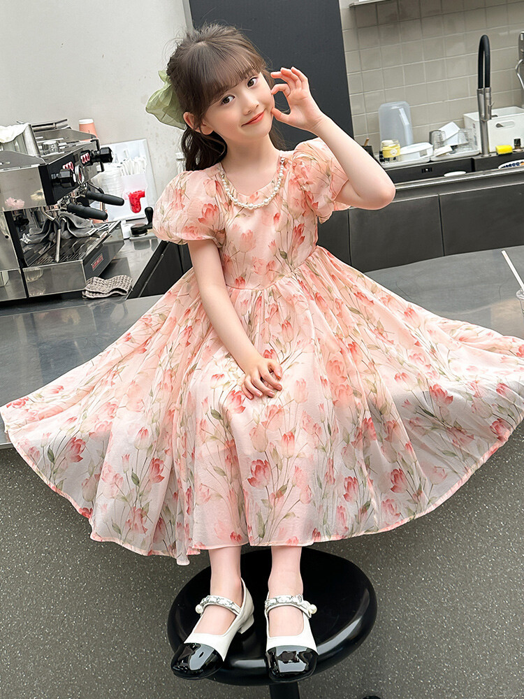 여자 원피스 여름 원피스 2025 새로운 스타일 큰 어린이 치마 활 공주 치마 여자 베일 스커트스토어 가기