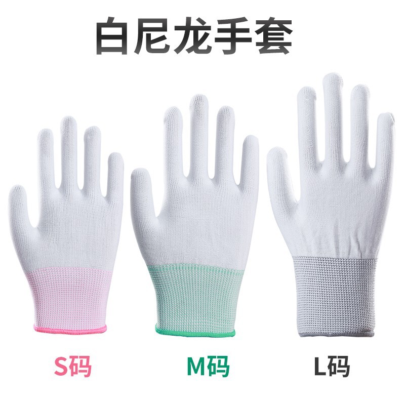 장갑 노동 보호 내마모성 작업 PU 정전기 방지 코팅 손바닥 코팅 손가락 얇은 나일론 딥 통기성 흰색 노동 보호 장갑