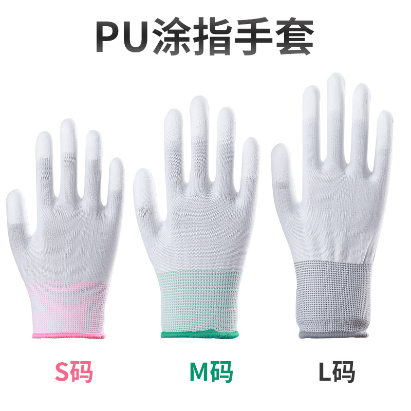 장갑 노동 보호 내마모성 작업 PU 정전기 방지 코팅 손바닥 코팅 손가락 얇은 나일론 딥 통기성 흰색 노동 보호 장갑스토어 가기