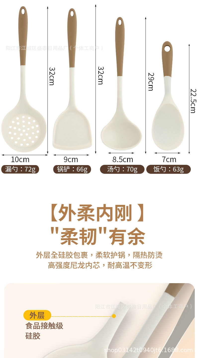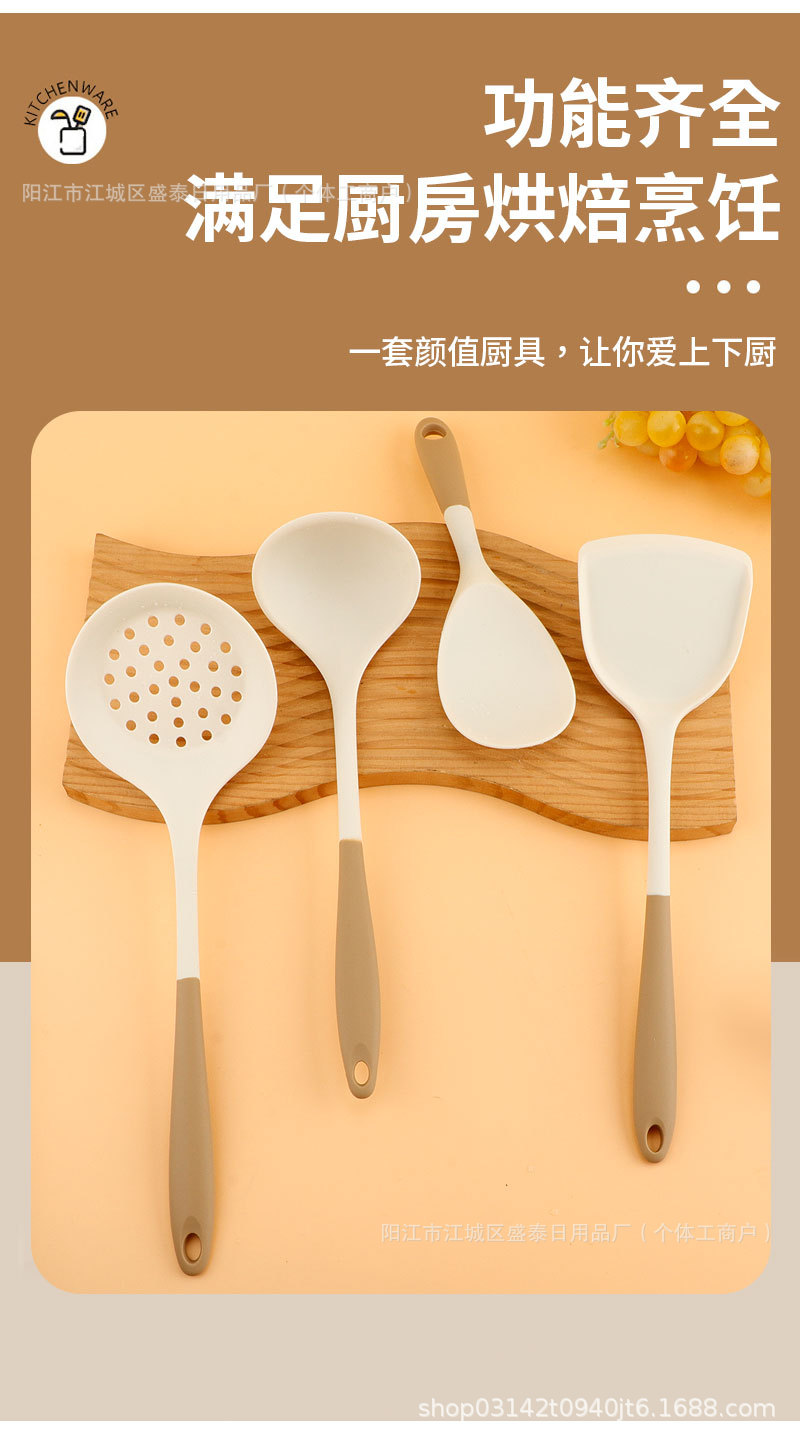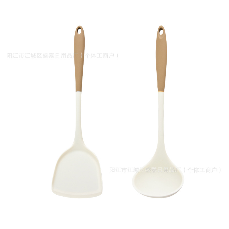 국경 간 분홍색 손잡이 흰색 실리콘 주걱 요리 주걱 수프 스푼 세트 고온 방지 밥 스푼 주방 요리 도구스토어 가기