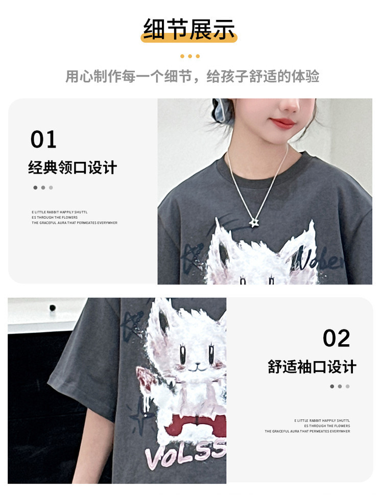 소녀 2025 새로운 여름 치마 세트 서양식 캐주얼 큰 어린이 만화 티셔츠 투피스 세트스토어 가기