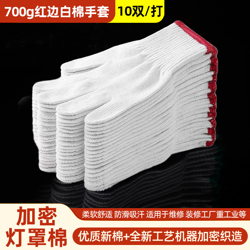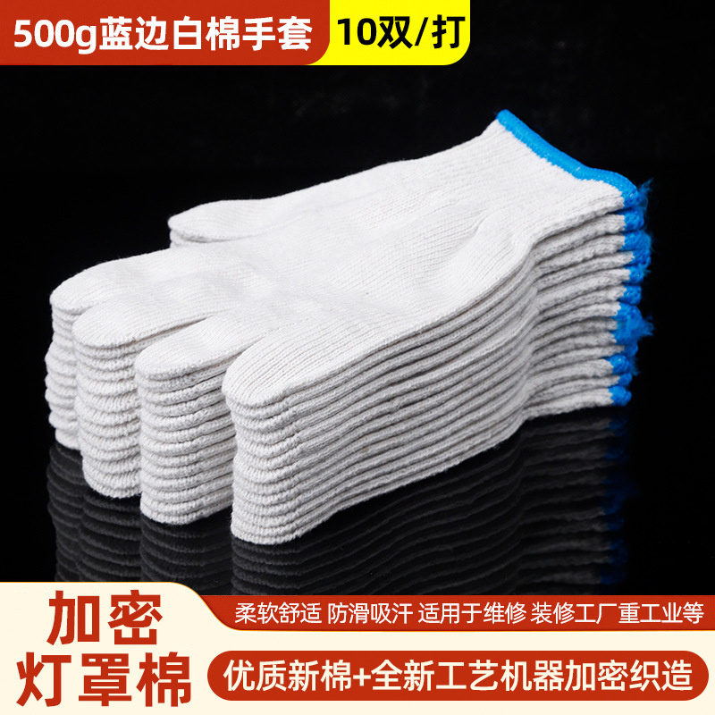 국경을 넘는 면사 장갑, 작업용 두꺼운 흰색 램프갓 면사, 공장 노동 보호용 두꺼운 내마모성 장갑