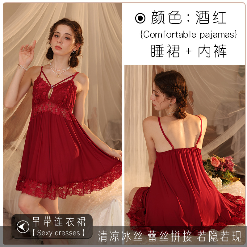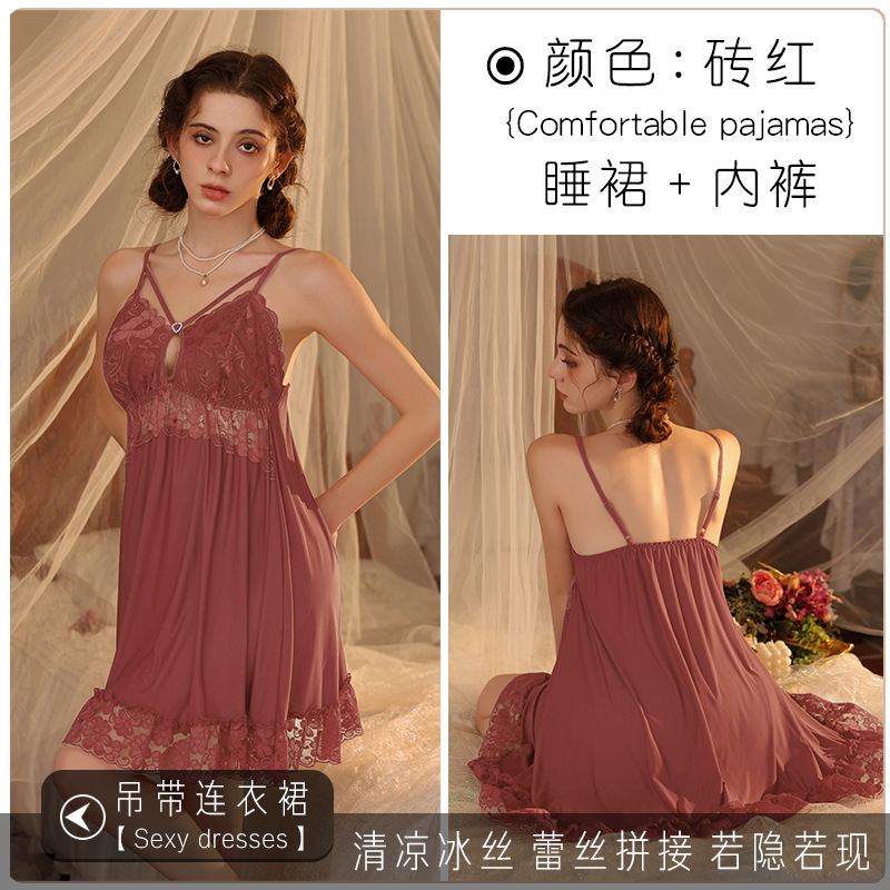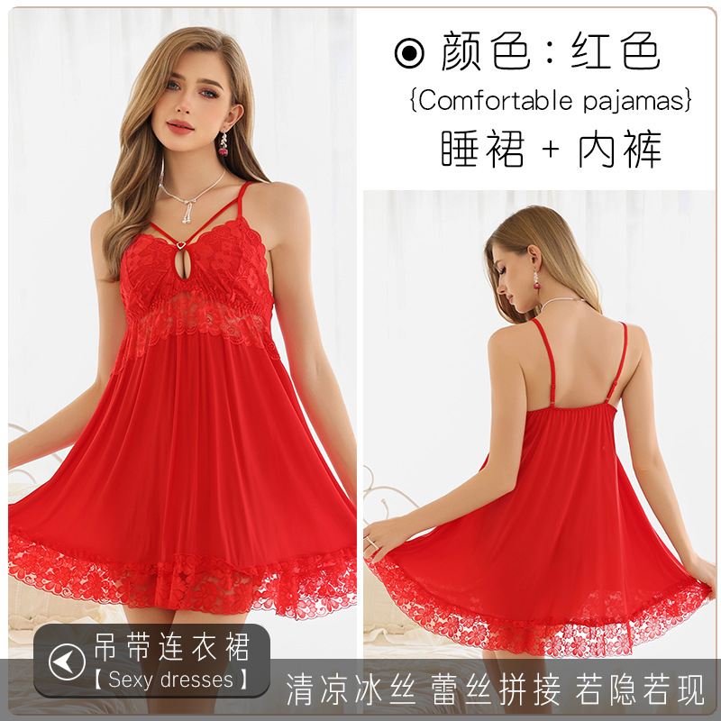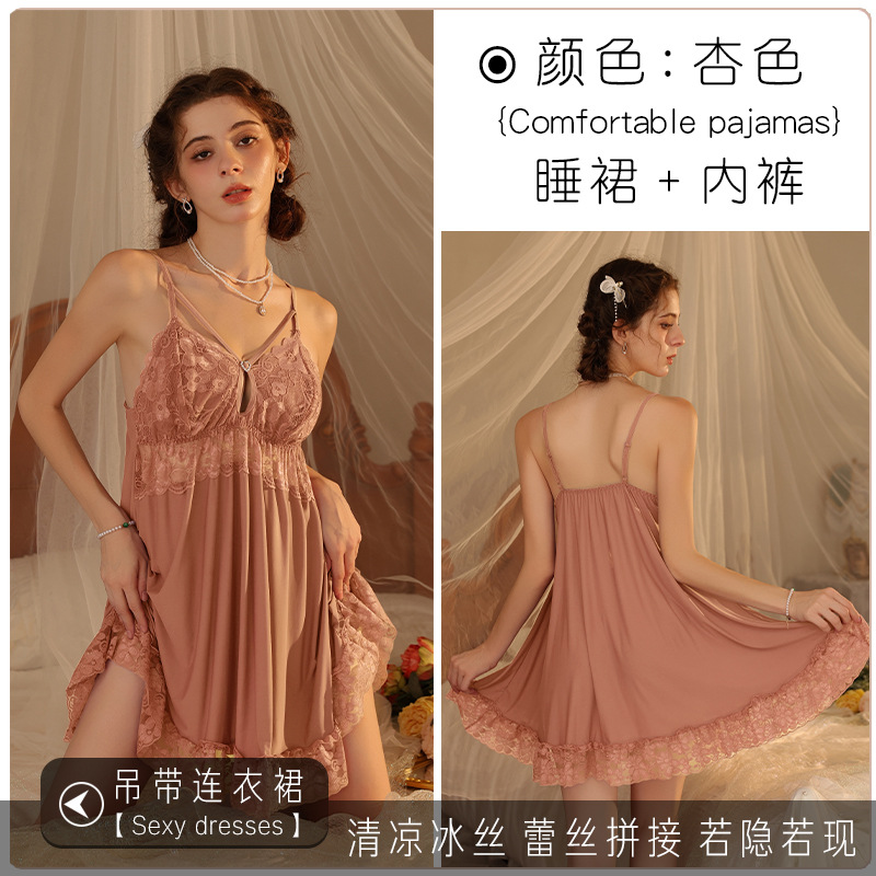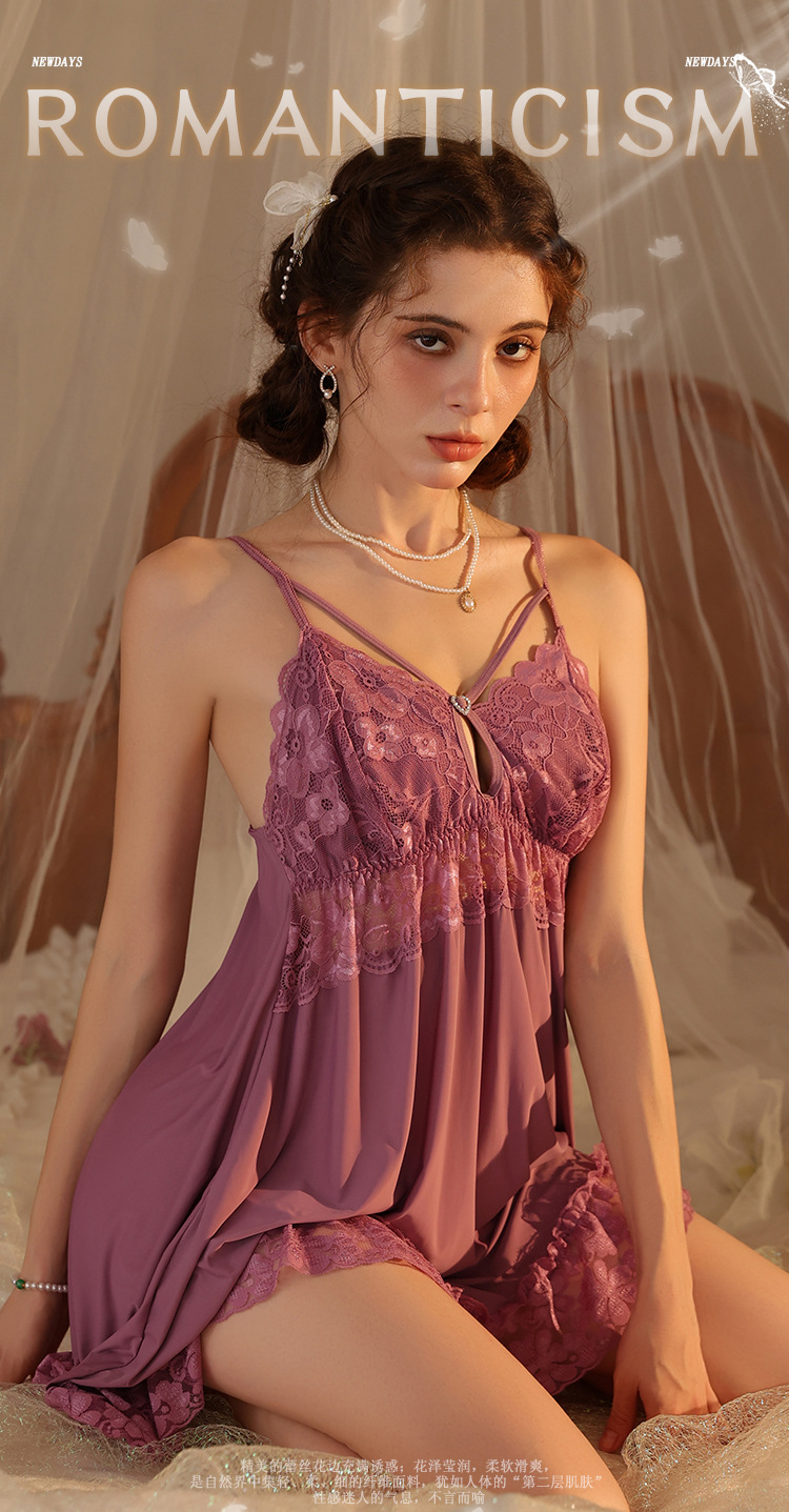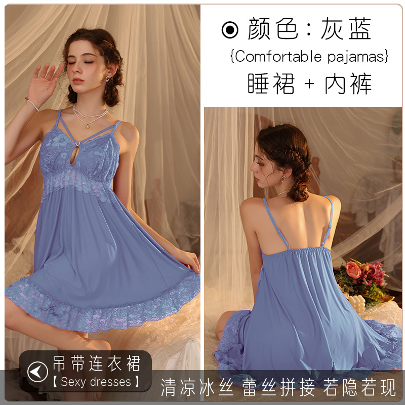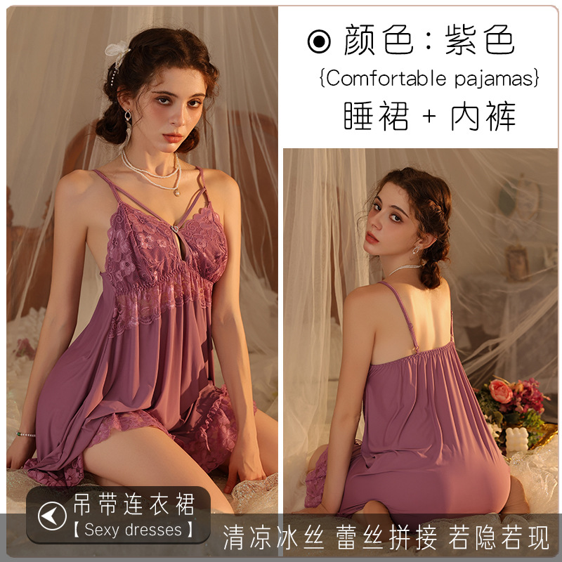 새로운 섹시한 순수한 욕망 스타일 잠옷 뜨거운 소녀 레이스 스플 라이스 서스펜더 잠옷 여성 다목적 디자인 홈웨어 도매스토어 가기