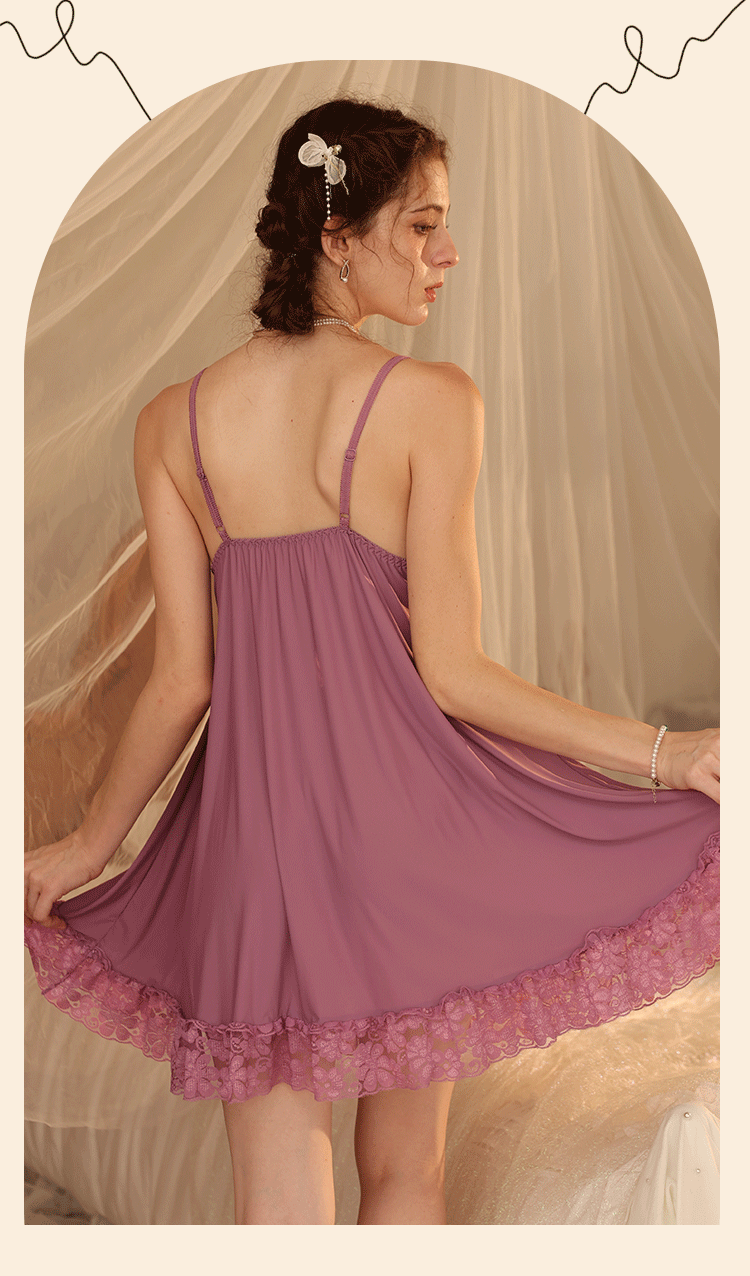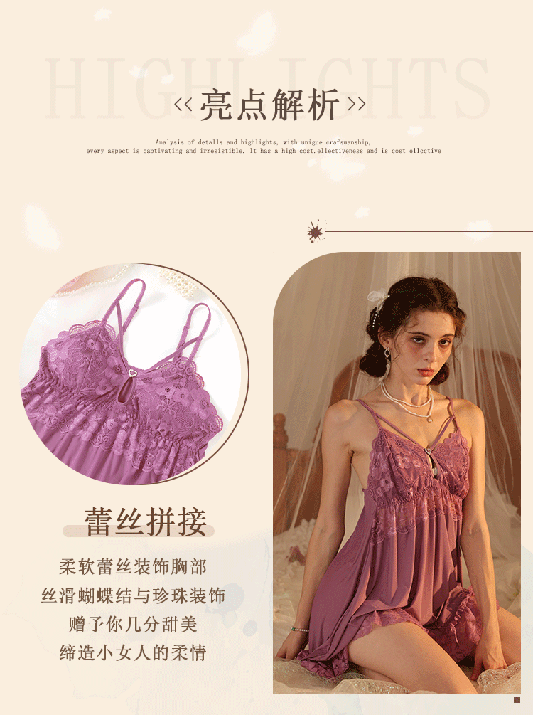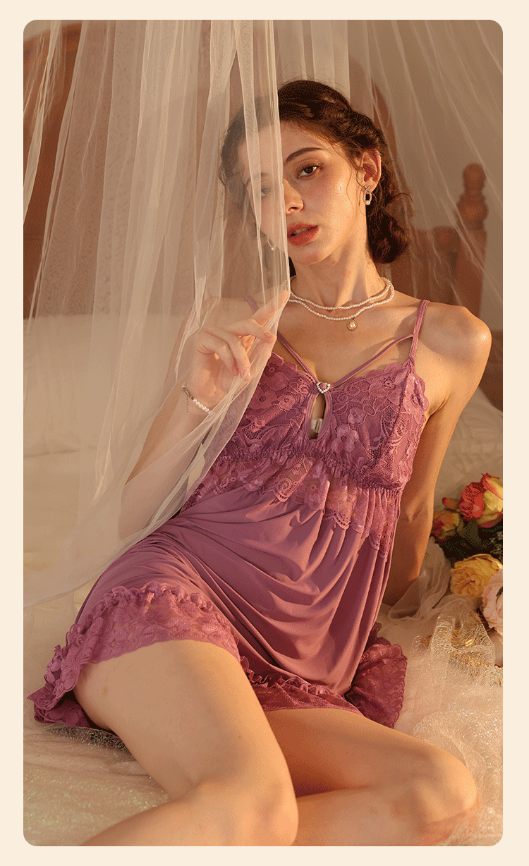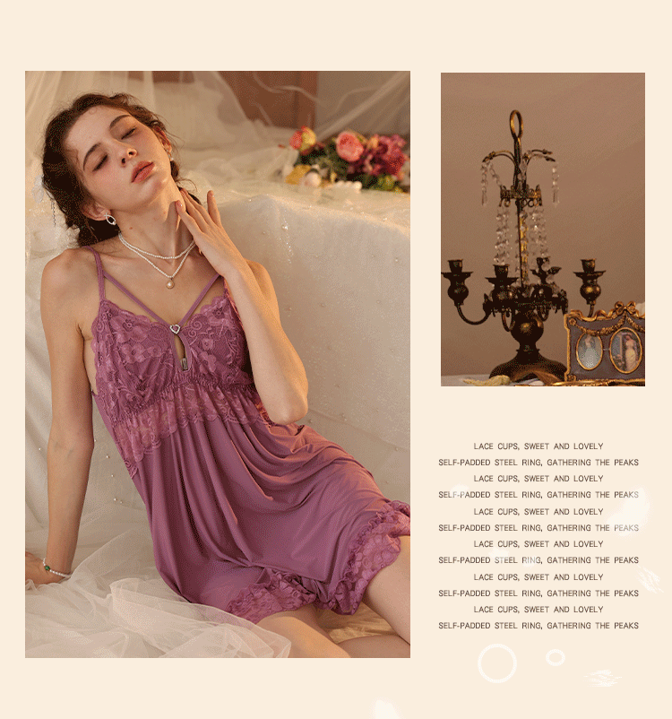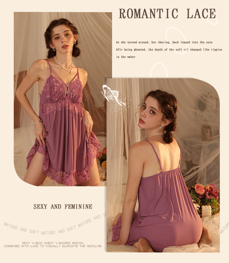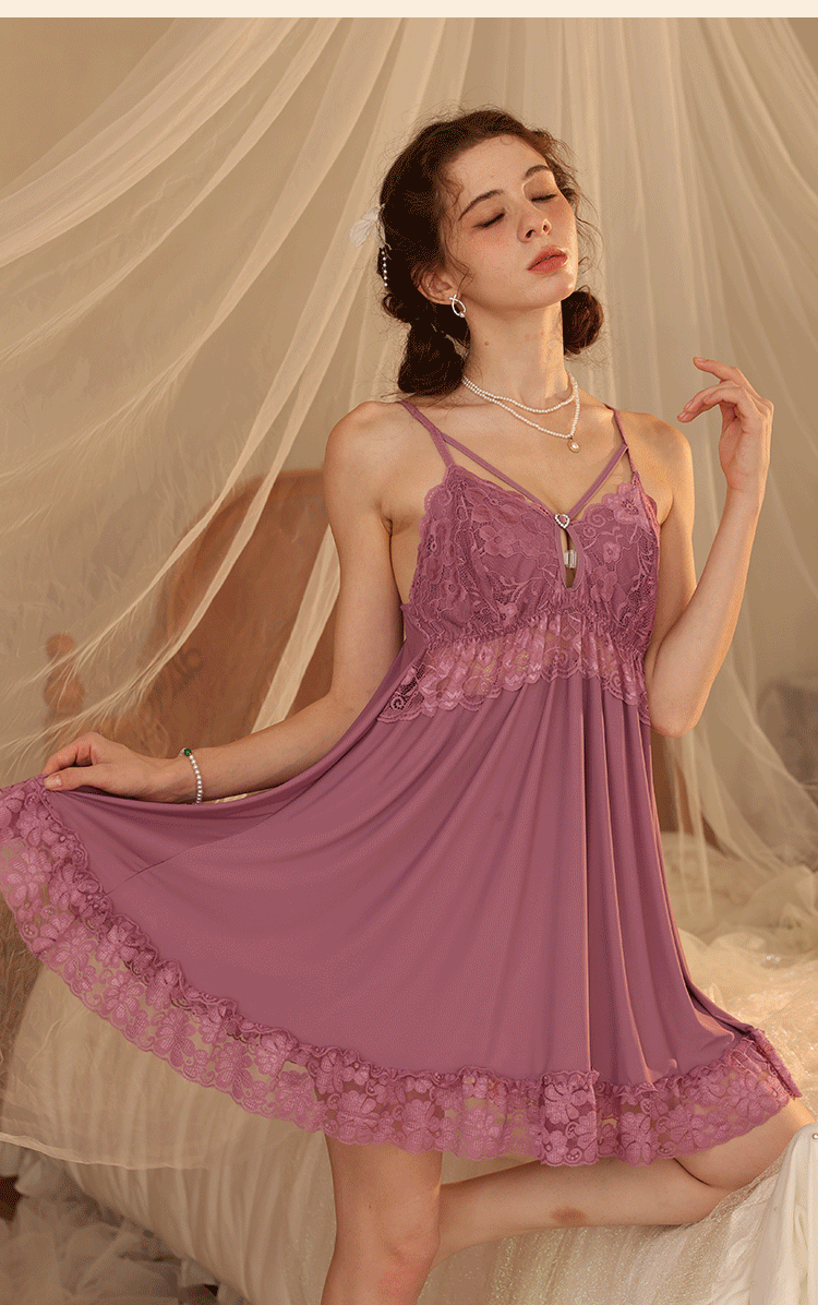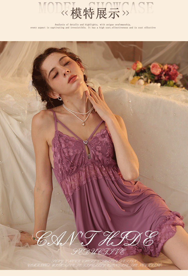 새로운 섹시한 순수한 욕망 스타일 잠옷 뜨거운 소녀 레이스 스플 라이스 서스펜더 잠옷 여성 다목적 디자인 홈웨어 도매스토어 가기