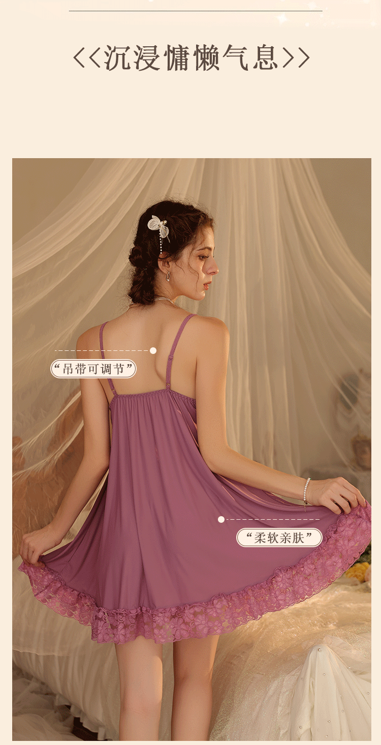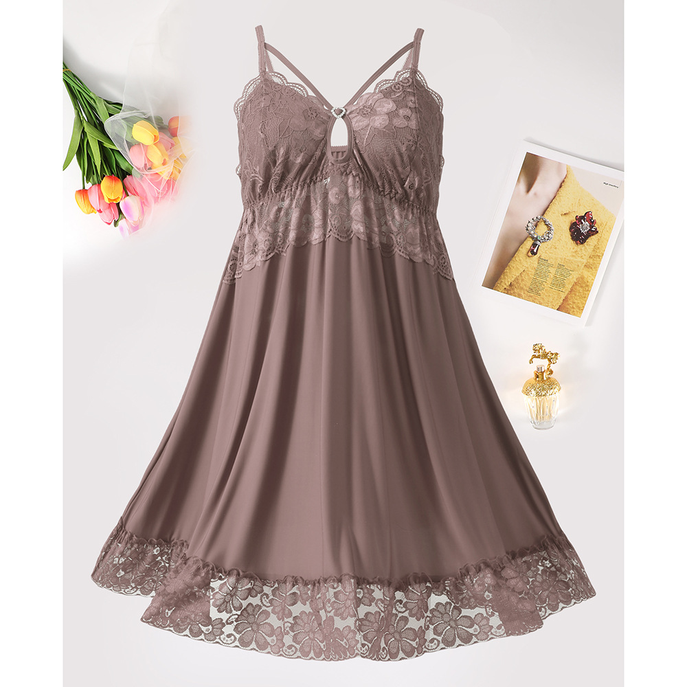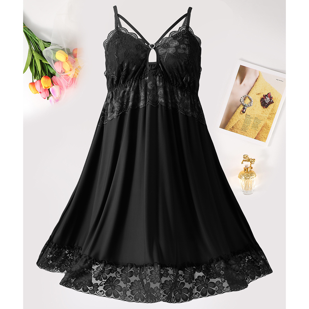 새로운 섹시한 순수한 욕망 스타일 잠옷 뜨거운 소녀 레이스 스플 라이스 서스펜더 잠옷 여성 다목적 디자인 홈웨어 도매