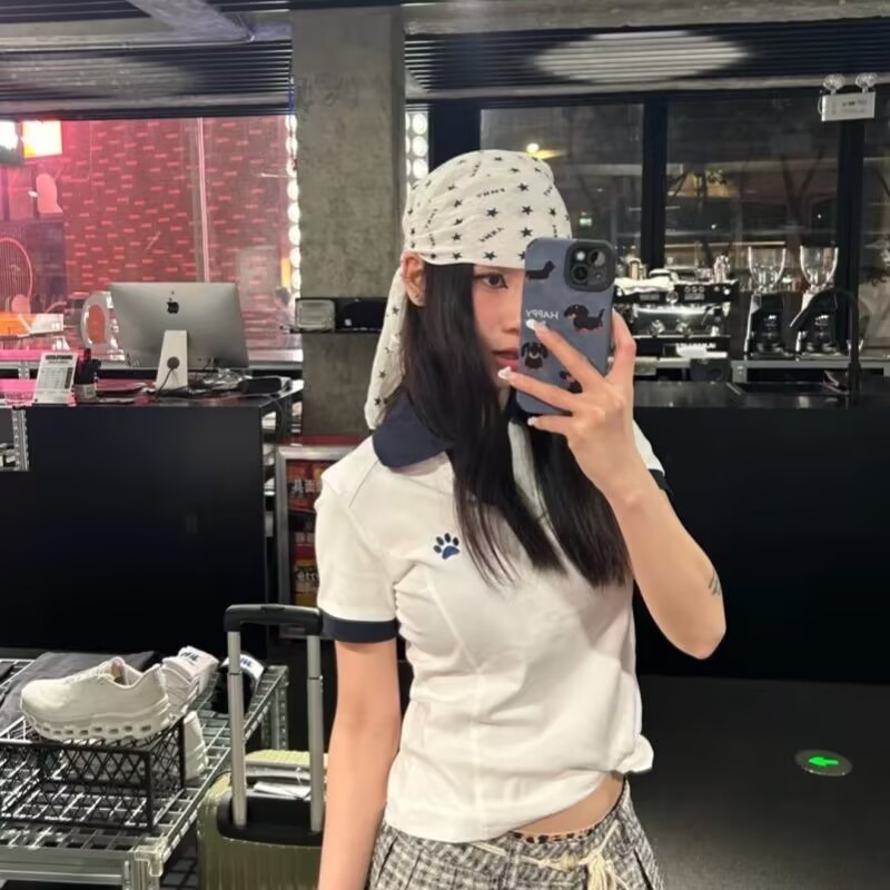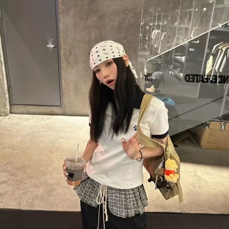 다섯개 별 화이트 조커 외국 스타일 터번 힙합 댄스 그물 레드 작은 스퀘어 여성 패션 힙합 스카프 도매스토어 가기