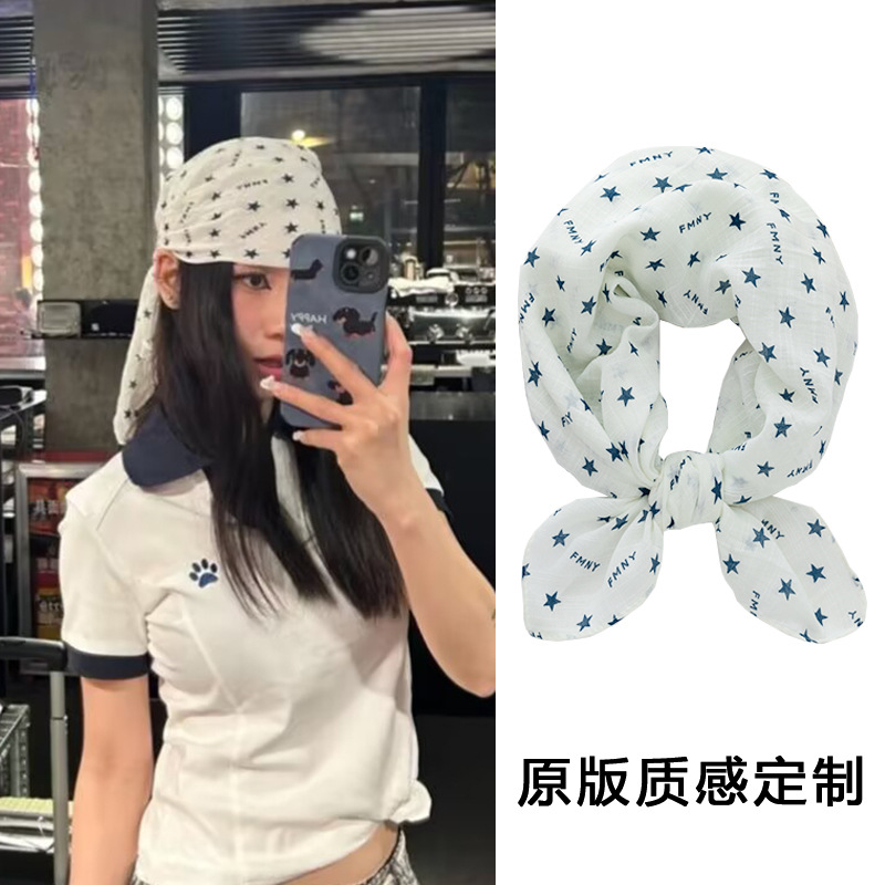 다섯개 별 화이트 조커 외국 스타일 터번 힙합 댄스 그물 레드 작은 스퀘어 여성 패션 힙합 스카프 도매