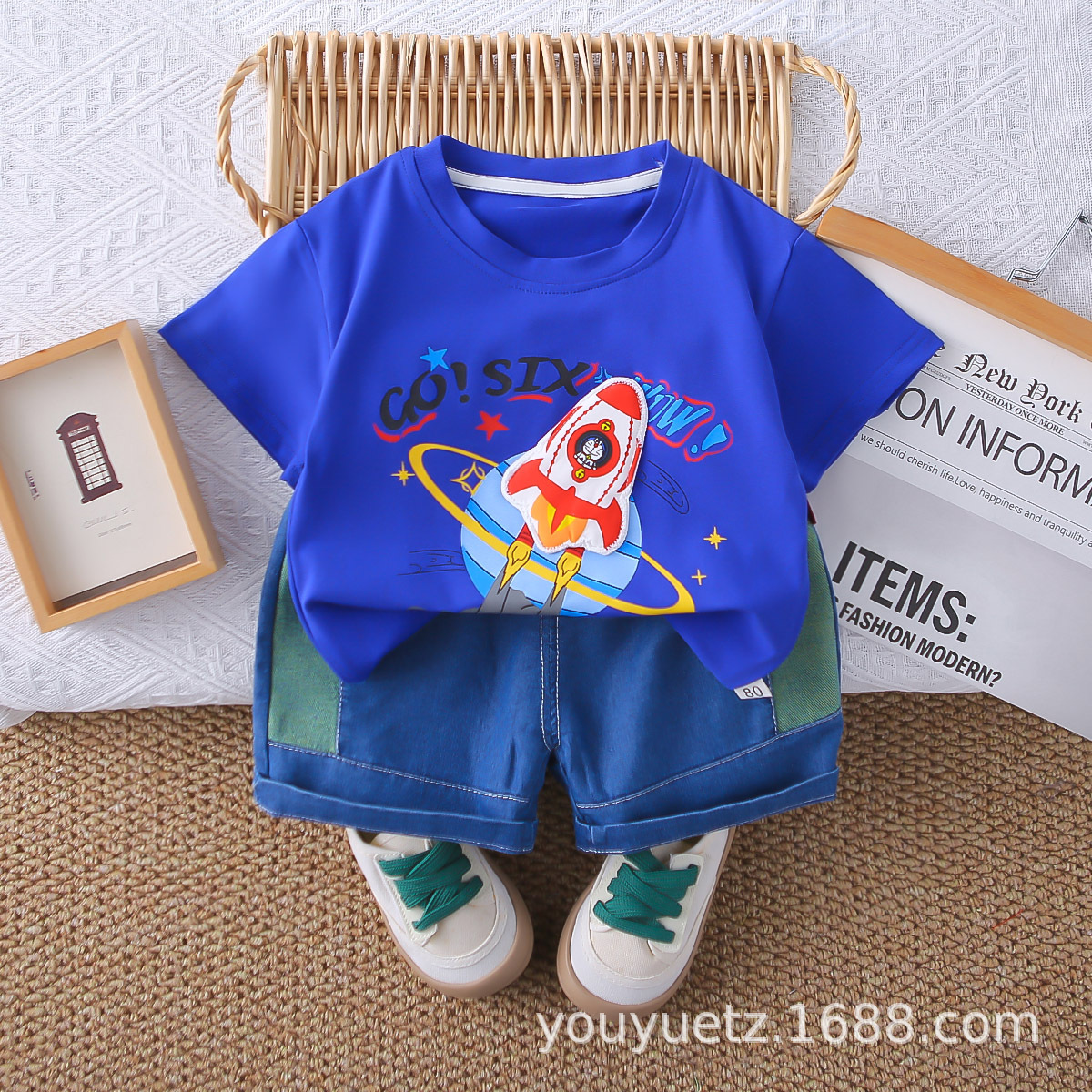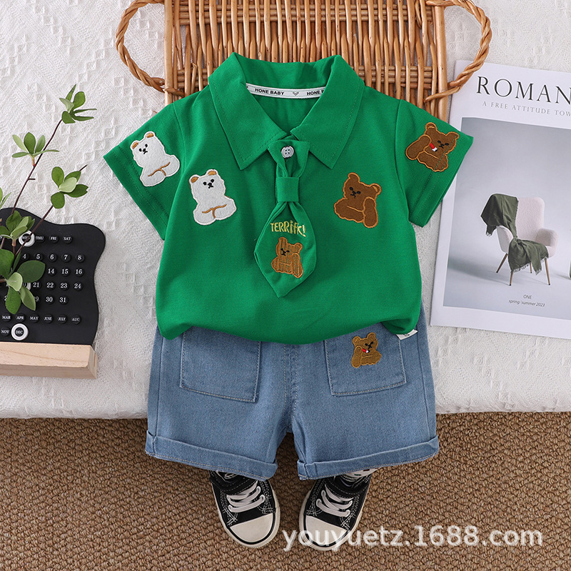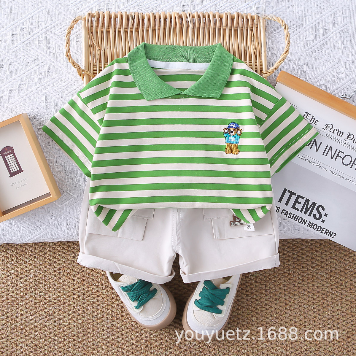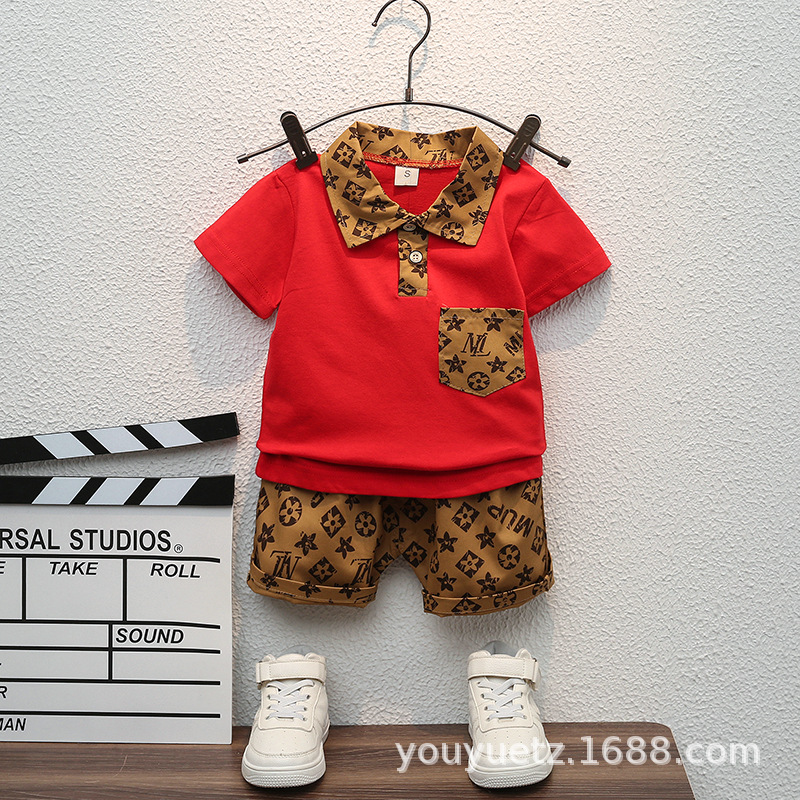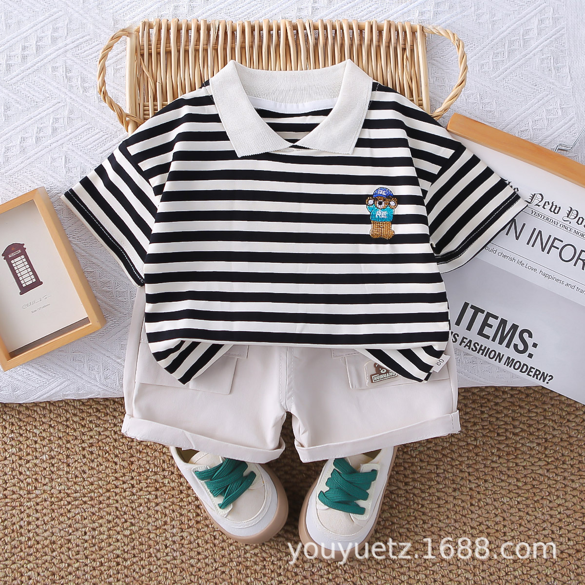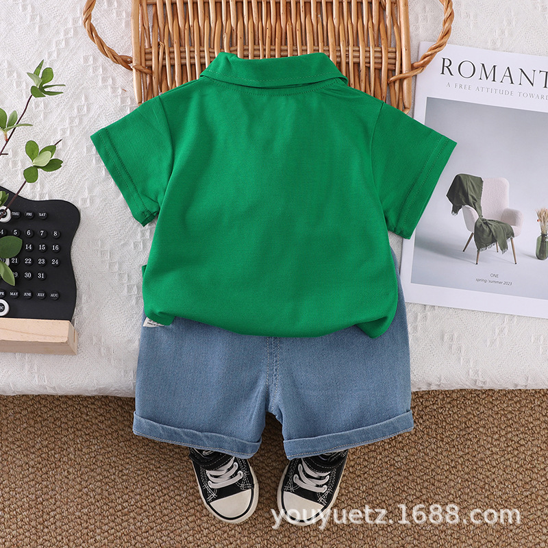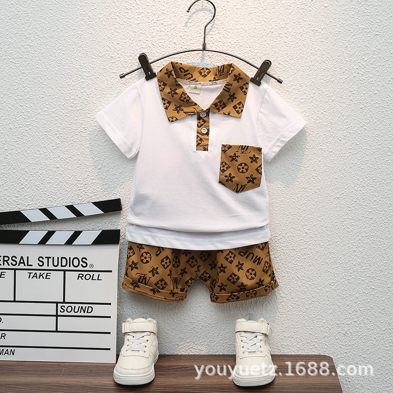 소년 여름 의류 세트 2025 새로운 아기 여름 어린이 의류 잘 생긴 어린이 엘 짧은 소매 폴로 셔츠 옷스토어 가기