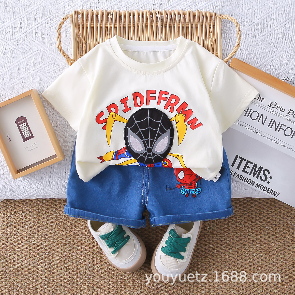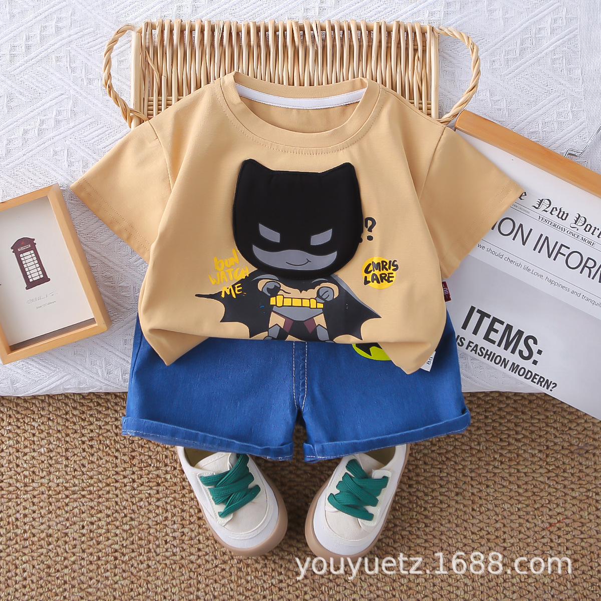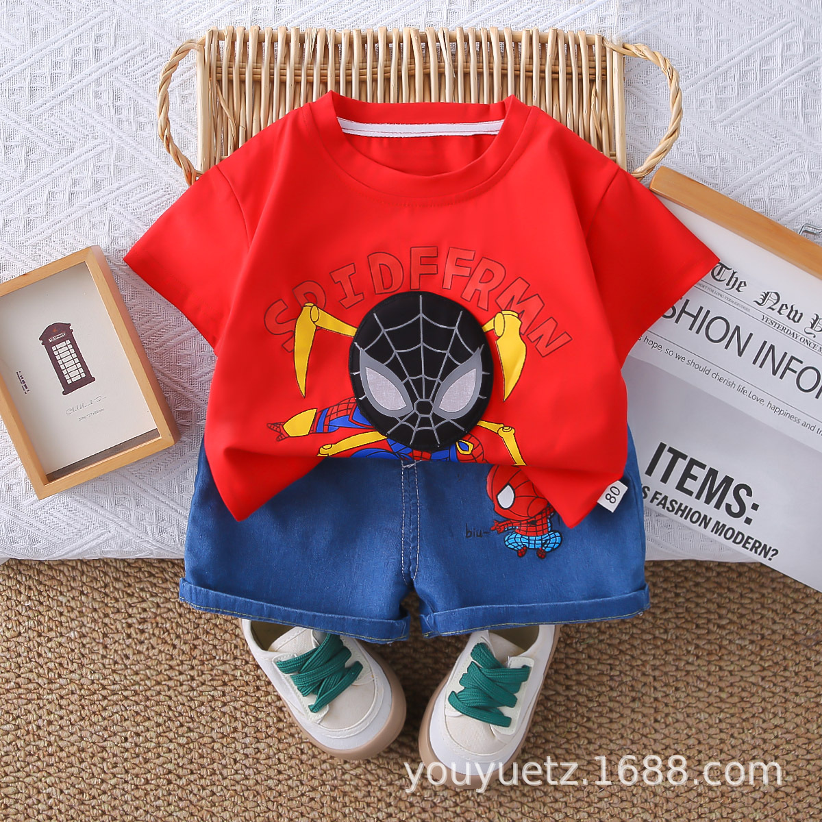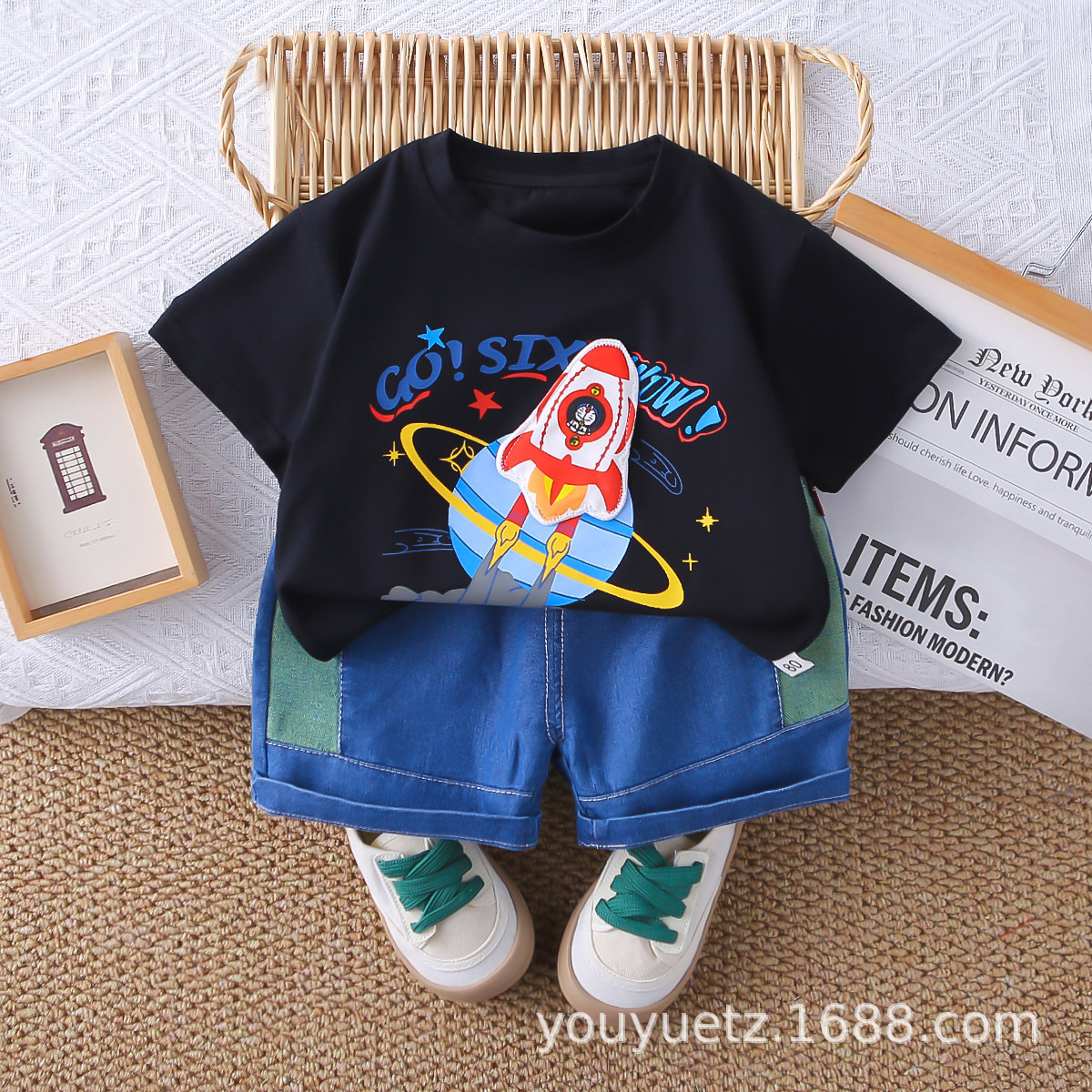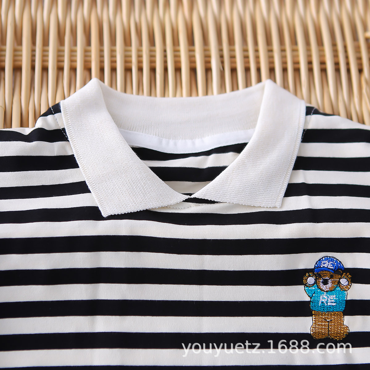 소년 여름 의류 세트 2025 새로운 아기 여름 어린이 의류 잘 생긴 어린이 엘 짧은 소매 폴로 셔츠 옷스토어 가기
