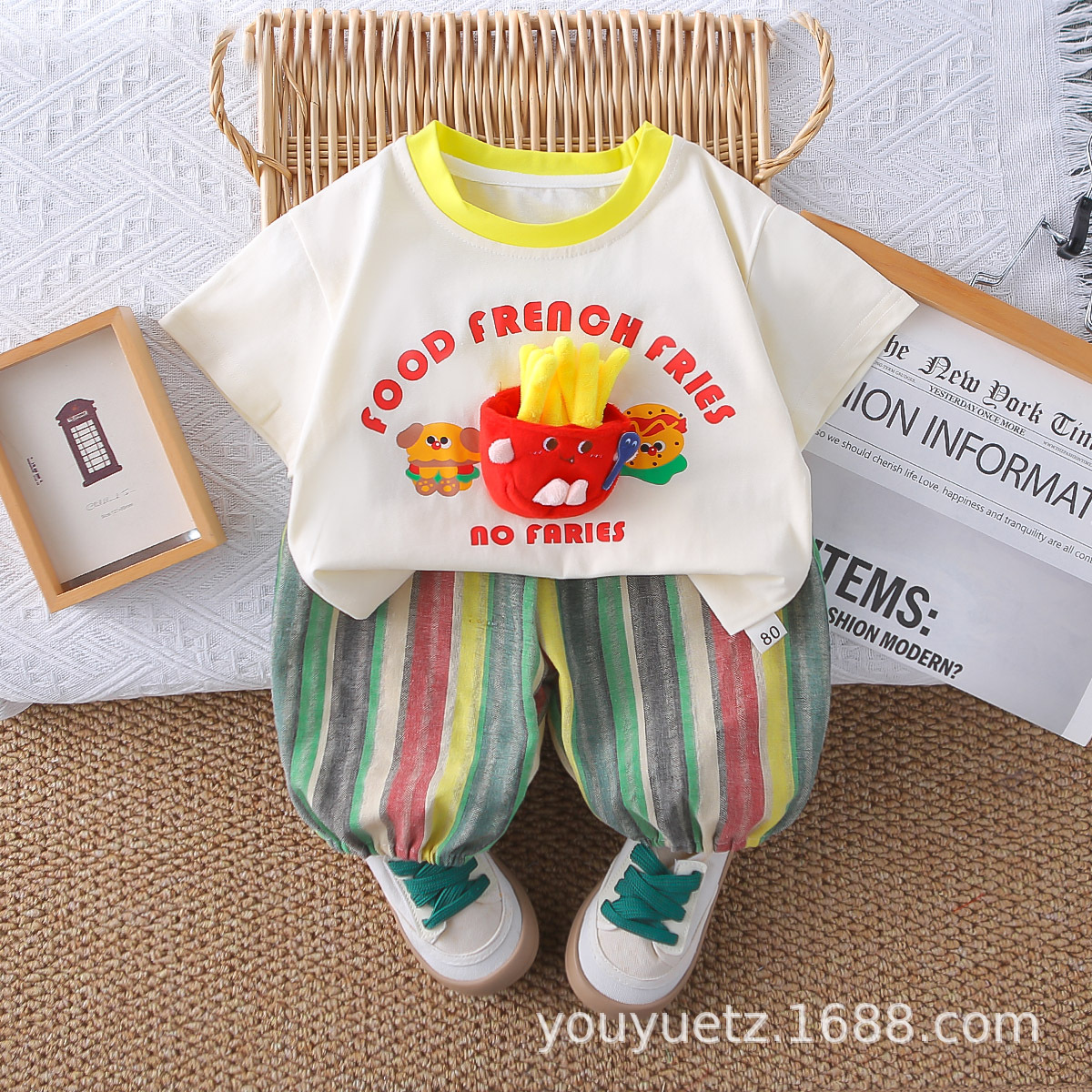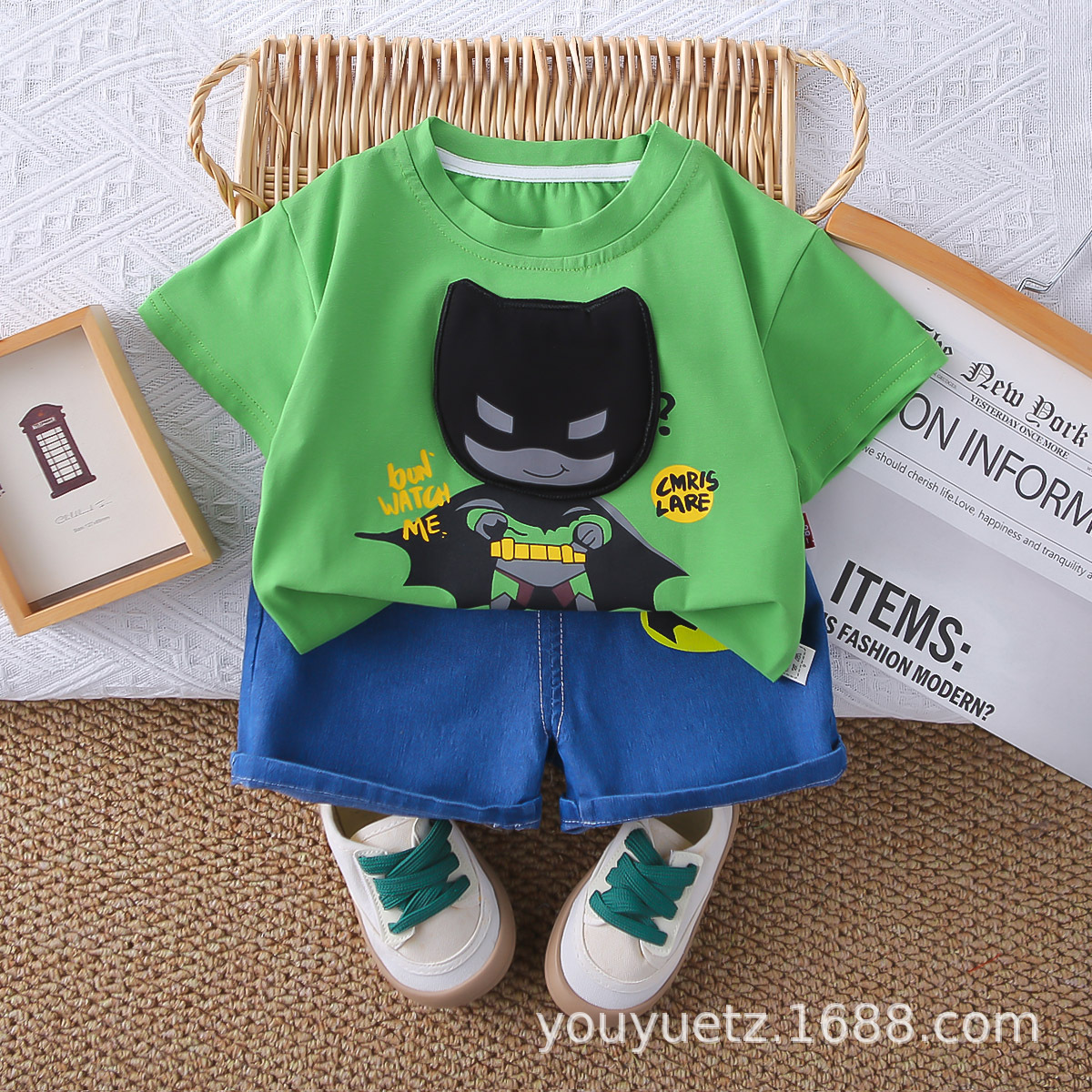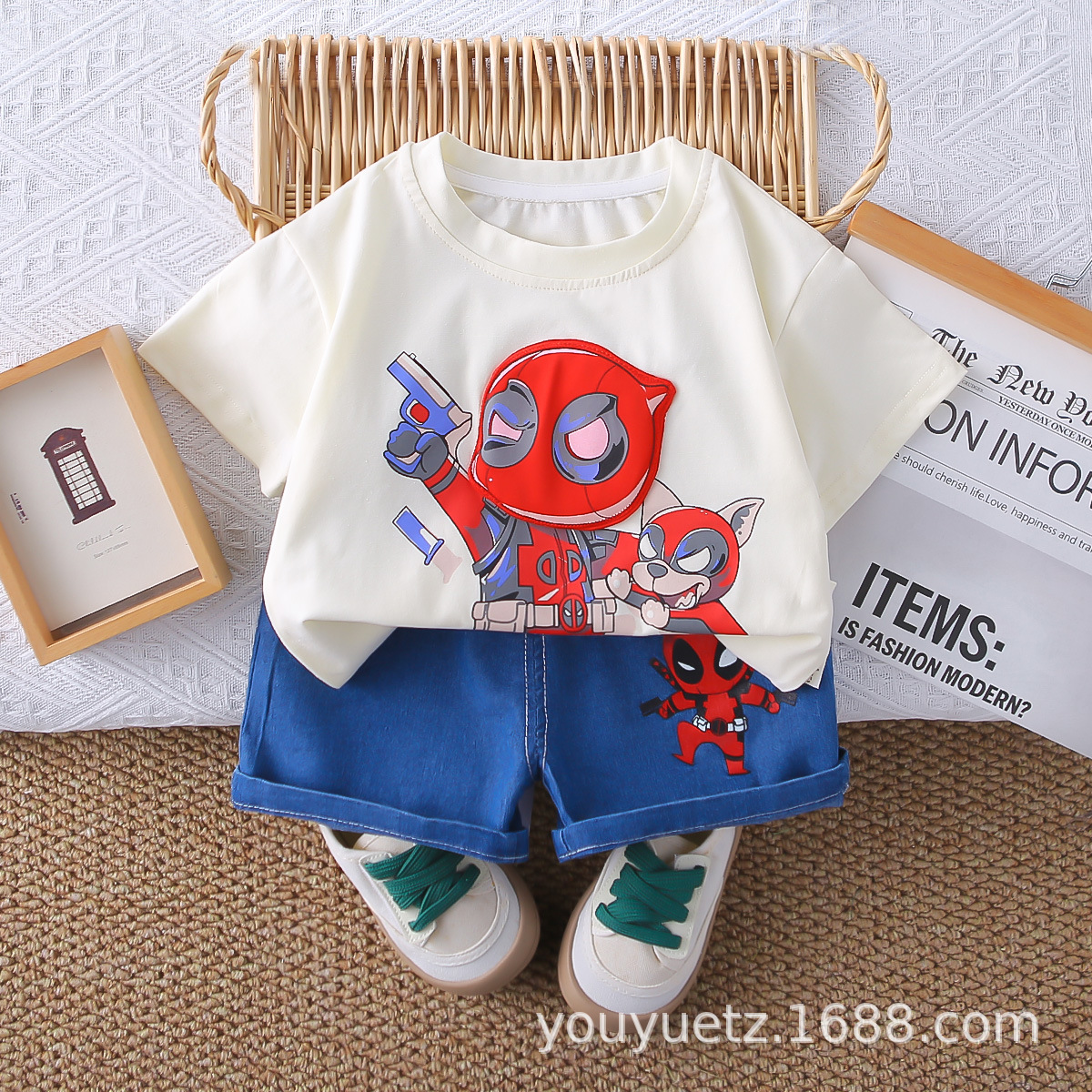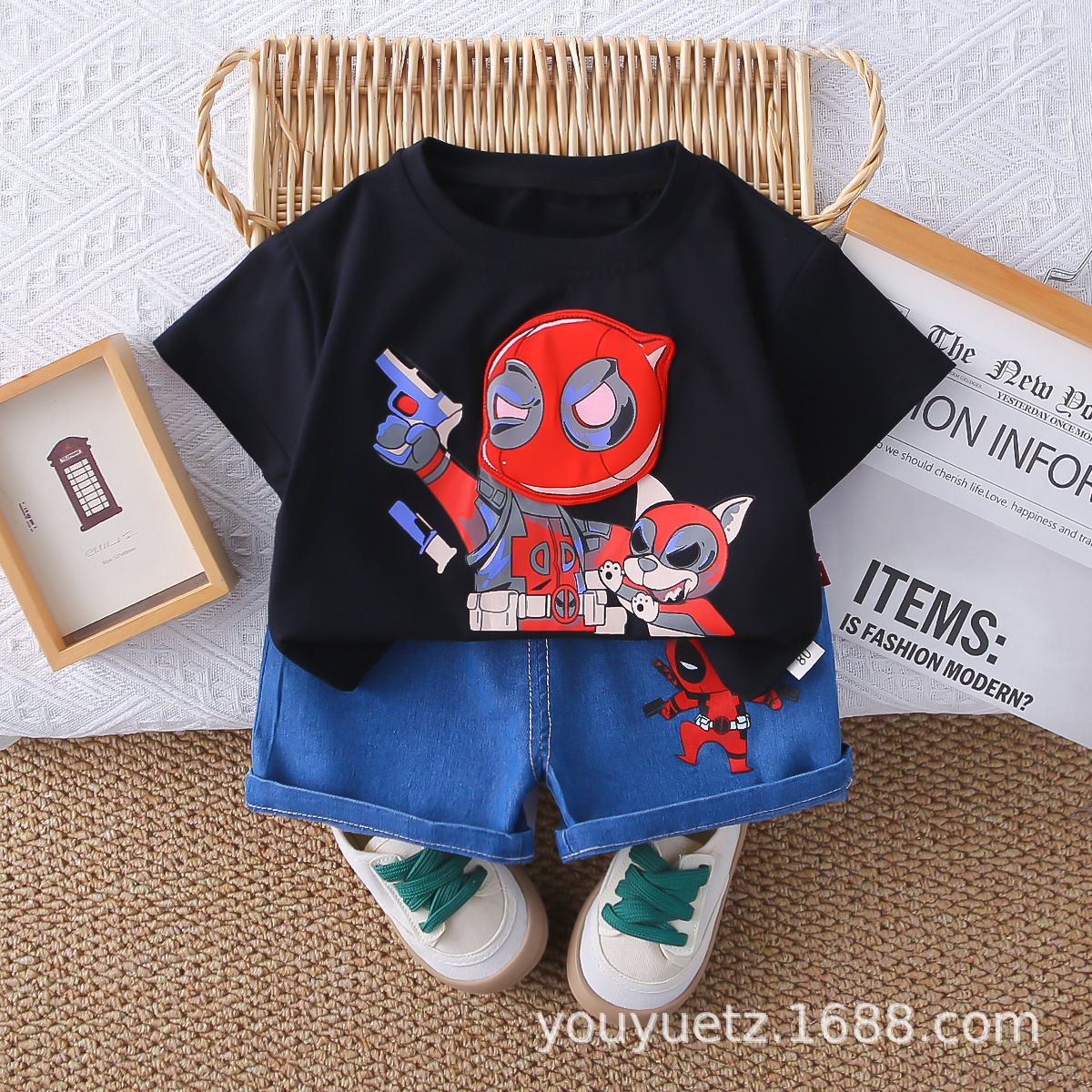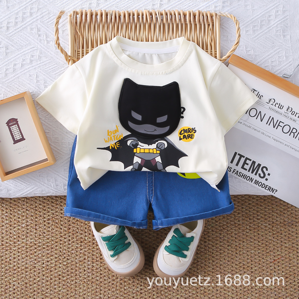 소년 여름 의류 세트 2025 새로운 아기 여름 어린이 의류 잘 생긴 어린이 엘 짧은 소매 폴로 셔츠 옷스토어 가기