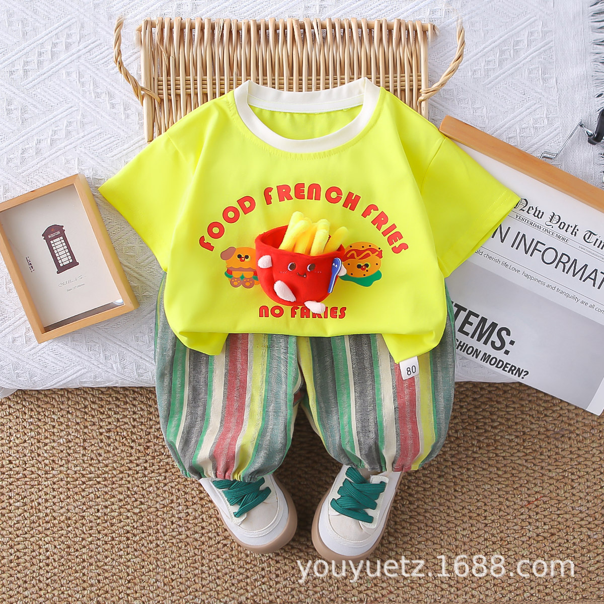 • TXT-카툰 감자튀김 반팔 슈트 옐로우