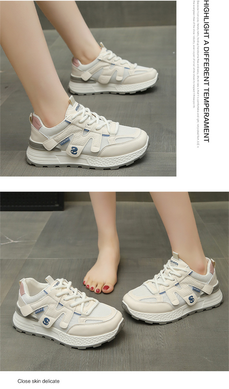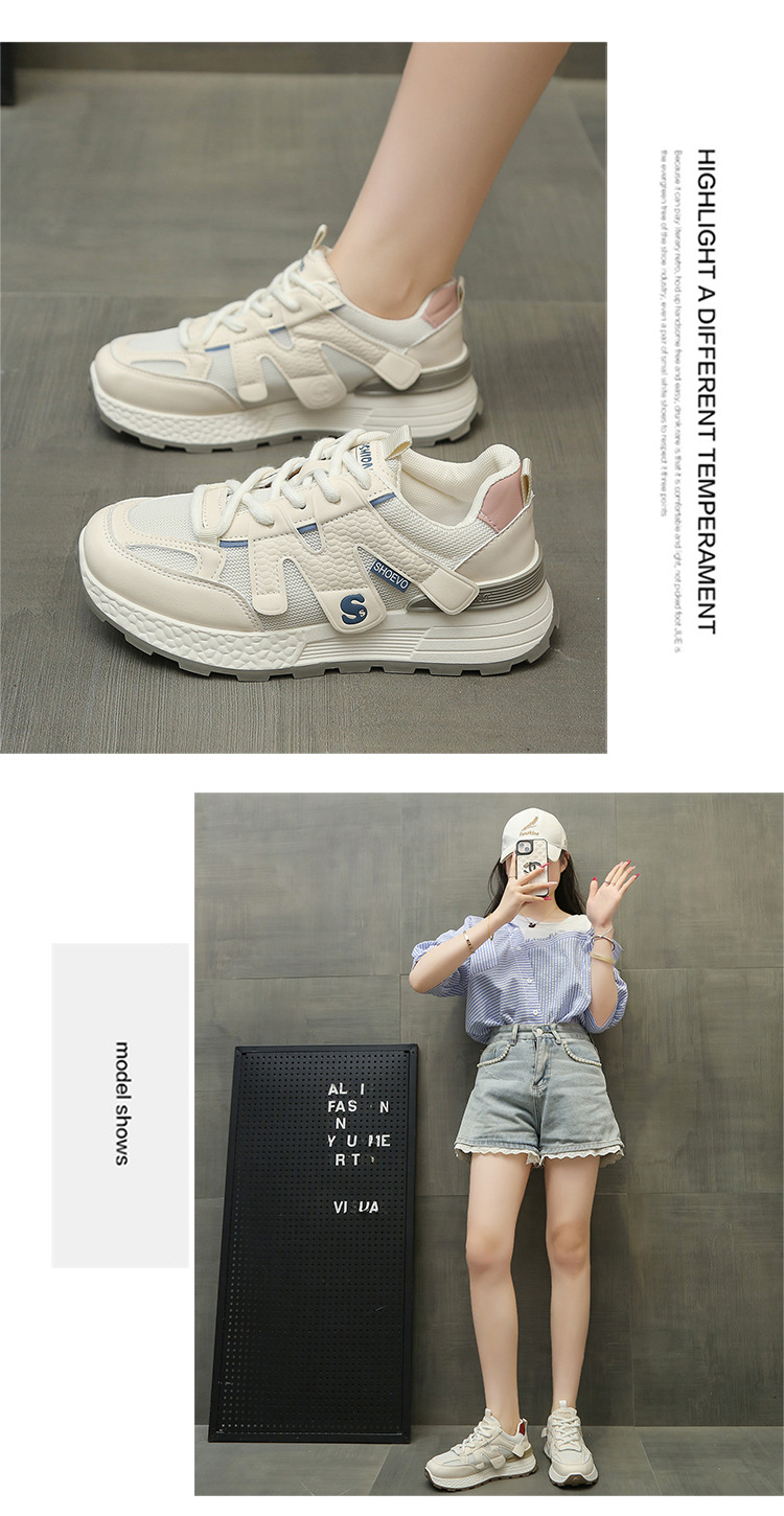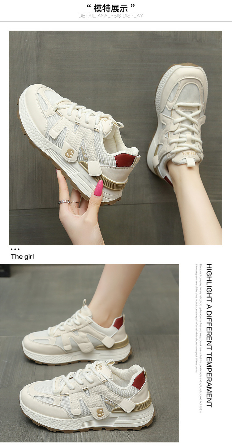 여성을위한 두꺼운 밑창 메쉬 통기성 및 높이 증가 포레스트 검프 신발 2025 봄과 여름 경량 캐주얼 스포츠 복고풍 패션 육군 훈련 신발스토어 가기