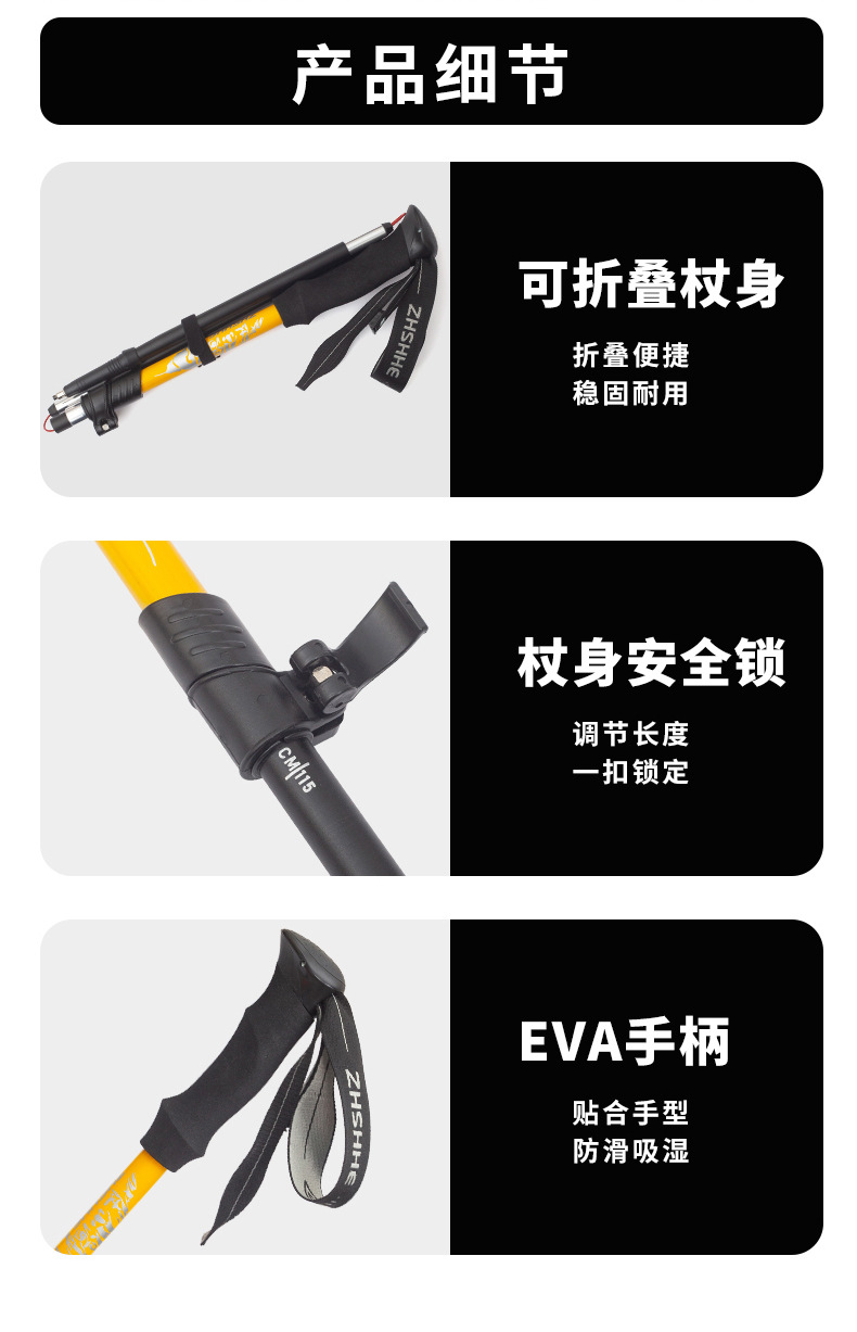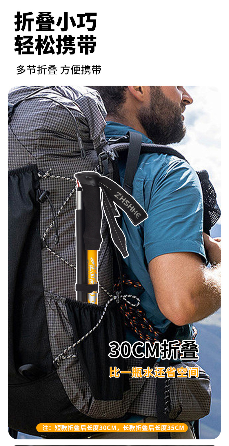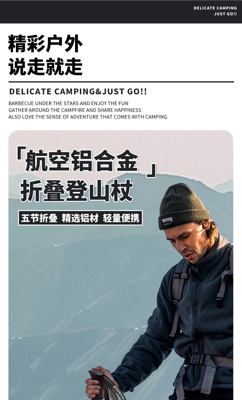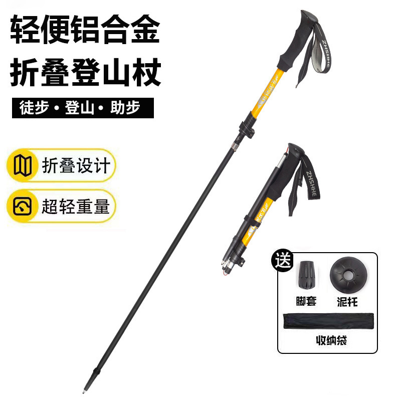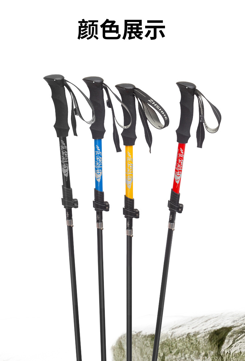 알루미늄 합금 접이식 초경량 및 초단거리 텔레스코픽 야외 손 지팡이 하이킹 및 등산 지팡이 5 섹션스토어 가기
