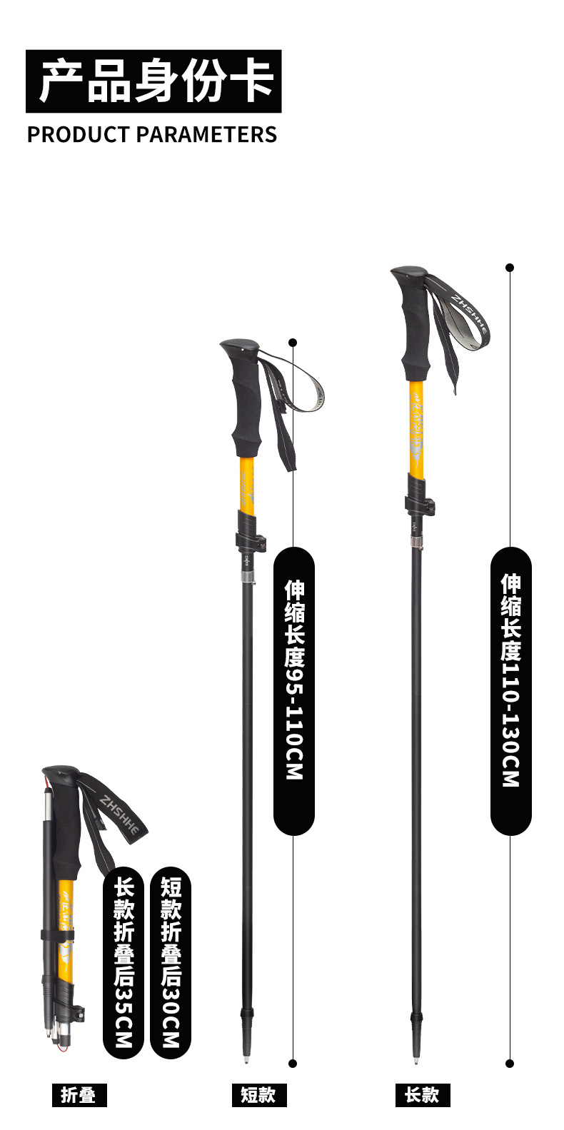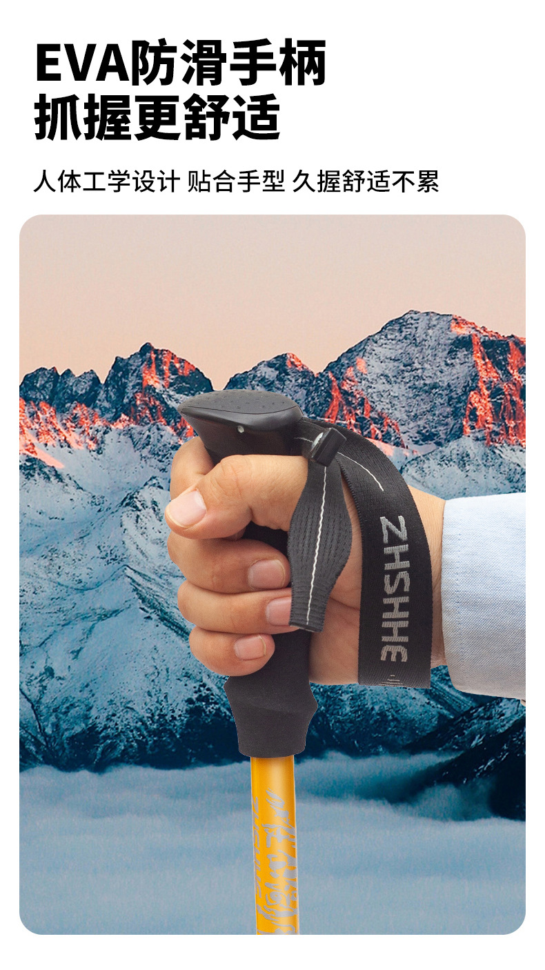 알루미늄 합금 접이식 초경량 및 초단거리 텔레스코픽 야외 손 지팡이 하이킹 및 등산 지팡이 5 섹션