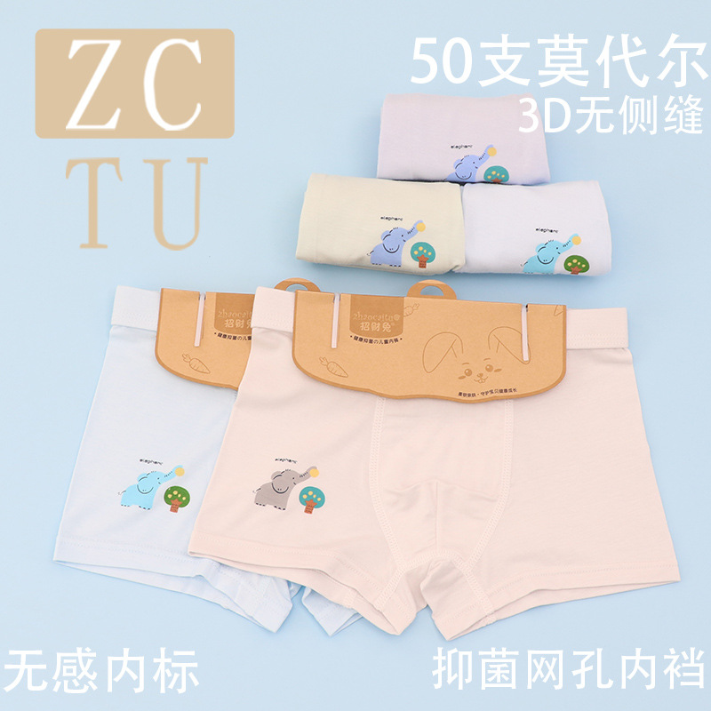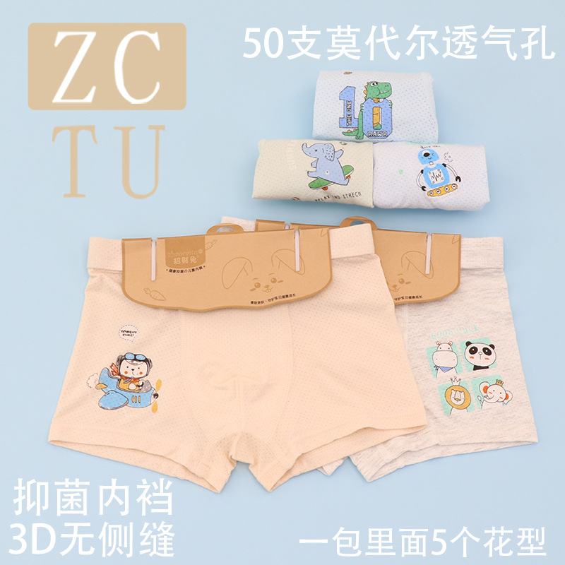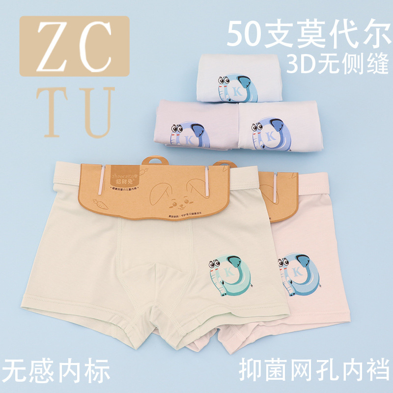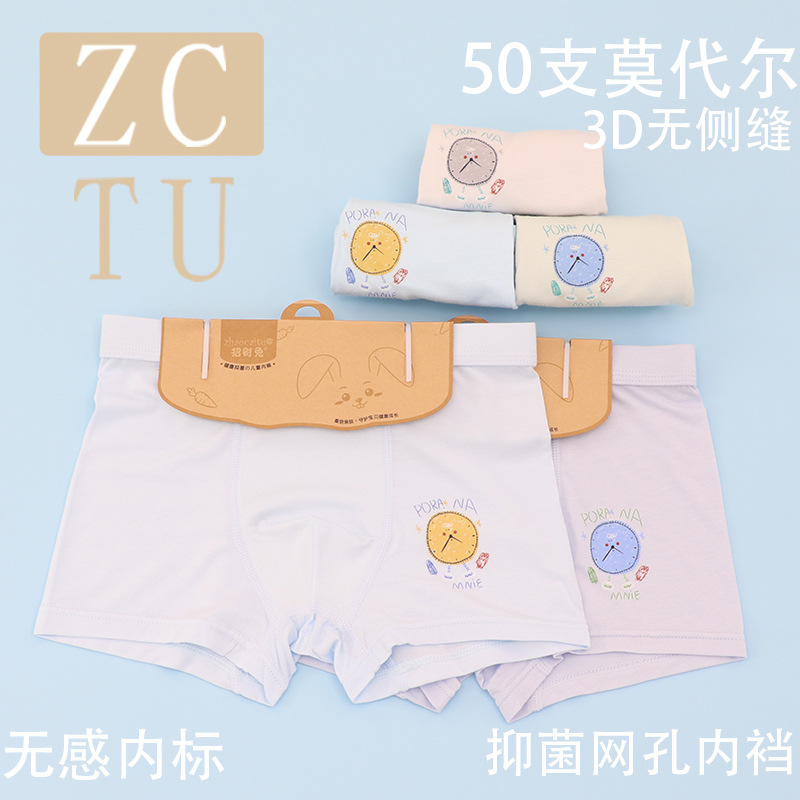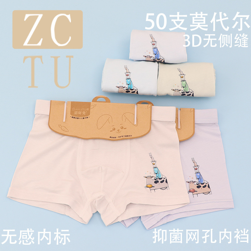 행운의 토끼 어린이 속옷 제조 업체 소년 아기 50 카운트 모달 코튼 3D 중형 및 대형 어린이 복서 스타일 속옷