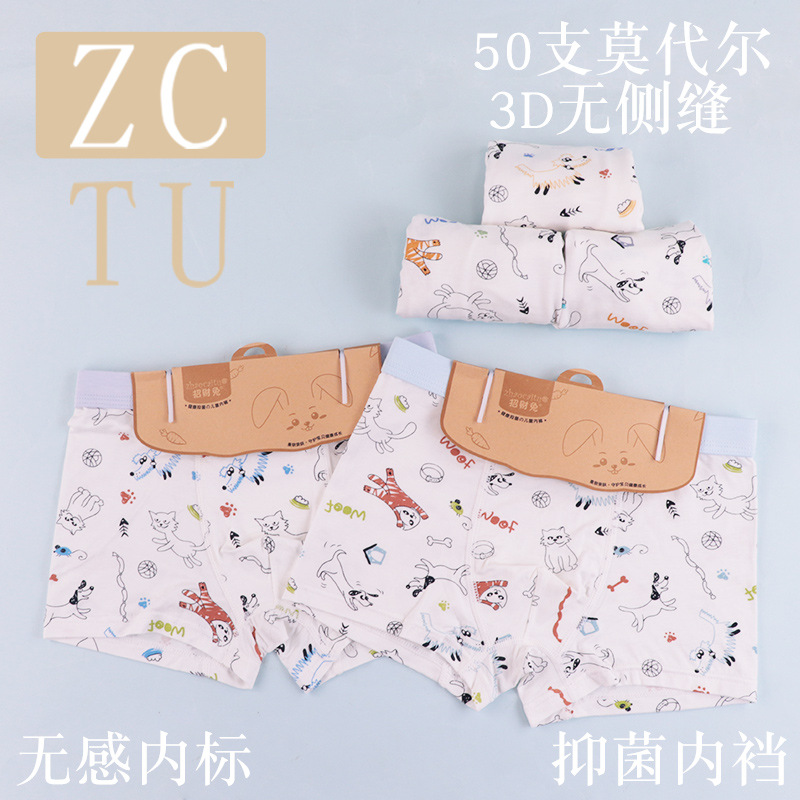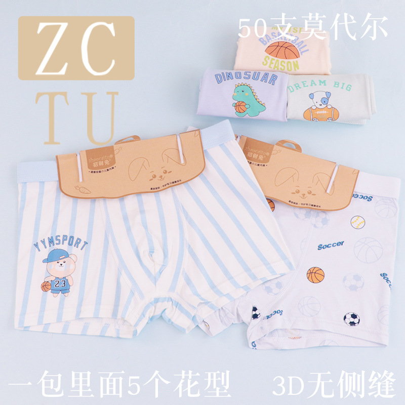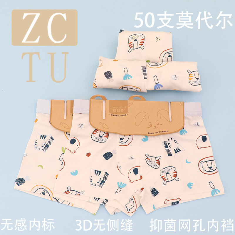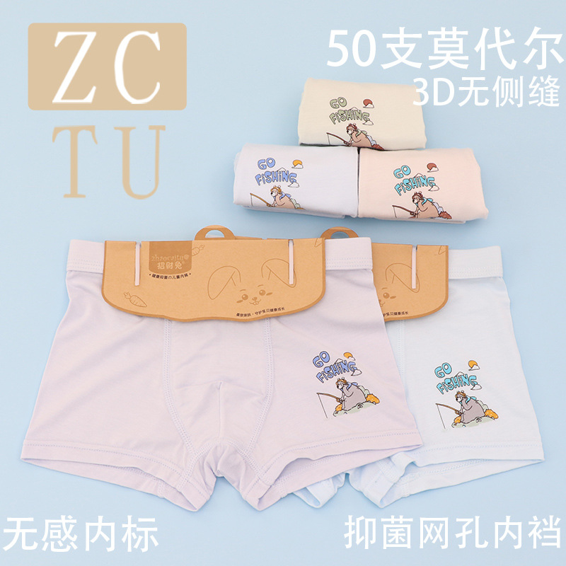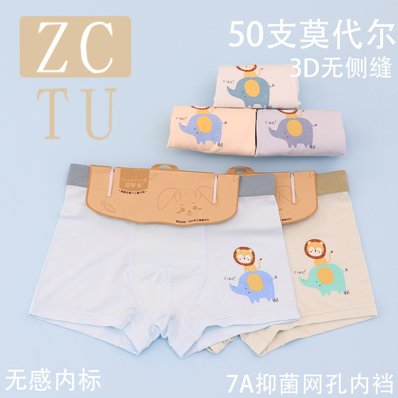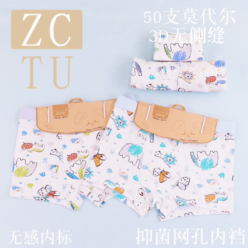 행운의 토끼 어린이 속옷 제조 업체 소년 아기 50 카운트 모달 코튼 3D 중형 및 대형 어린이 복서 스타일 속옷