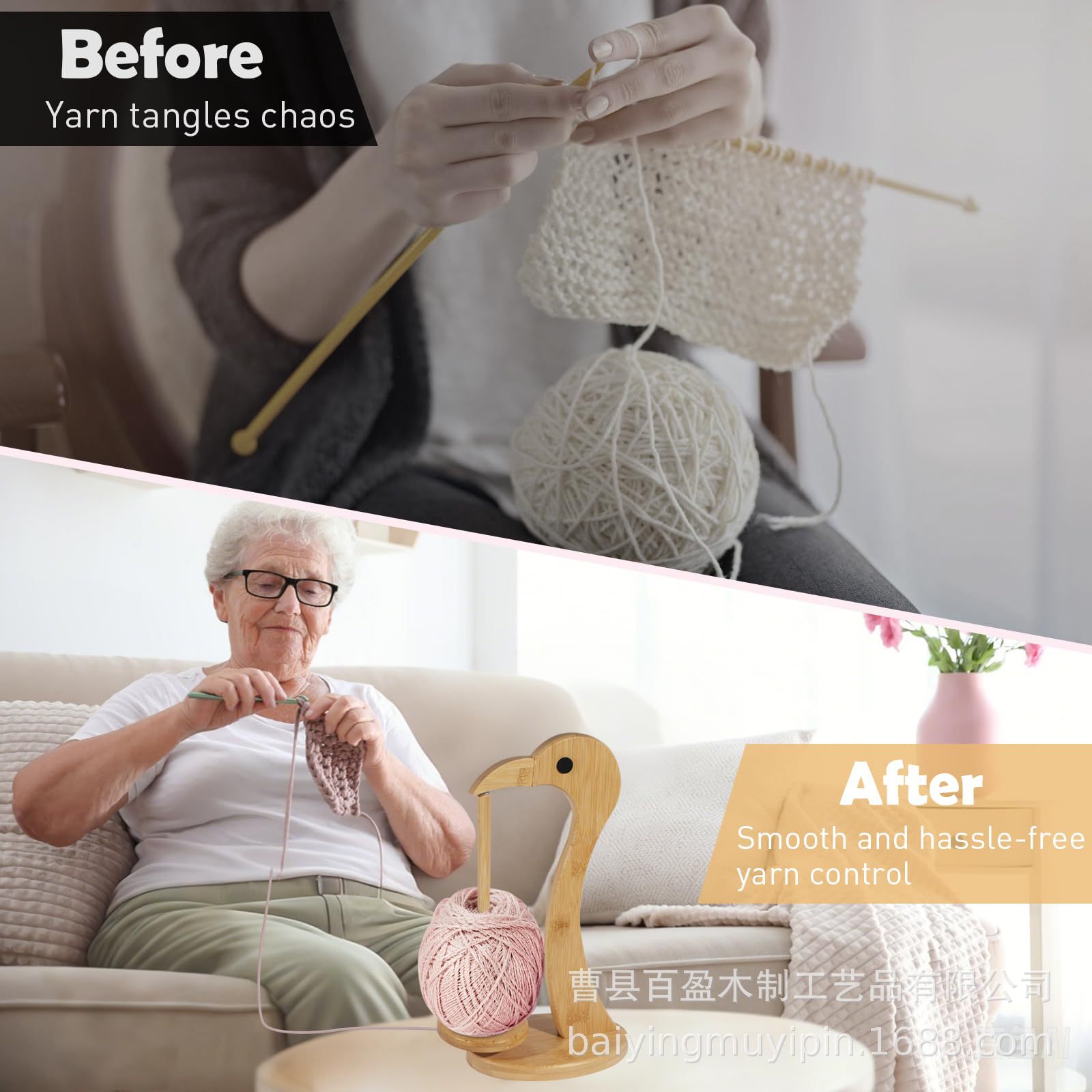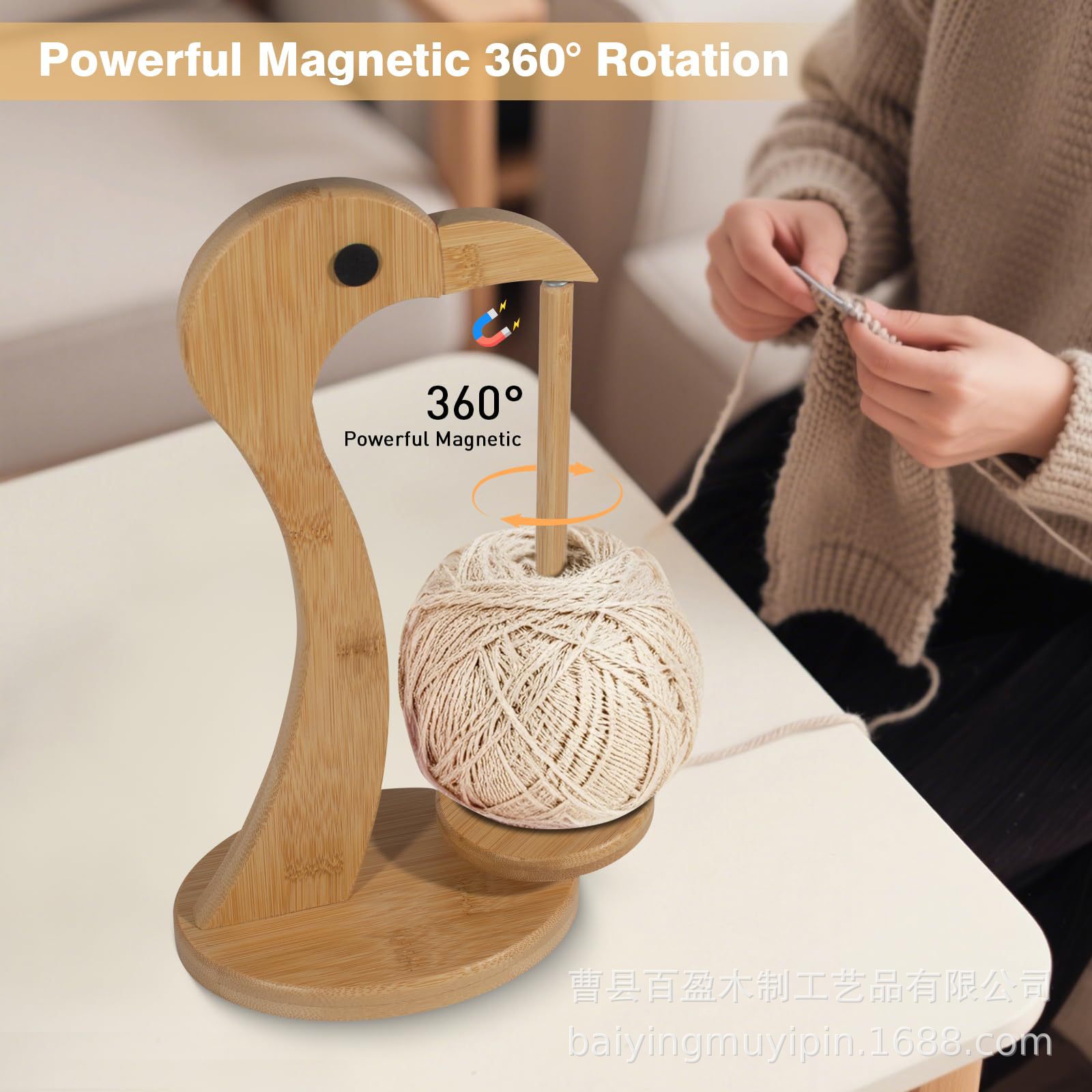 나무 스풀 랙 만화 새 회전식 가정용 양모 손으로 짠 보관 랙 원사 뜨개질 실 공 도구