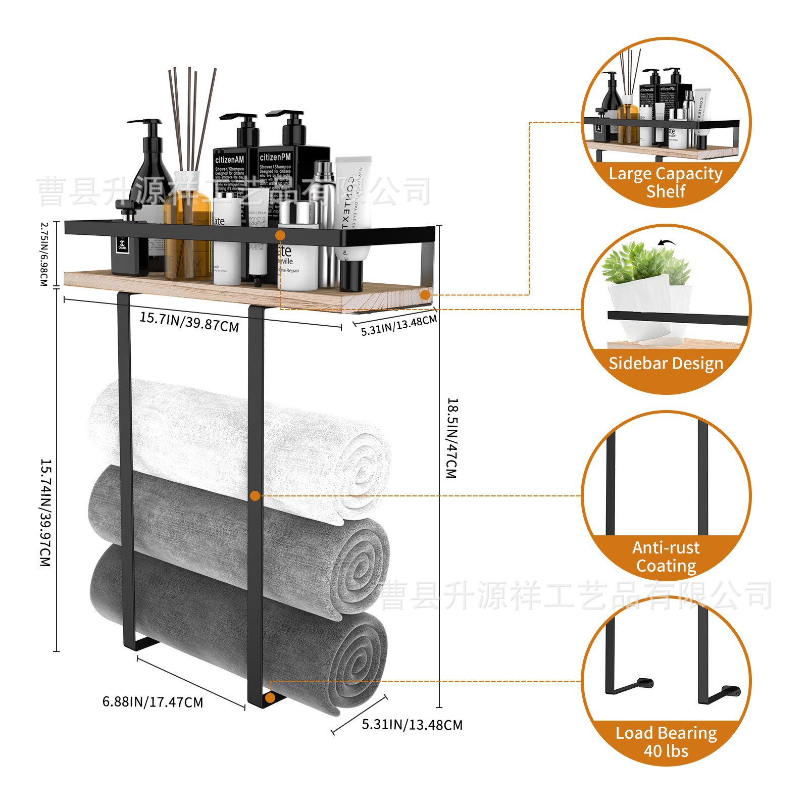 벽걸이형 욕실 수건걸이, 가드레일이 있는 수납선반, 화장실용 금속 수납랙, 다층형스토어 가기