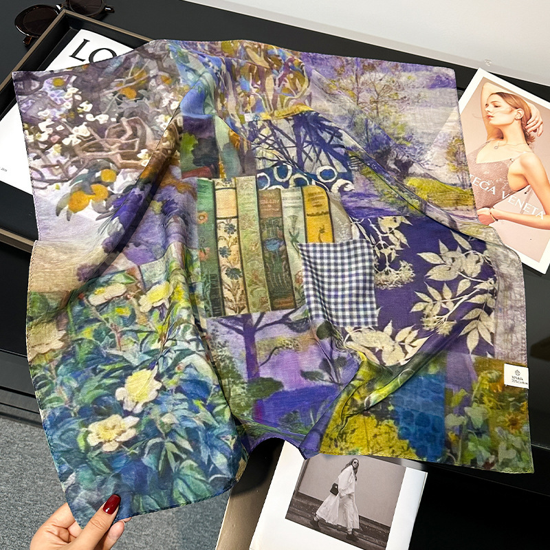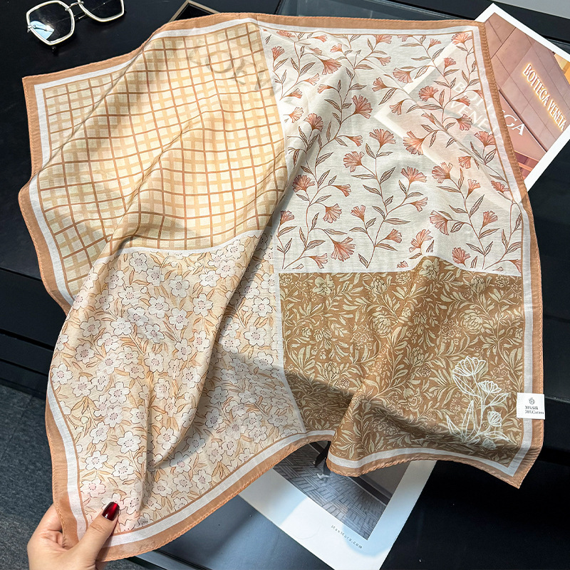 실크 신상 한국식 실크 스카프, 여성 고급 스카프, 봄 가을 거즈 스카프, 얇은 거즈 스카프, 패셔너블한 분위기의 면 사각 스카프스토어 가기
