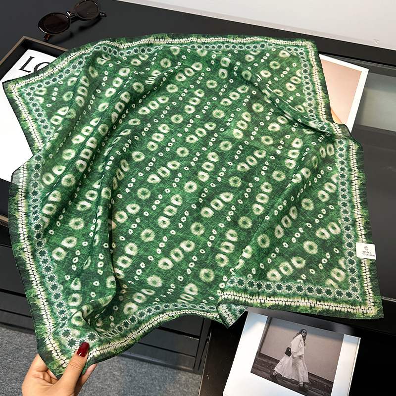 실크 신상 한국식 실크 스카프, 여성 고급 스카프, 봄 가을 거즈 스카프, 얇은 거즈 스카프, 패셔너블한 분위기의 면 사각 스카프
