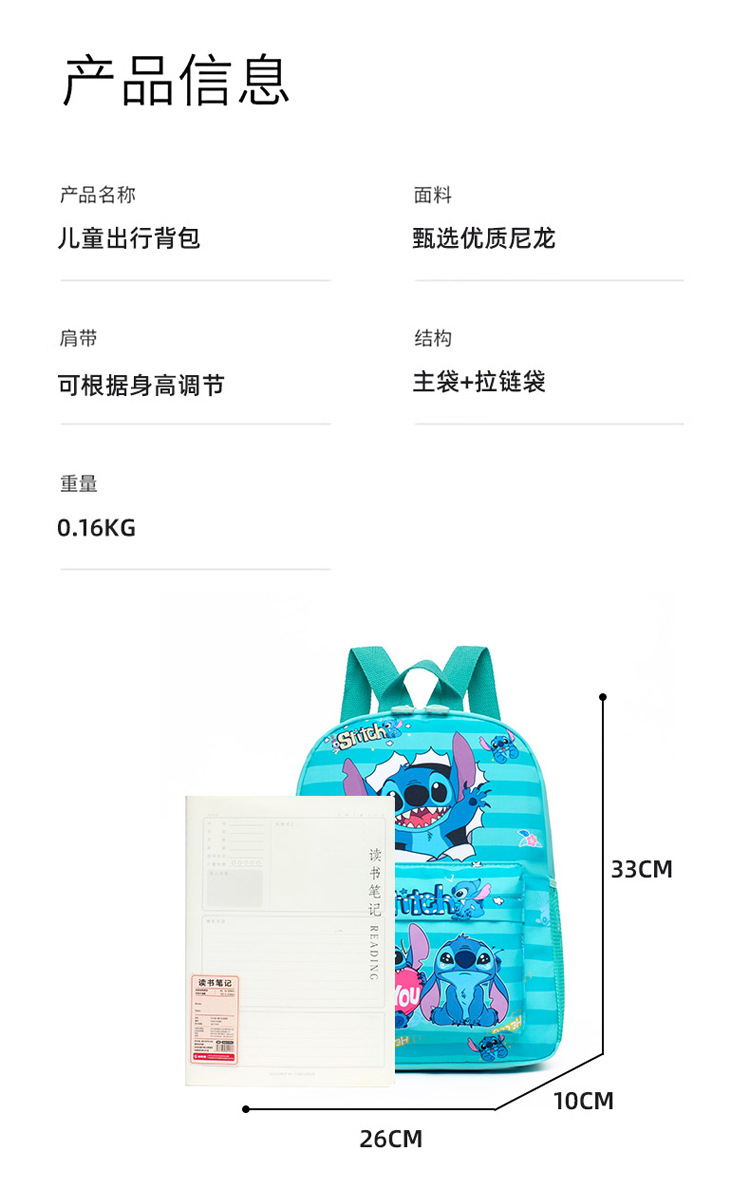 국경 간 유치원 대용량 학교 가방 유치원 경량 스티치 어린이 가방 만화 남성과 여성 패션 배낭