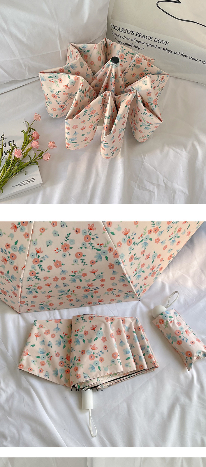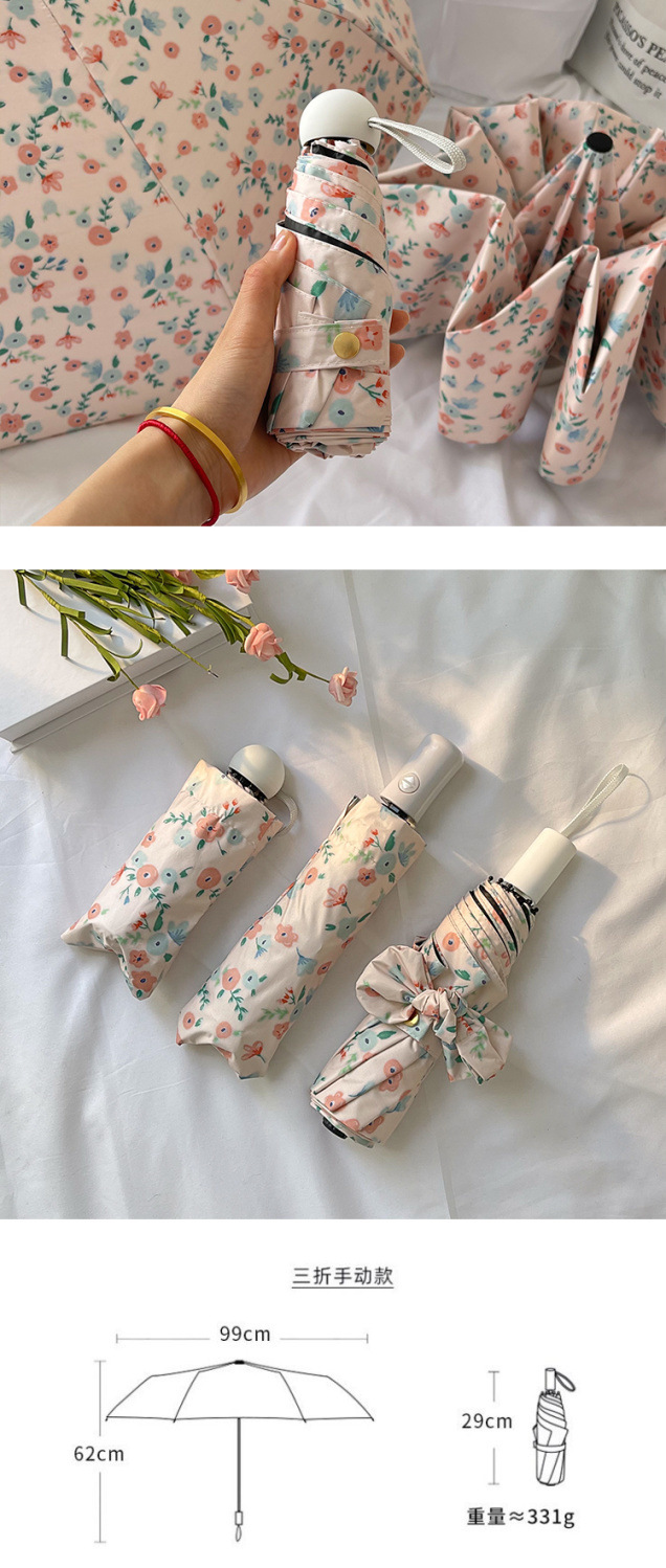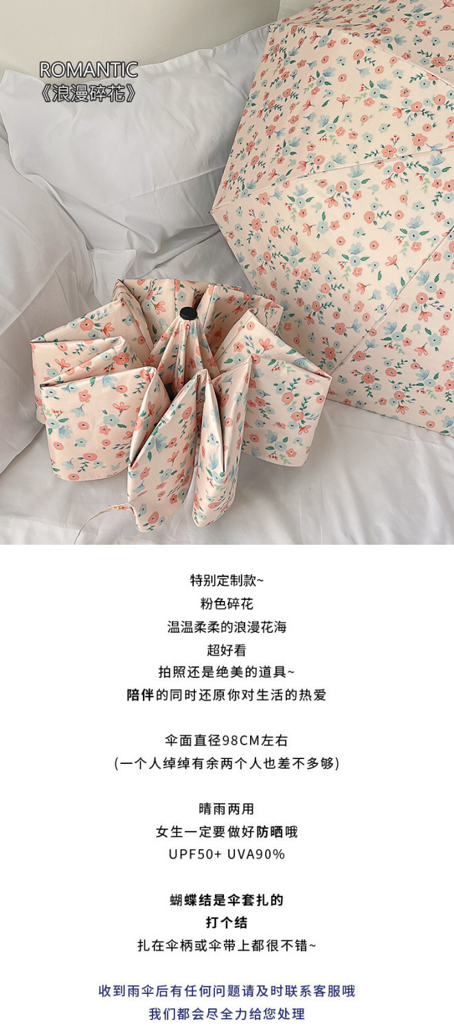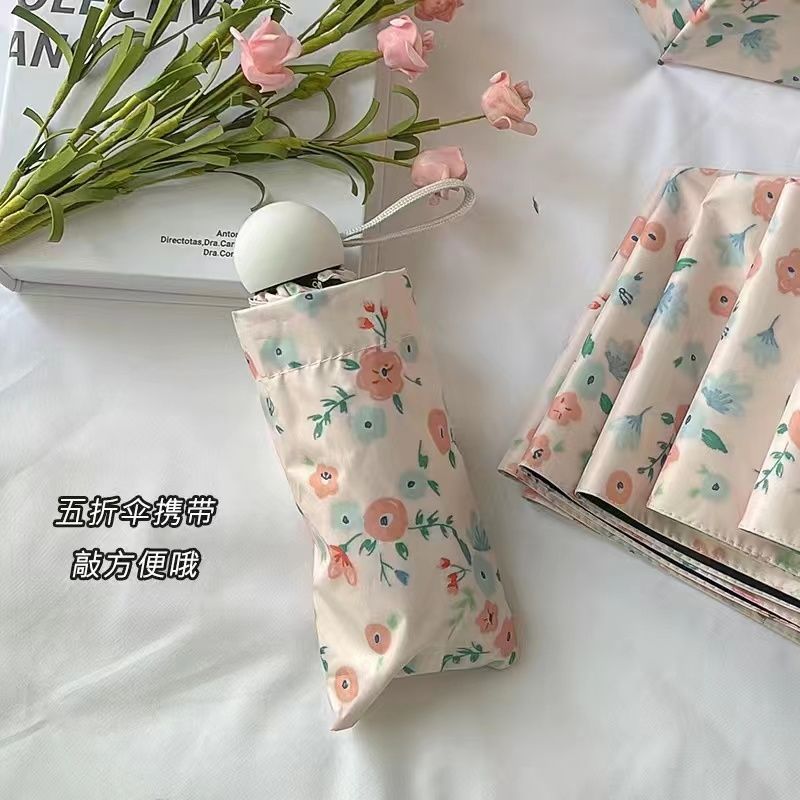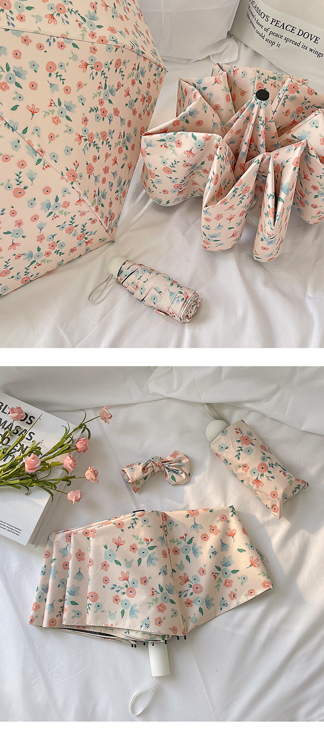 소녀들을 위한 작은 신선한 꽃무늬 우산, 비가 오나 눈이 오나 접이식 자외선 차단제 및 자외선 차단제 70% off 차양 우산